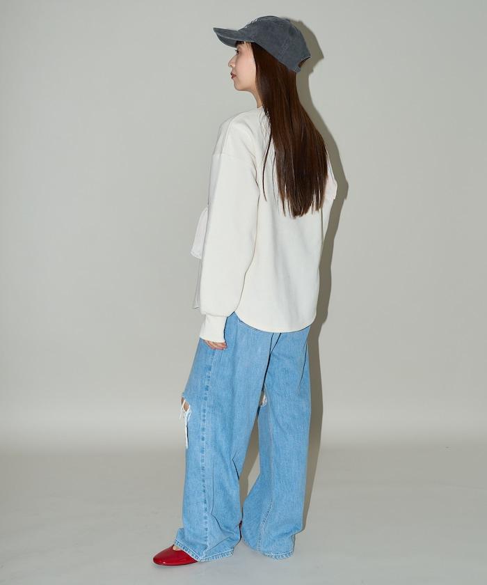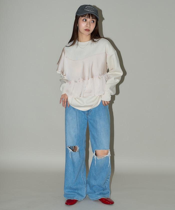 因為是甜美的設計,所以可以搭配寬鬆牛仔褲、貨郎褲等類似男裝的單品,可以穿出很好的平衡感。