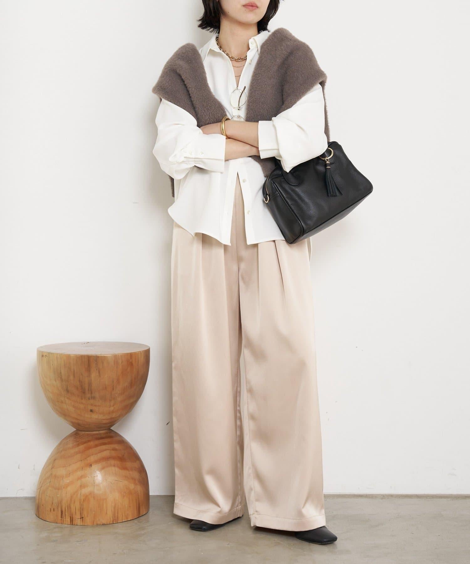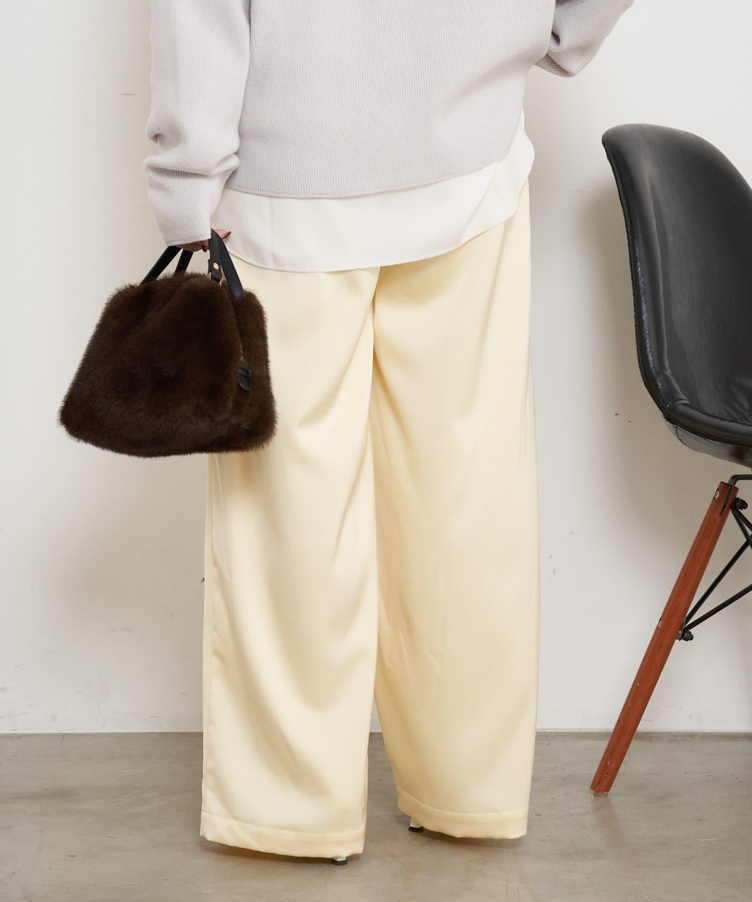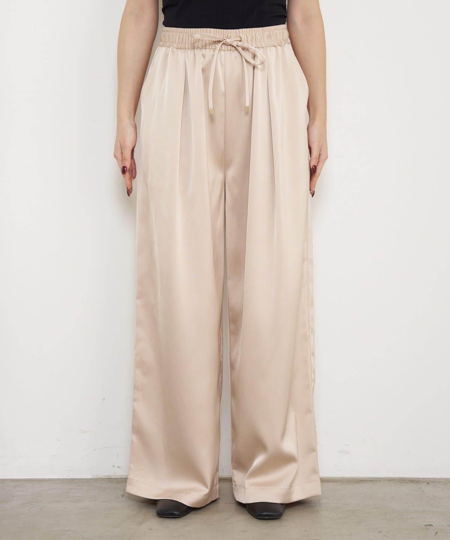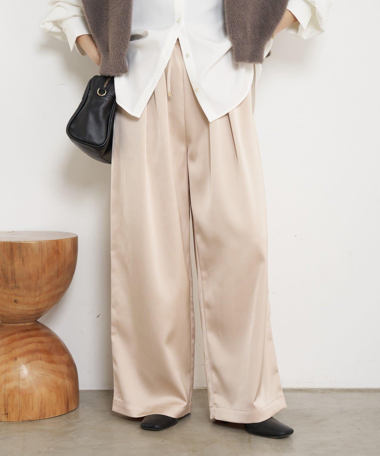 這款簡便的褲子採用時尚的垂直線條設計和緞面面料,給人一種奢華的感覺。