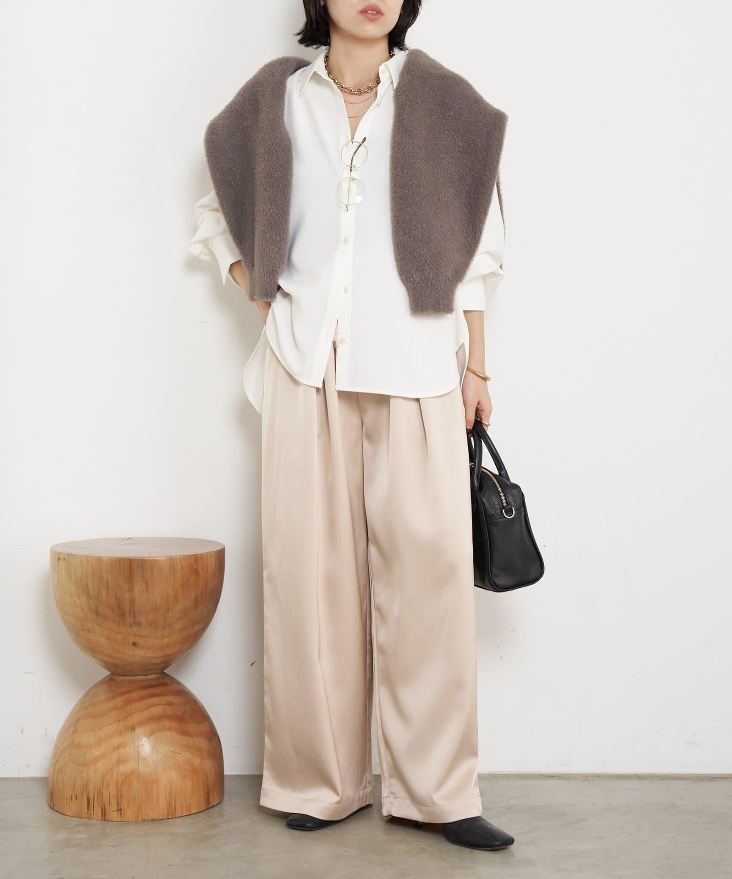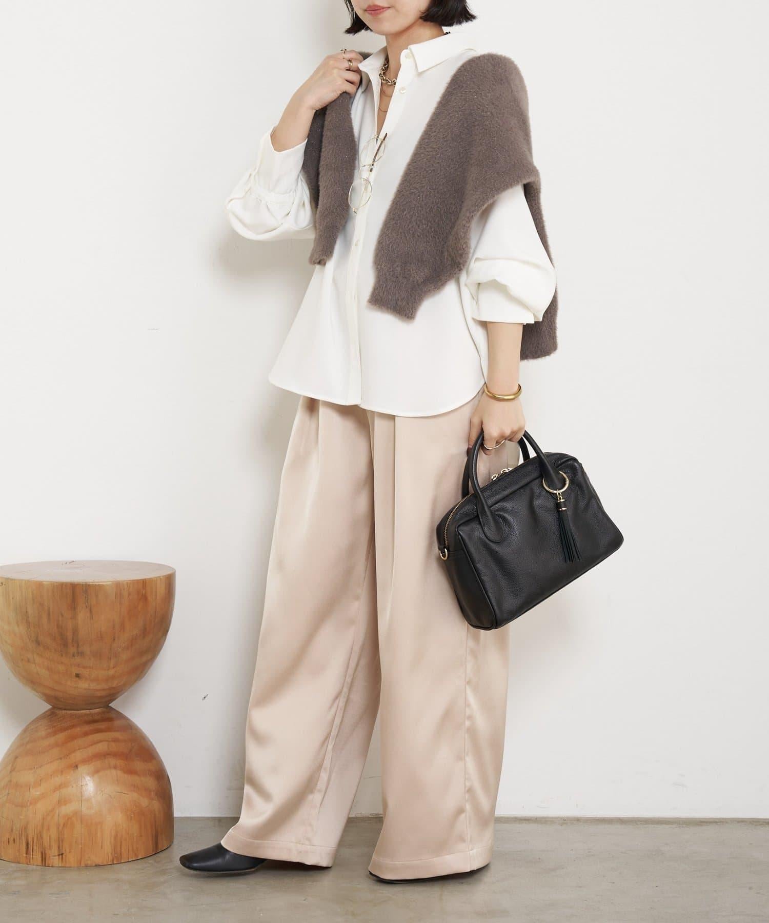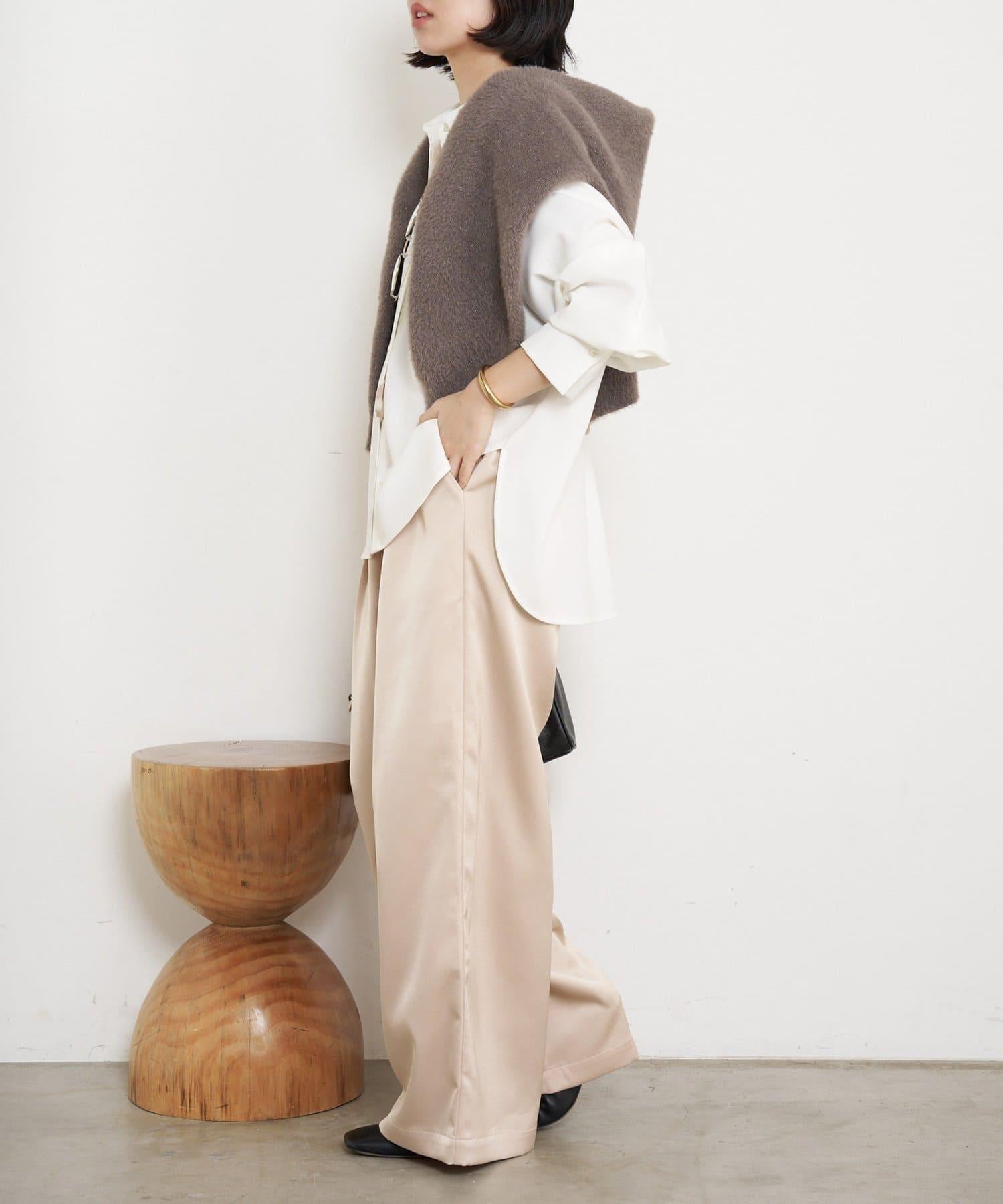這款簡便的褲子採用時尚的垂直線條設計和緞面面料,給人一種奢華的感覺。