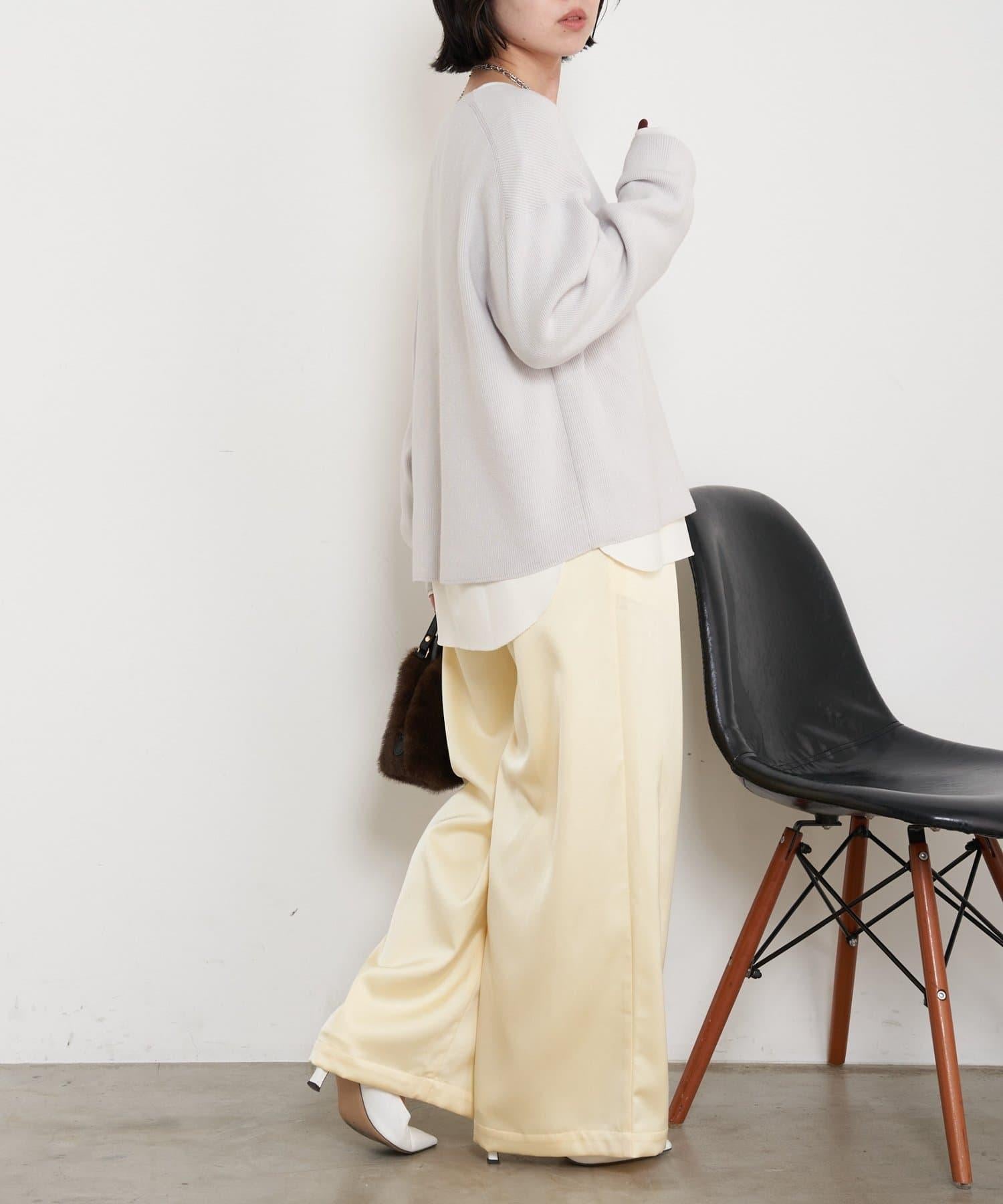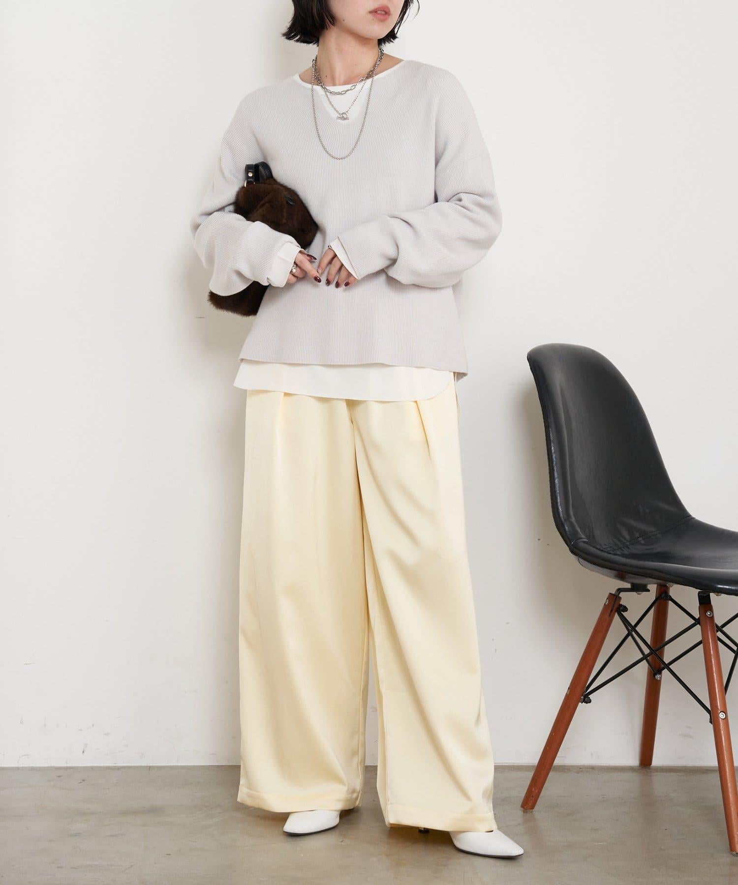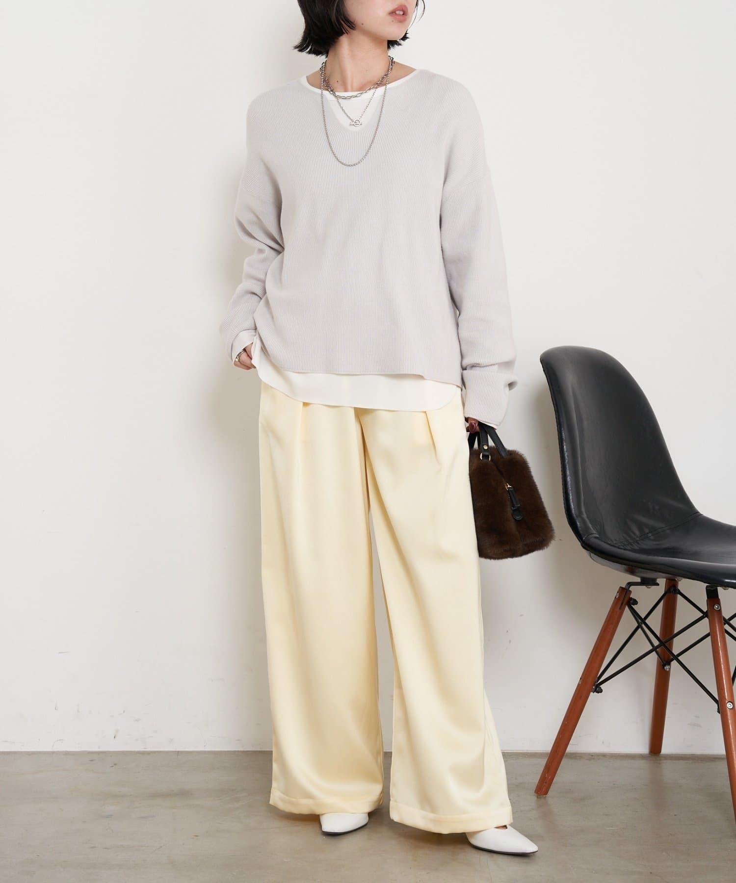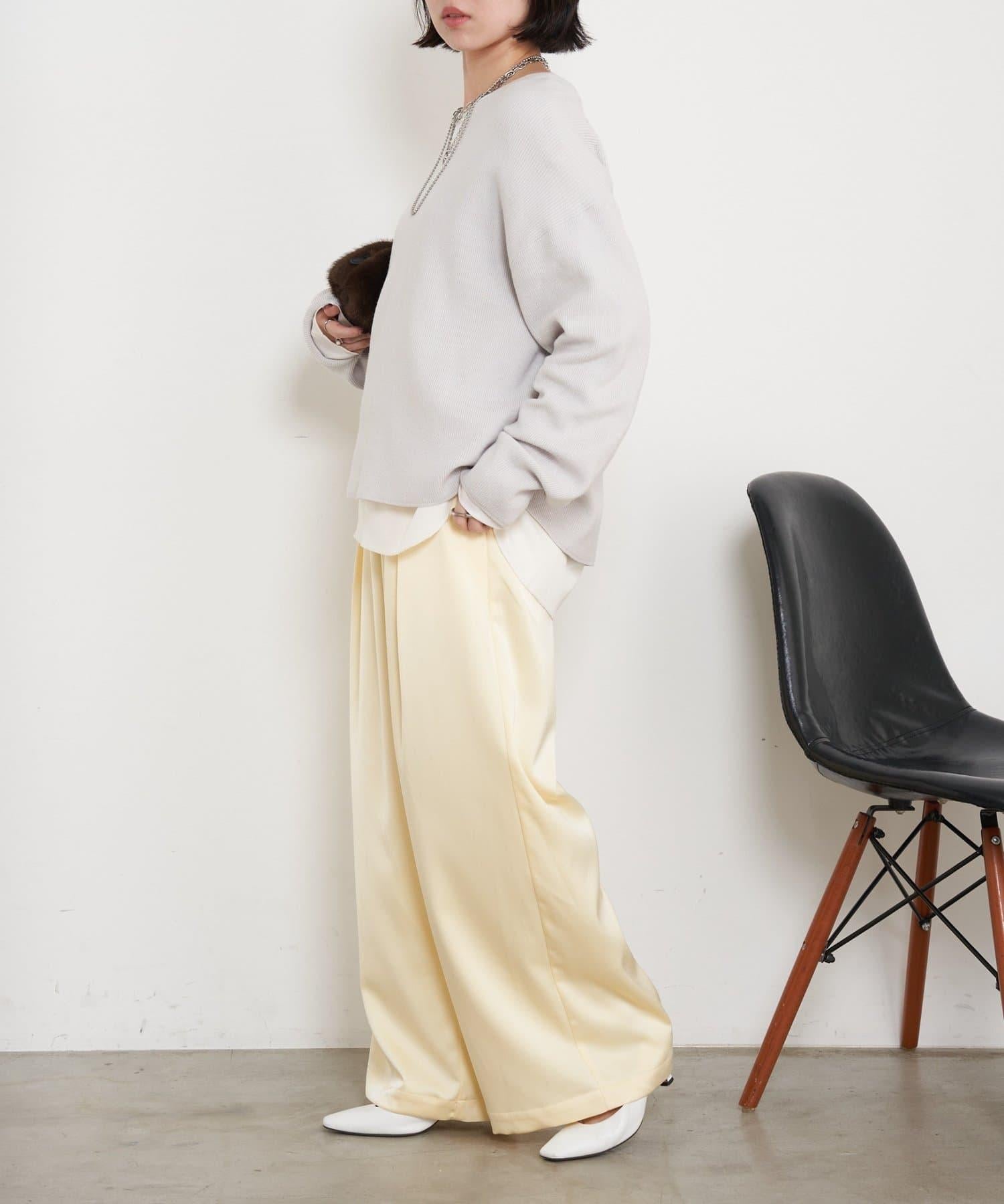 這款簡便的褲子採用時尚的垂直線條設計和緞面面料,給人一種奢華的感覺。