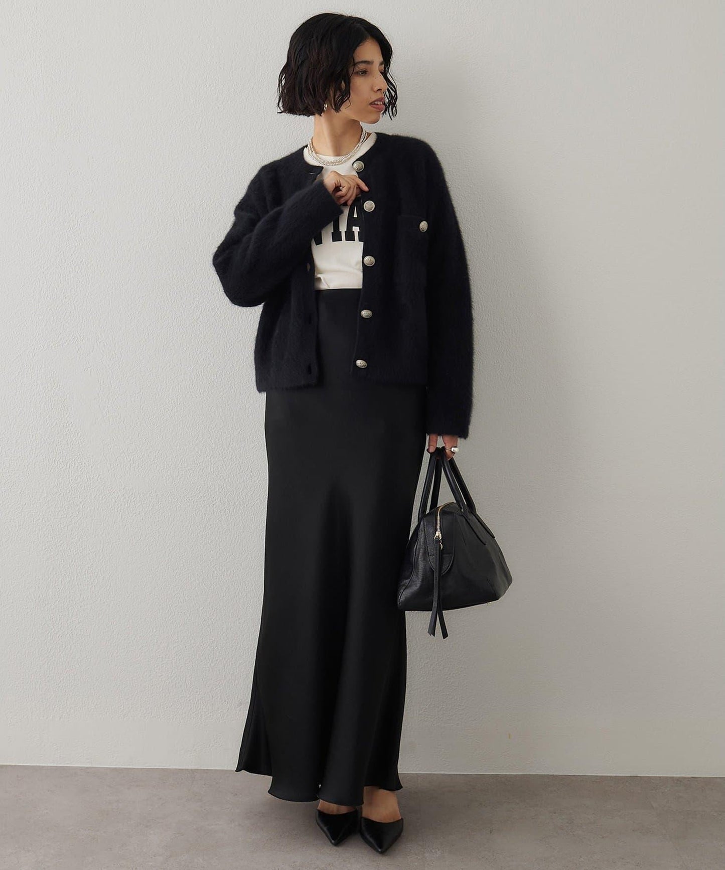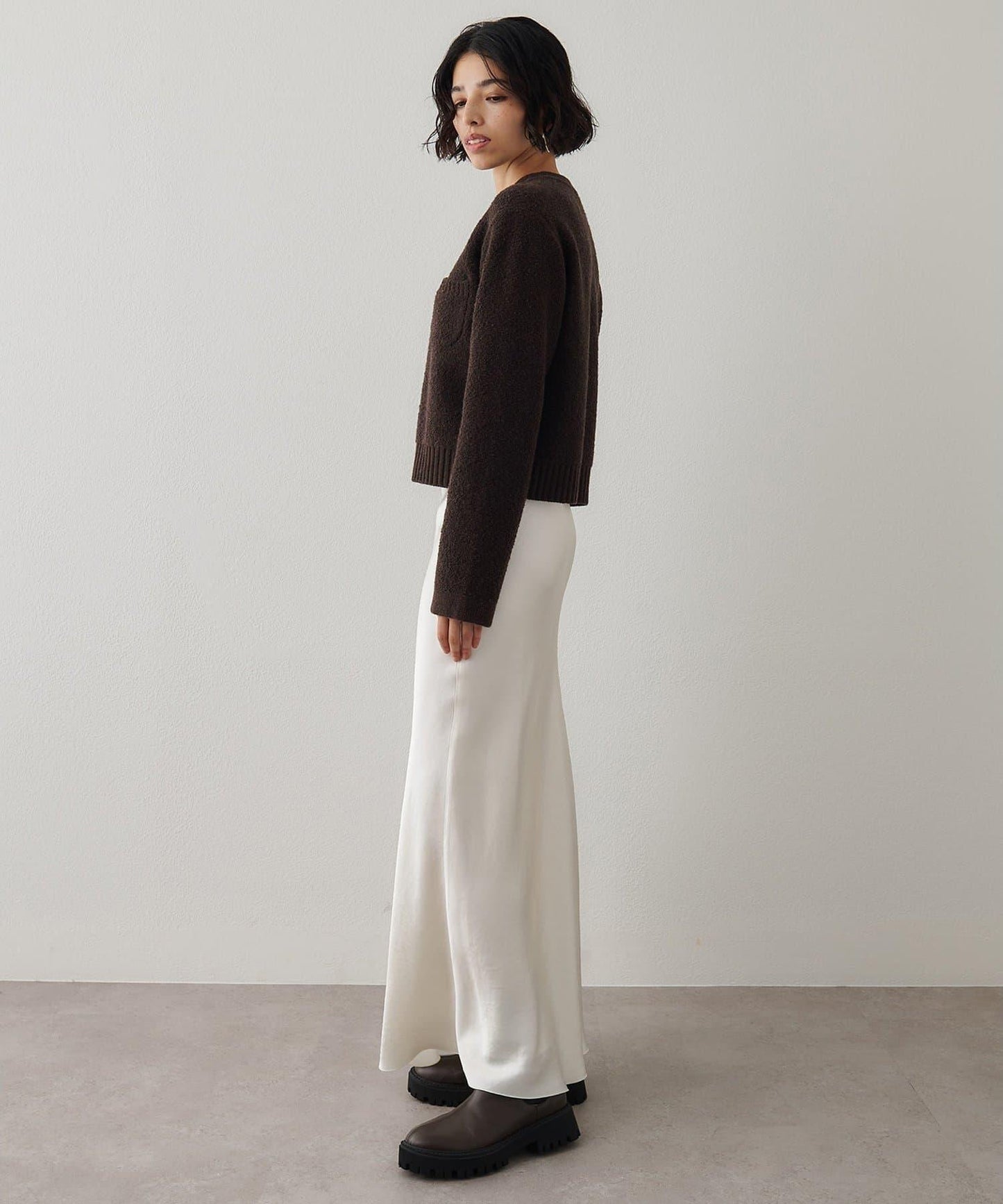 面料採用斜裁設計,隨著身體的移動而輕柔貼身,營造出女性化的輪廓。