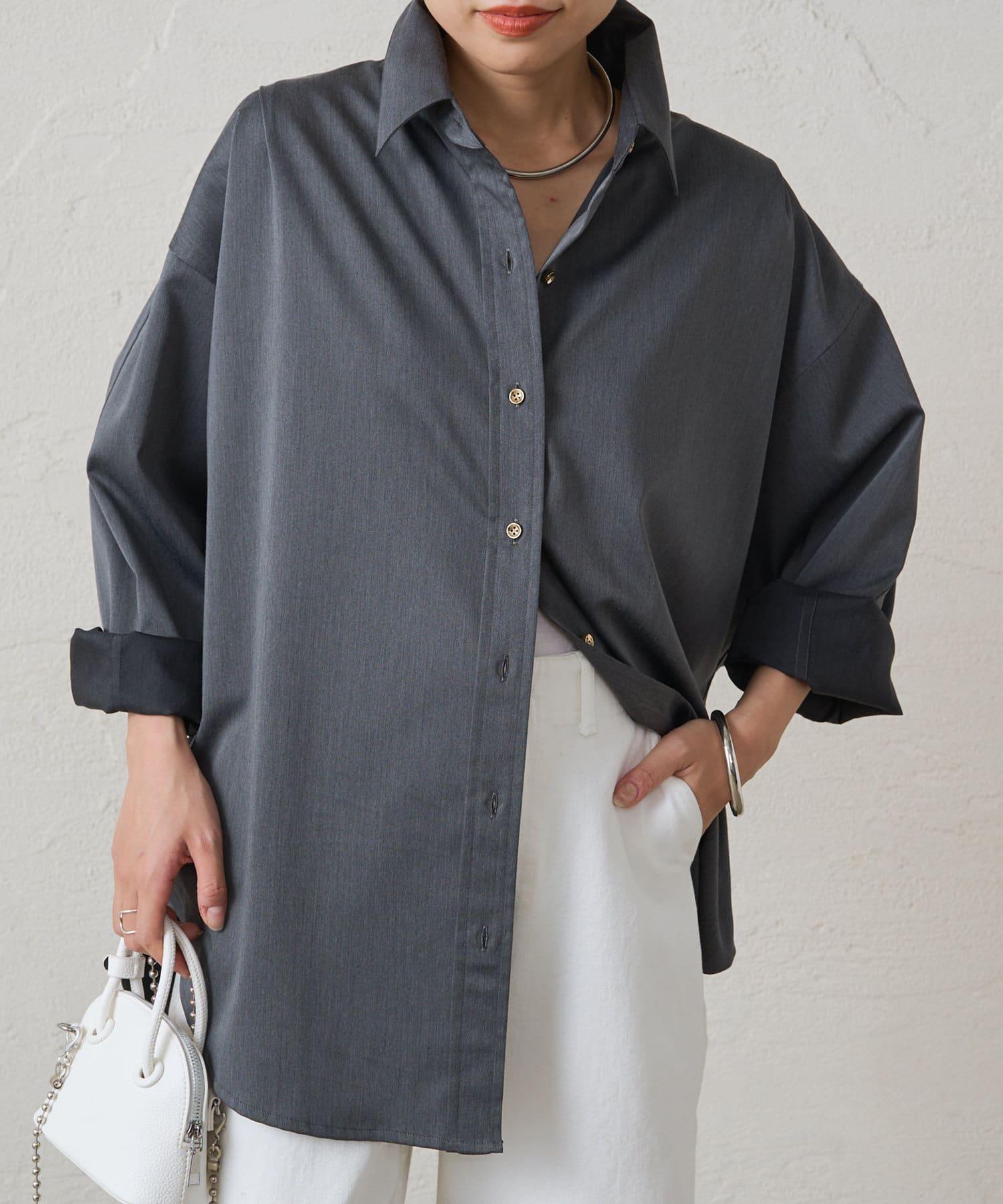 這款襯衫採用防皺緞面製成,輪廓柔美。