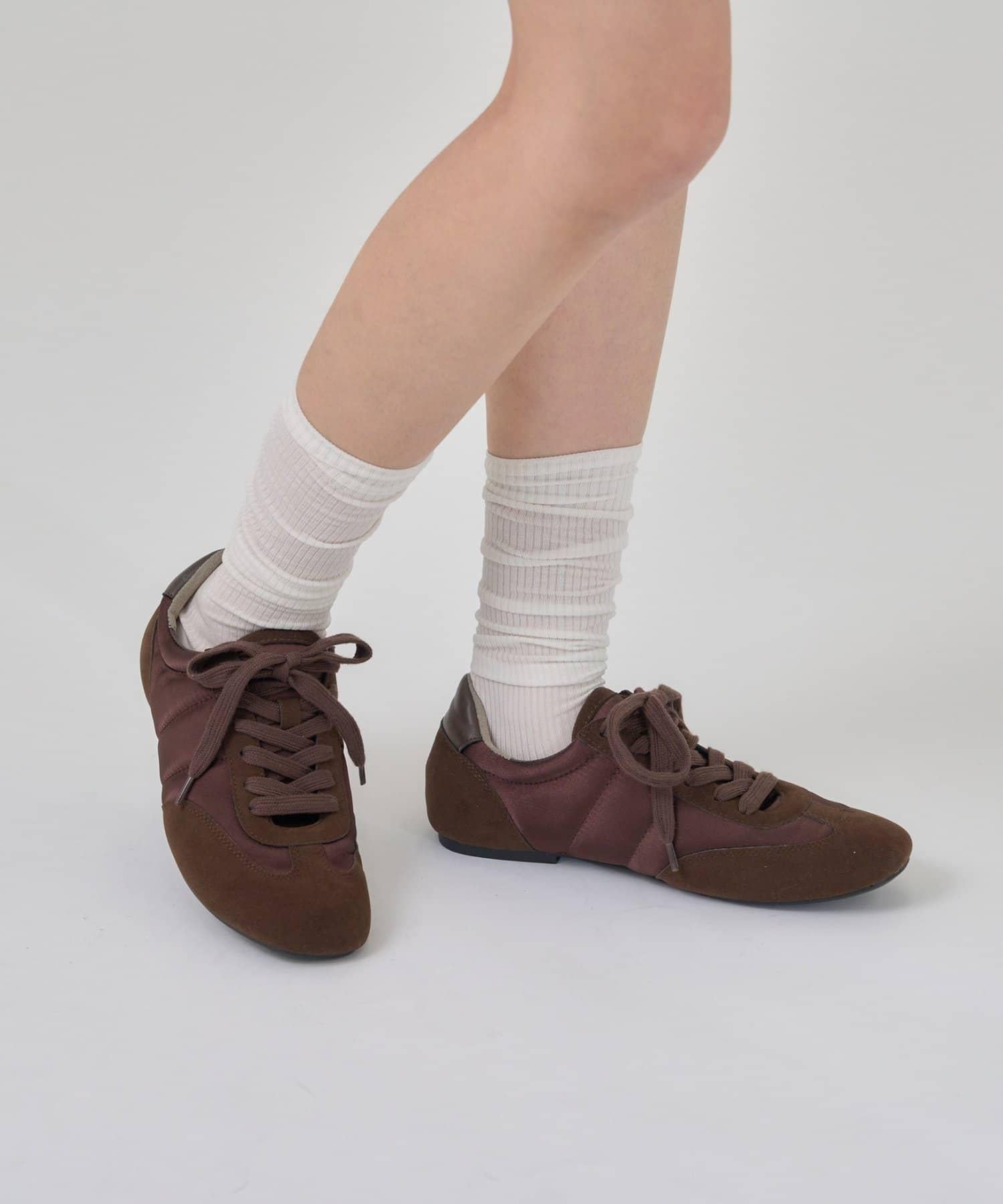 非常適合旅行和外出!輕便易穿的緞面線條運動鞋!