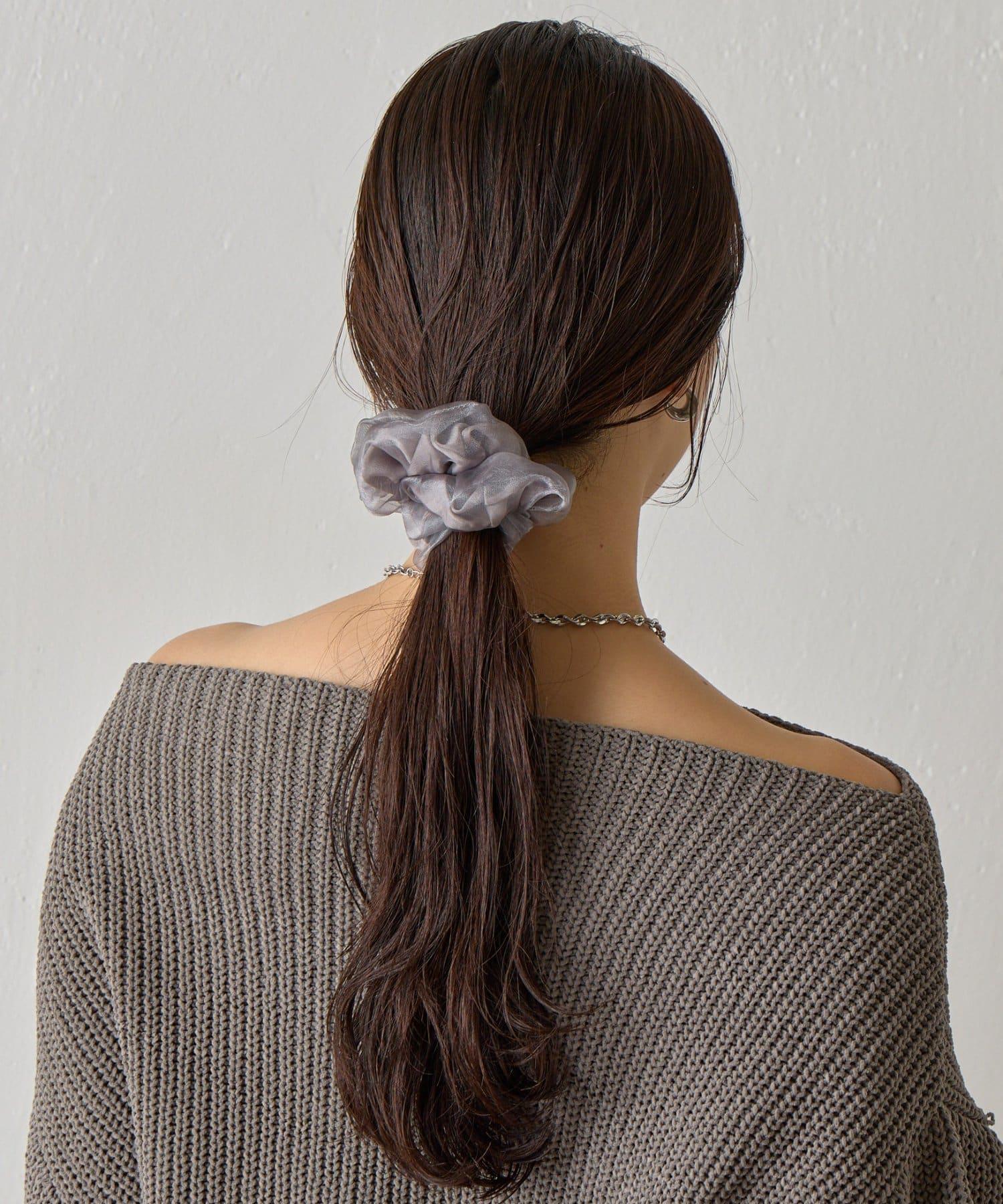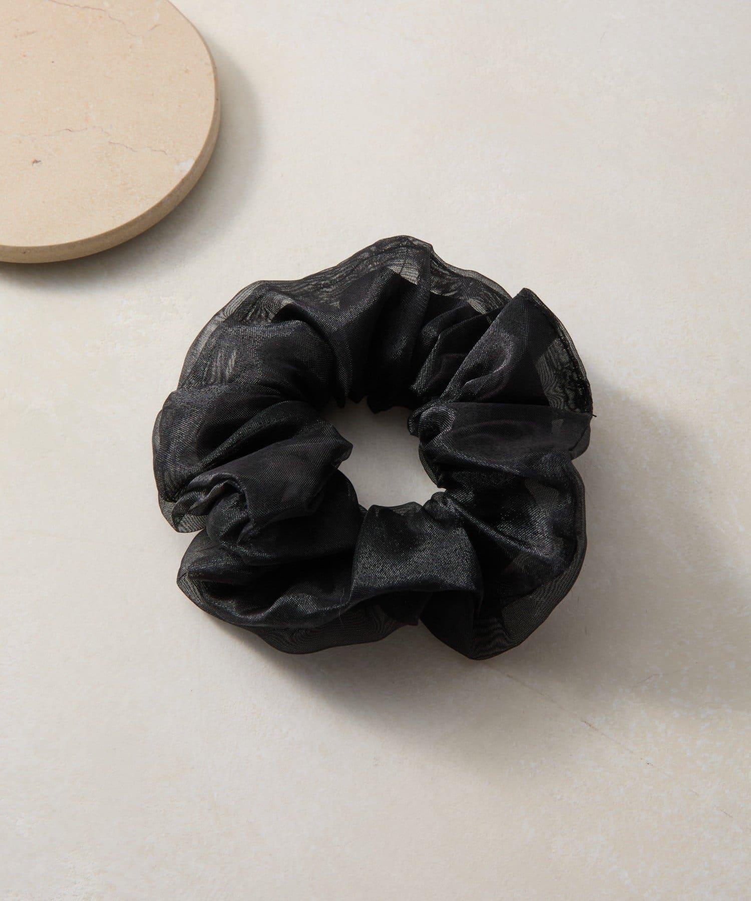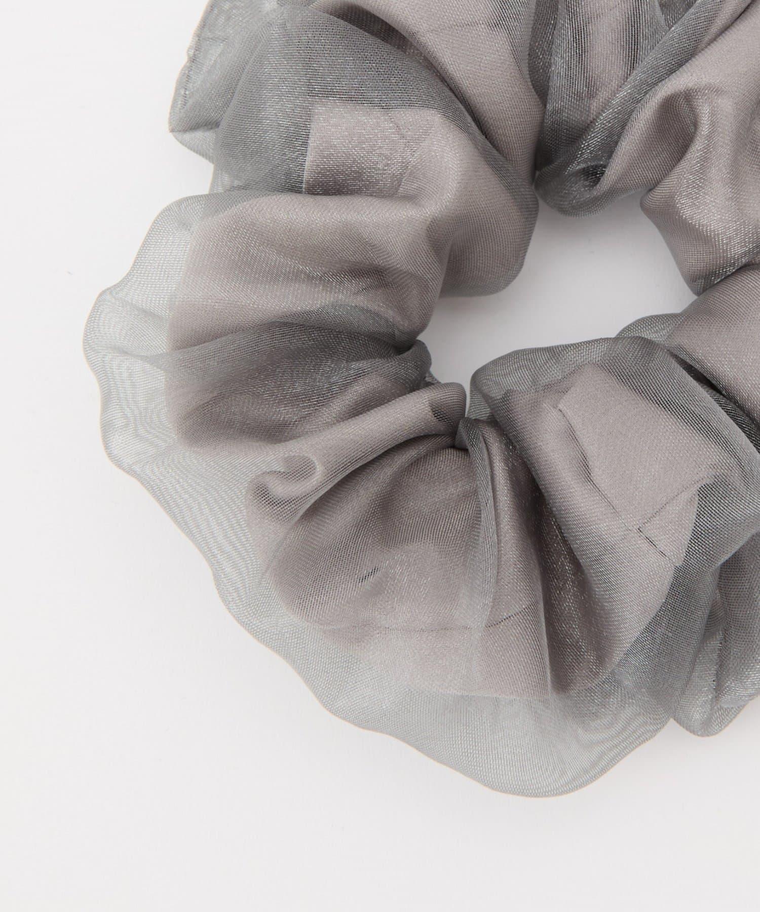 這是一款緞面chou chou,上面有薄紗層疊。