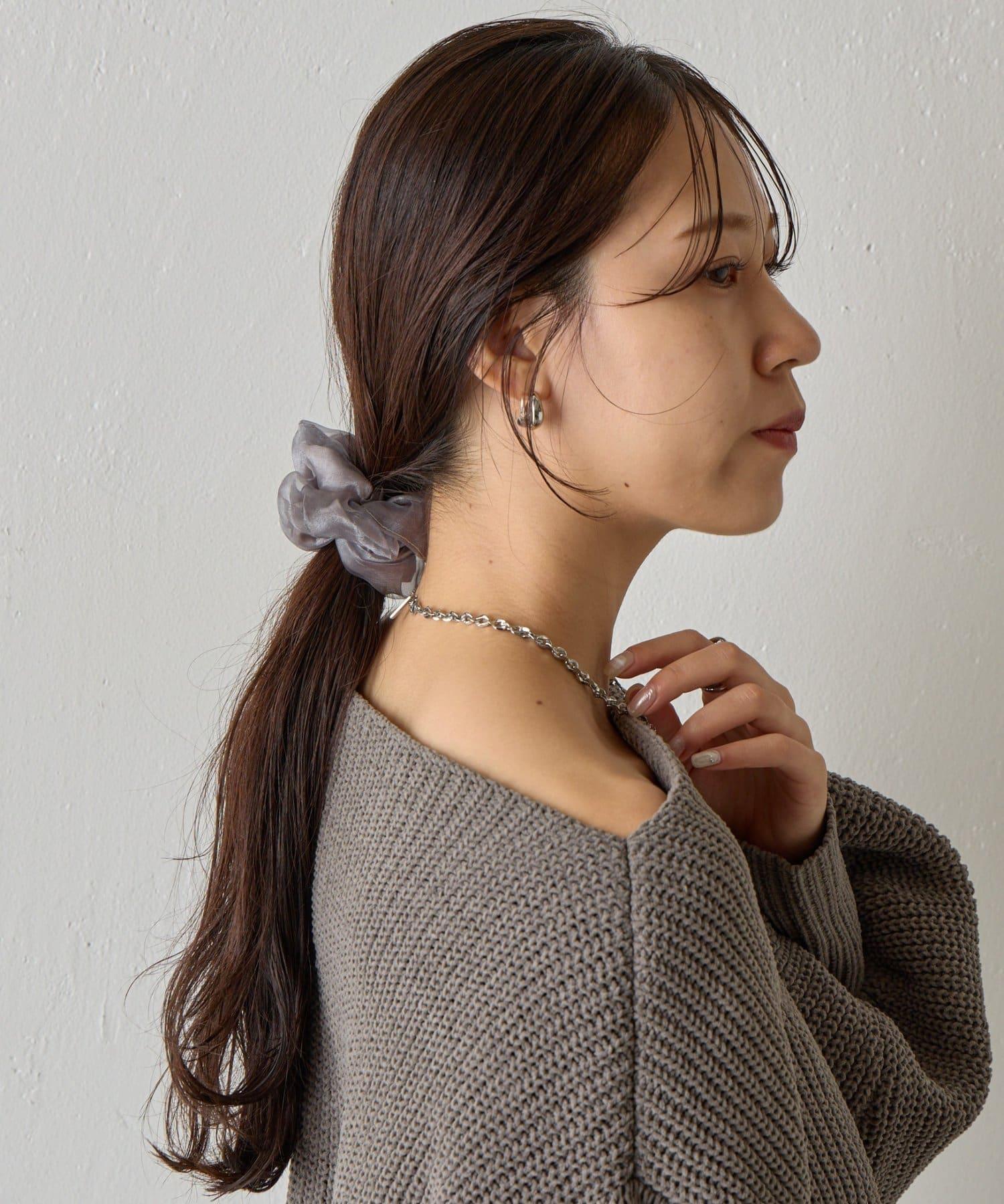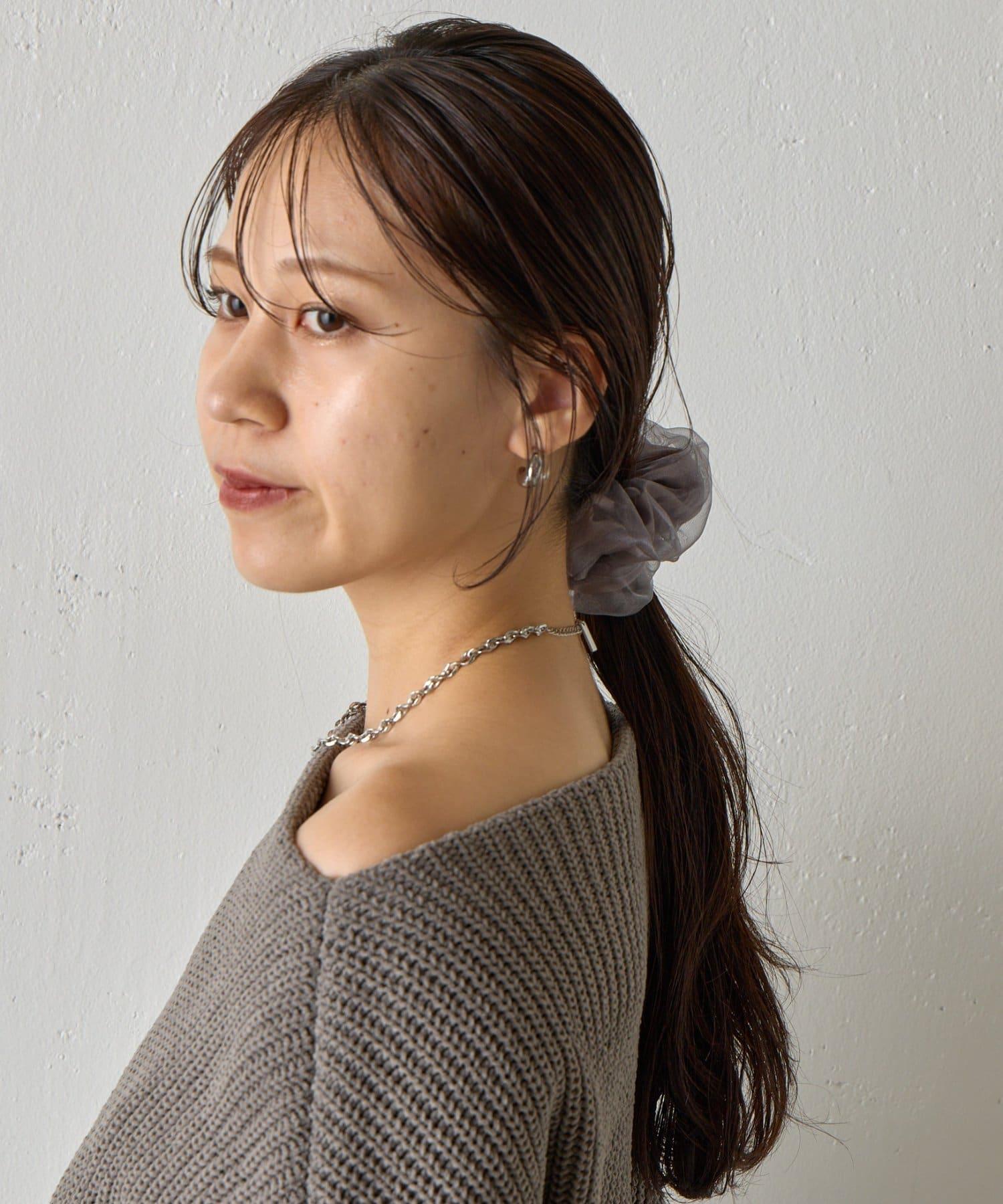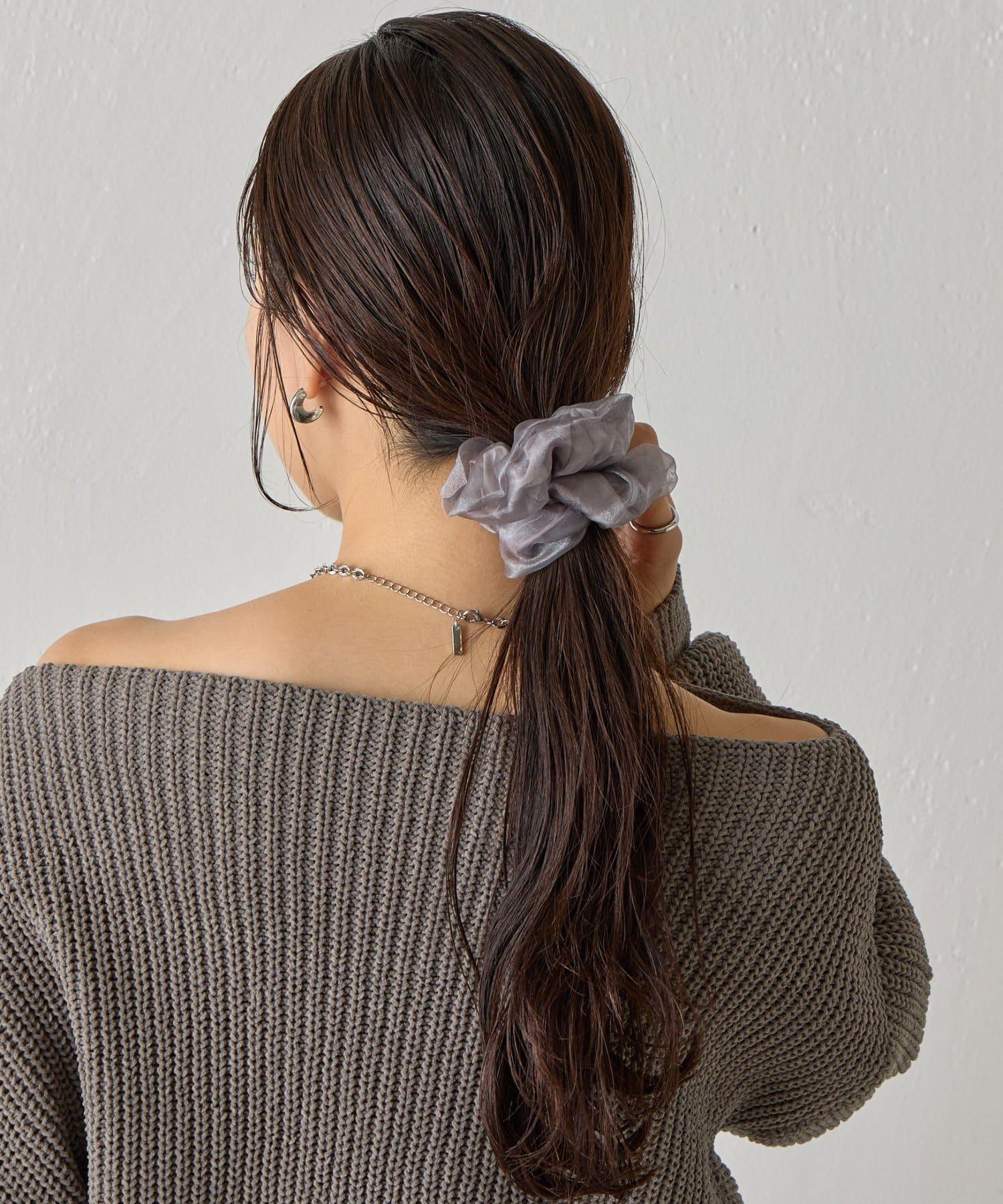 這是一款緞面chou chou,上面有薄紗層疊。