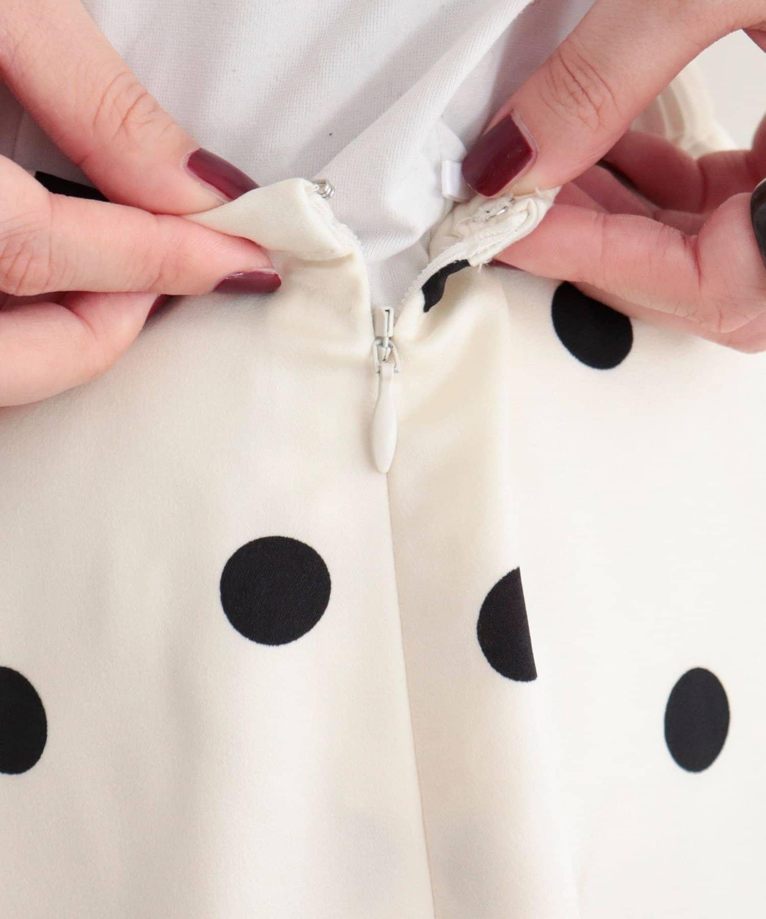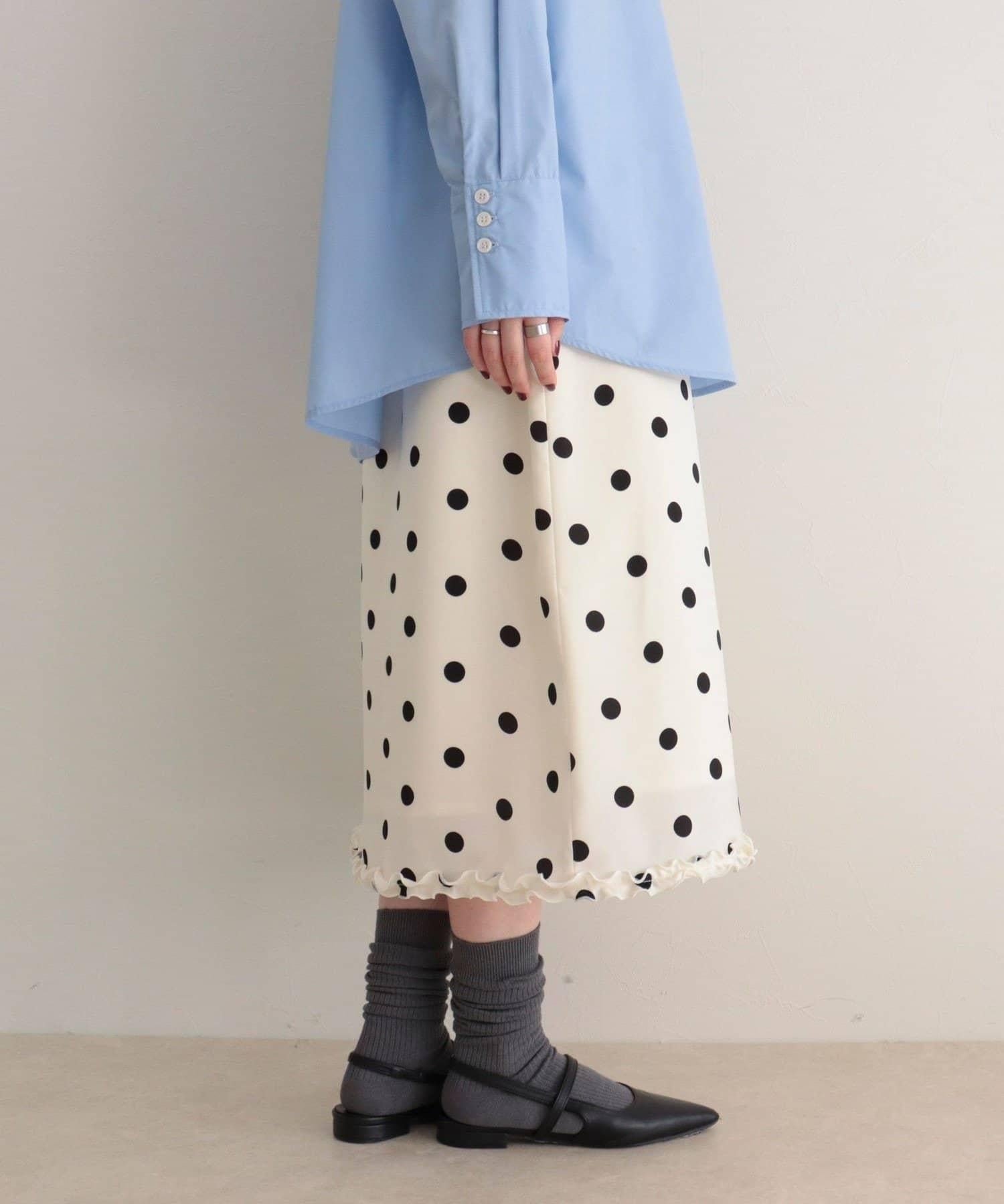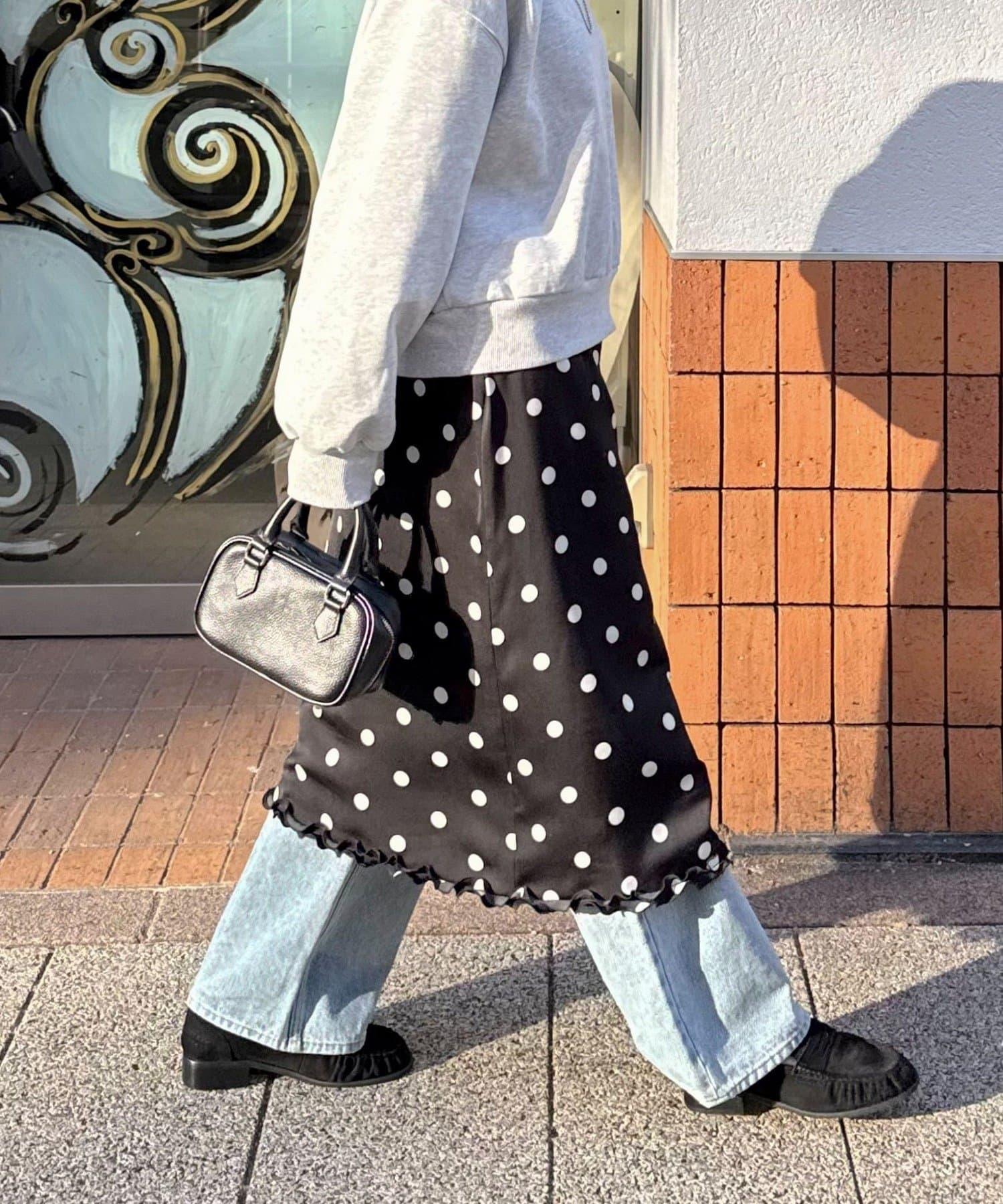 醒目的圓點圖案和下襬的褶邊設計讓這條裙子單穿也很好看。