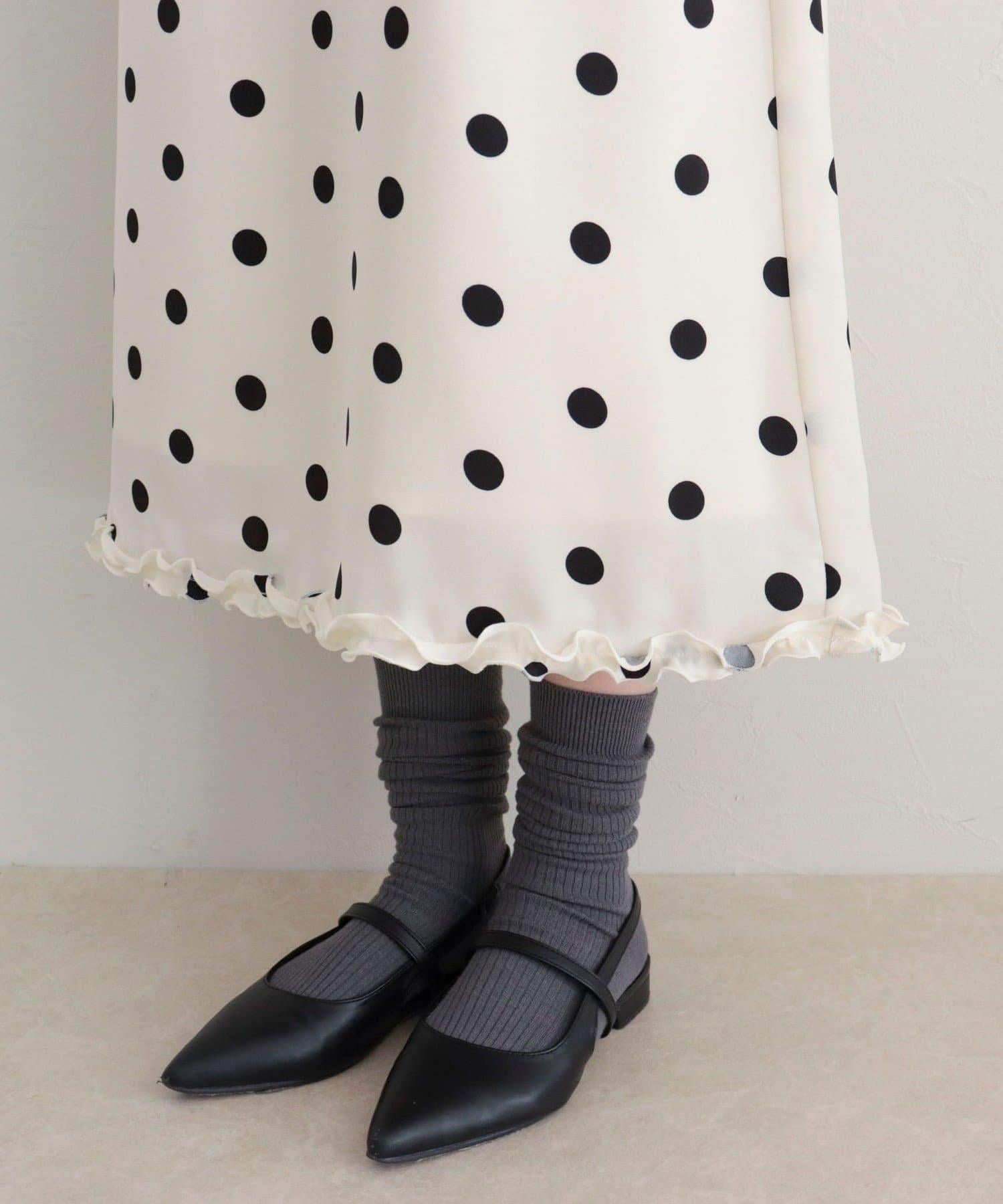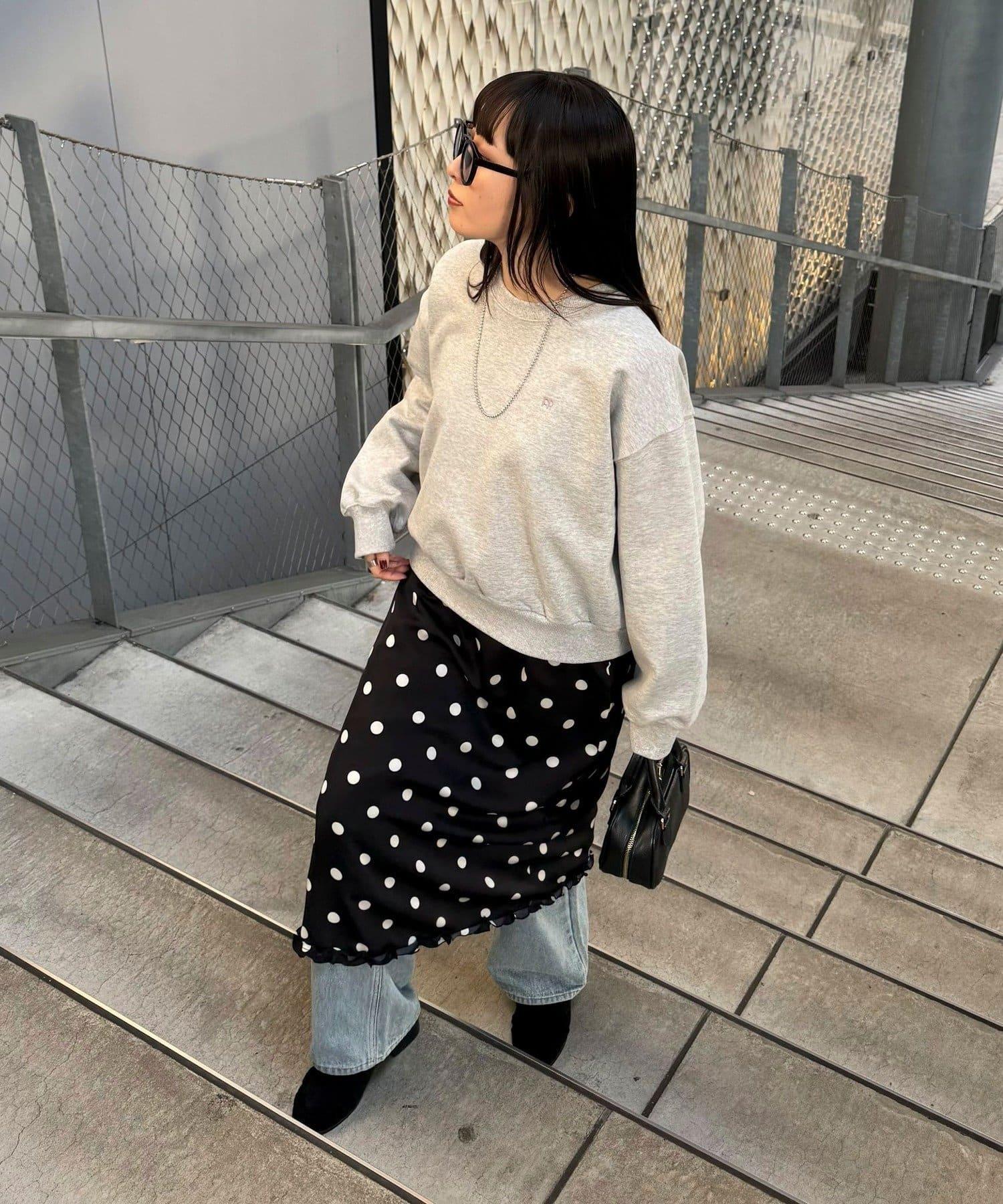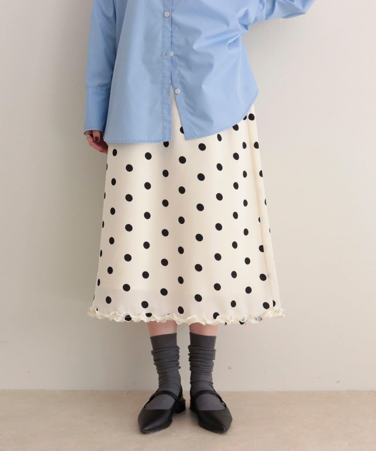 醒目的圓點圖案和下襬的褶邊設計讓這條裙子單穿也很好看。