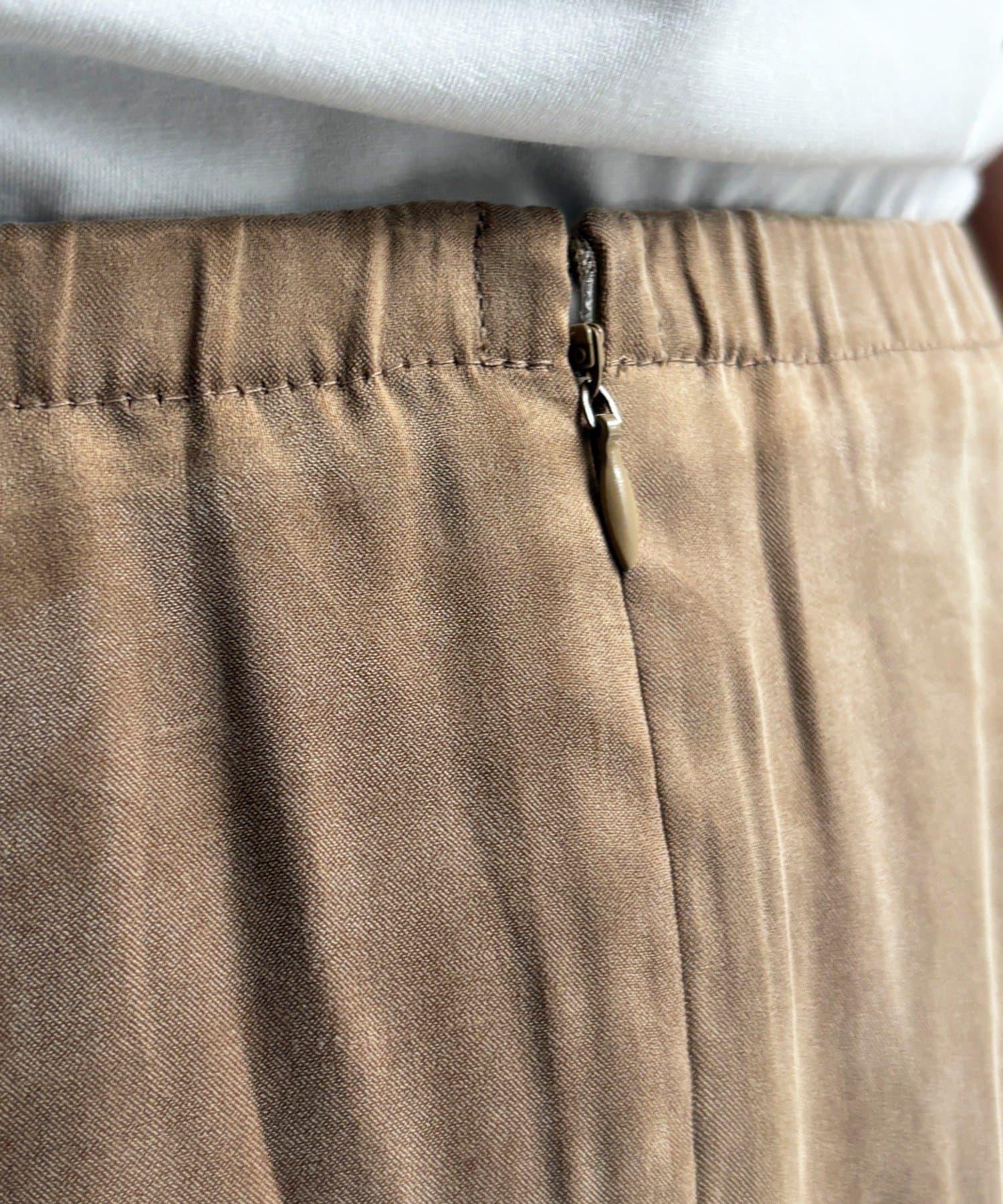 腰部採用鬆緊帶設計,易於穿著,下襬在後部開衩,方便活動。腿部活動自如。