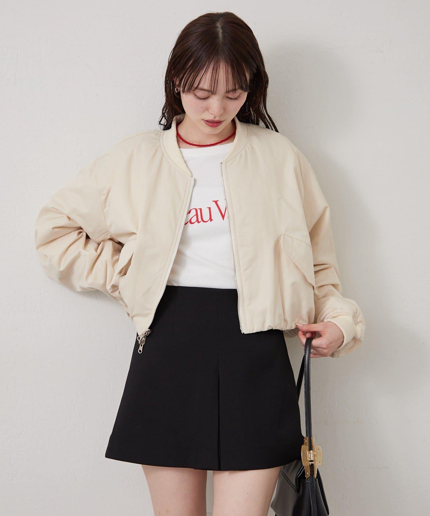 內搭標誌 T,罩衫前襟敞開,看起來很可愛。