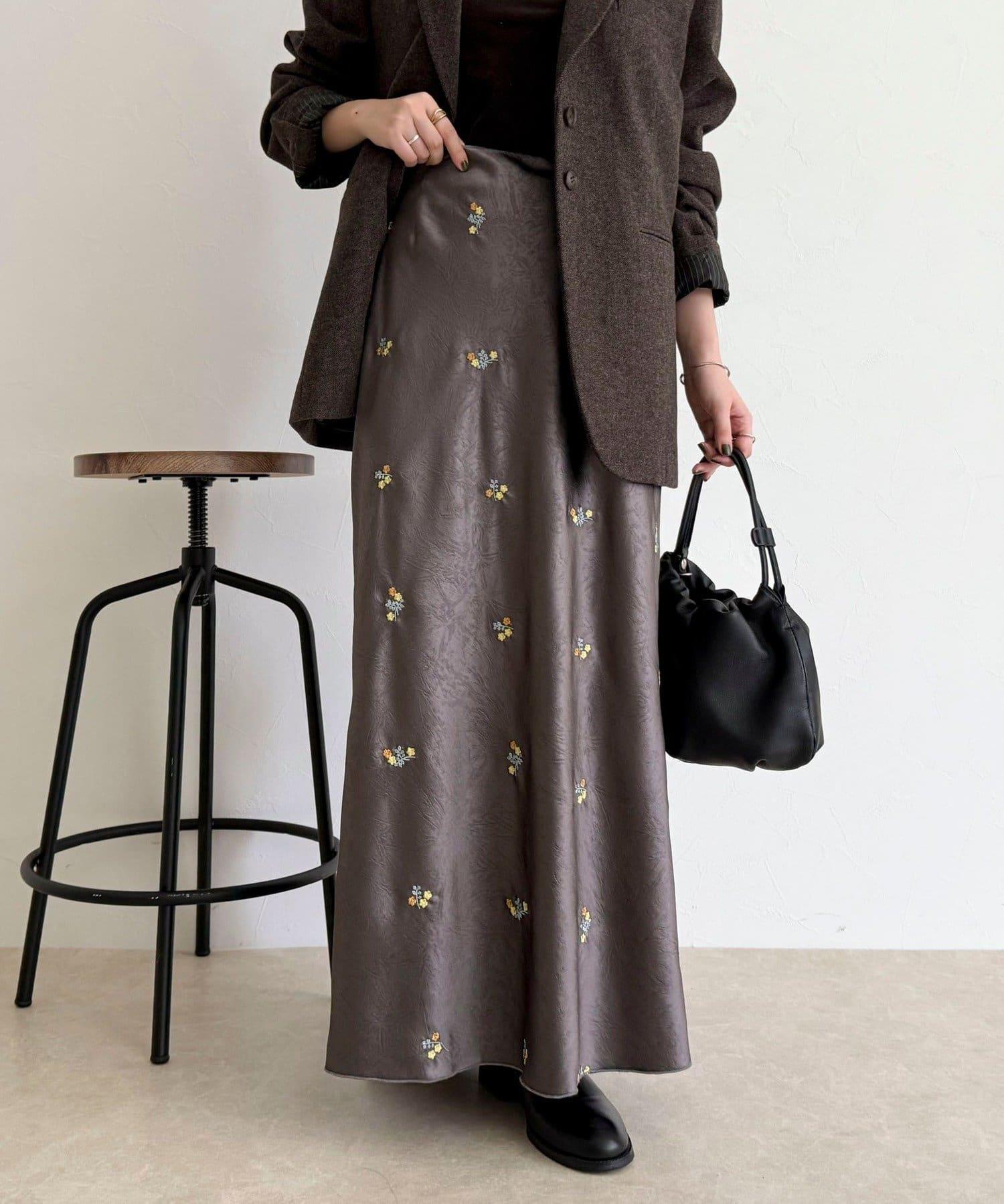 緞面花卉刺繡半身裙