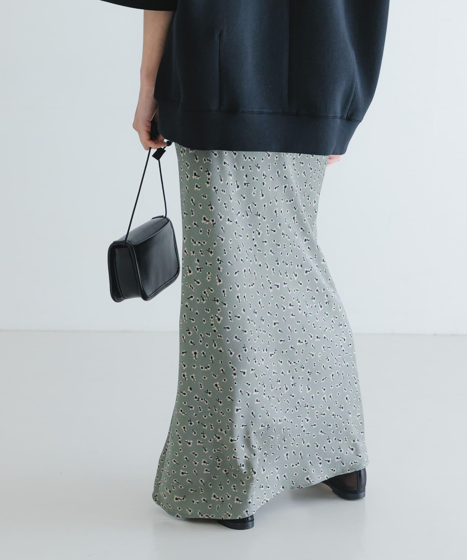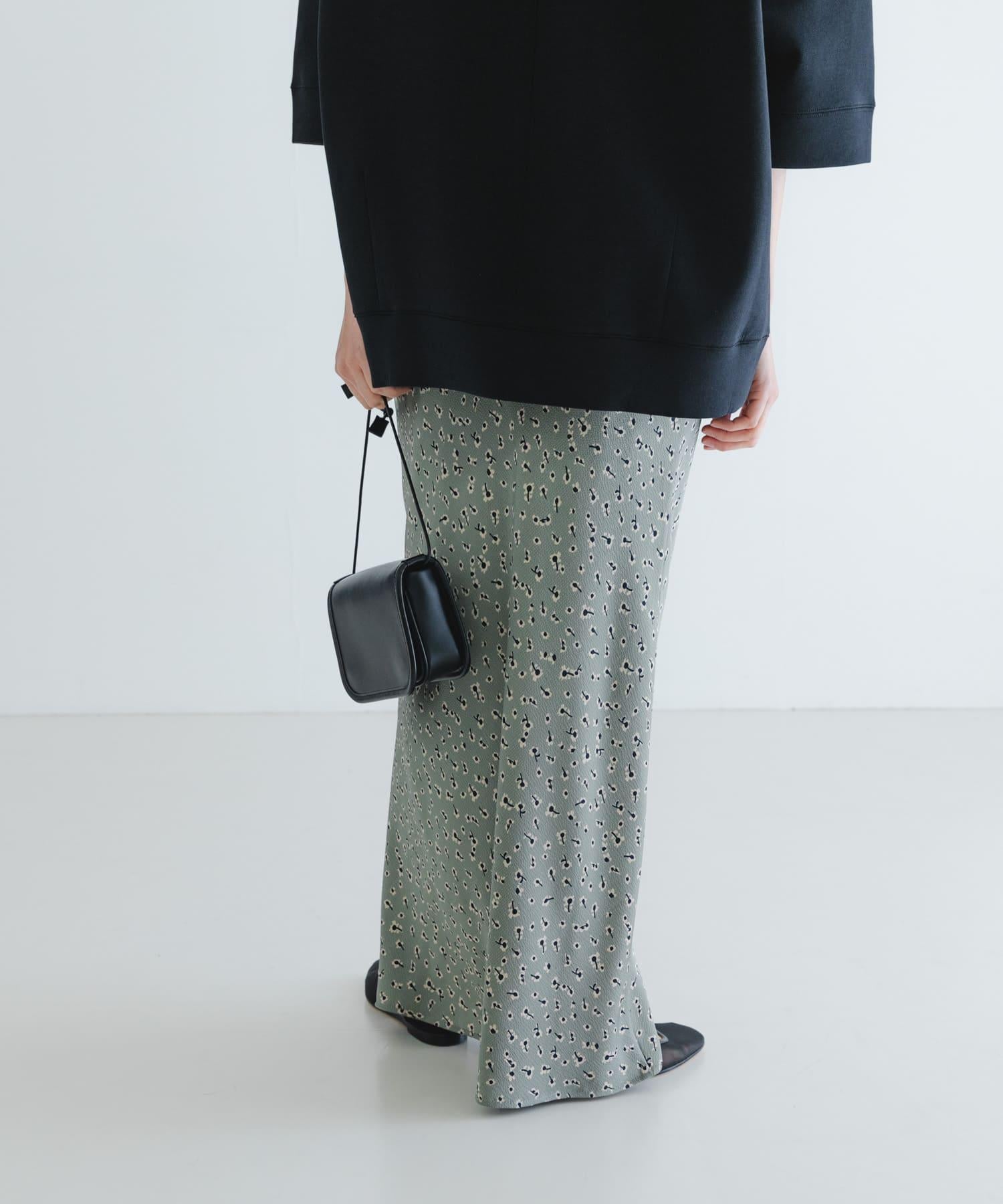 這款裙裝在緞面面料上印有豹紋花朵圖案,表面手感極佳,頗有復古氣息。