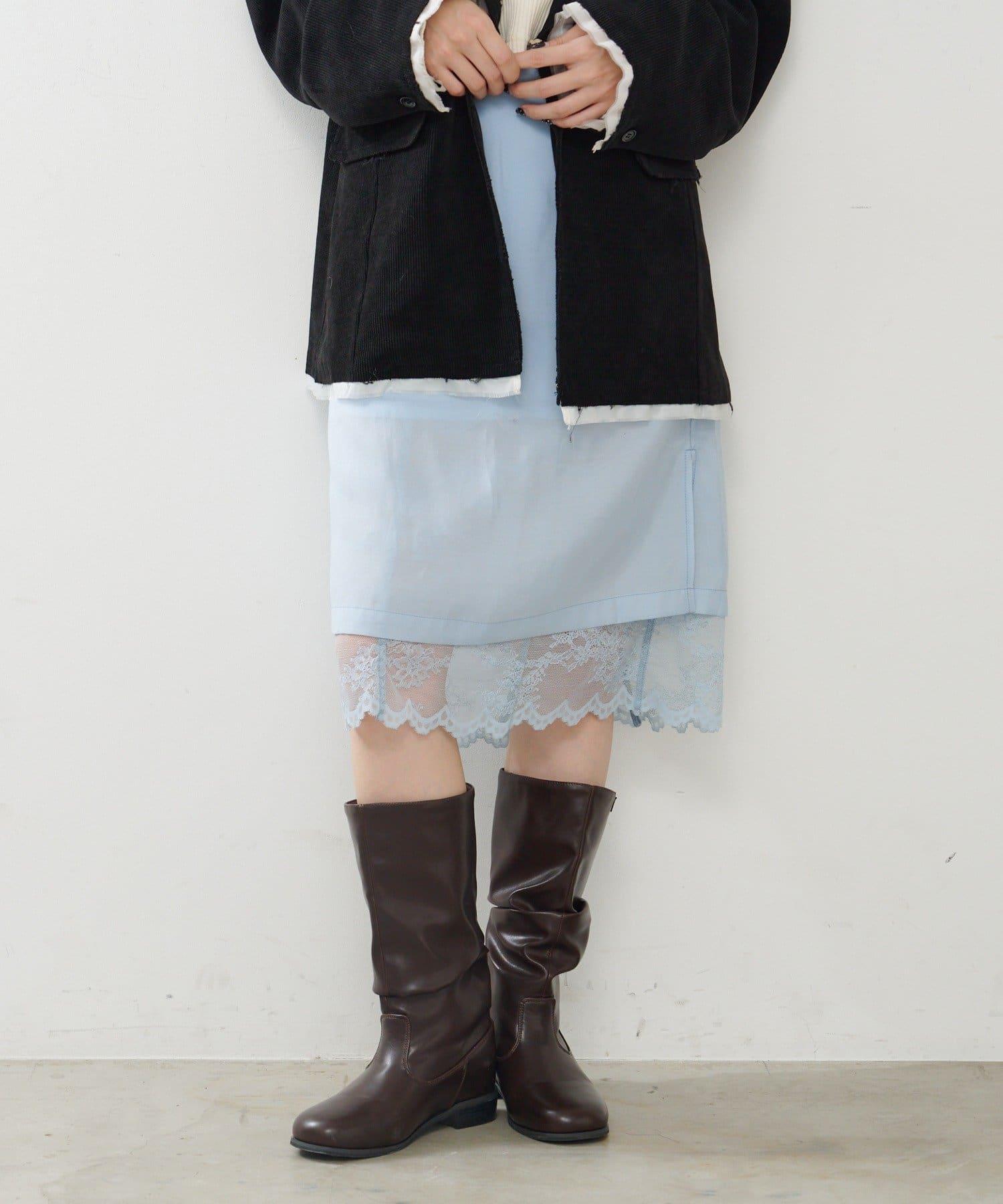 緞面與蕾絲的雙向裙襬,可隨心情改變印象。