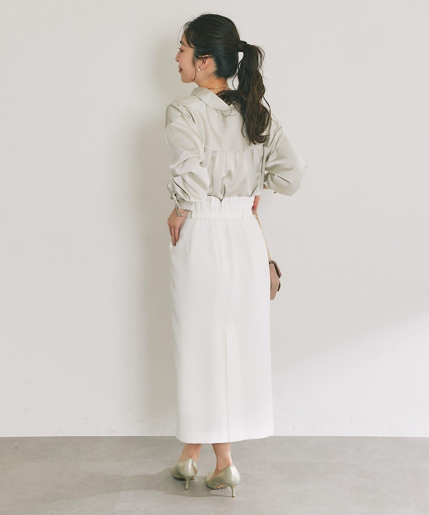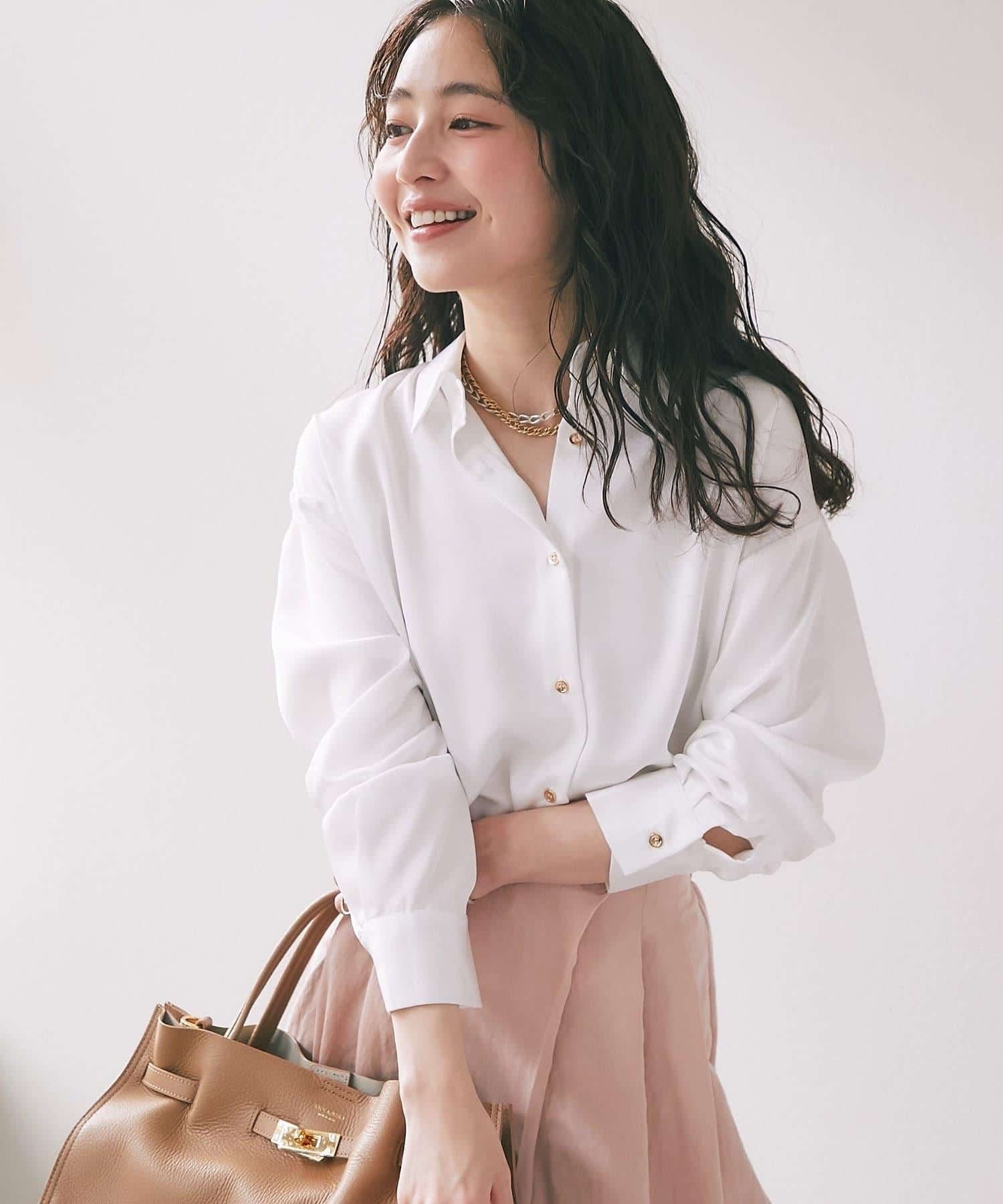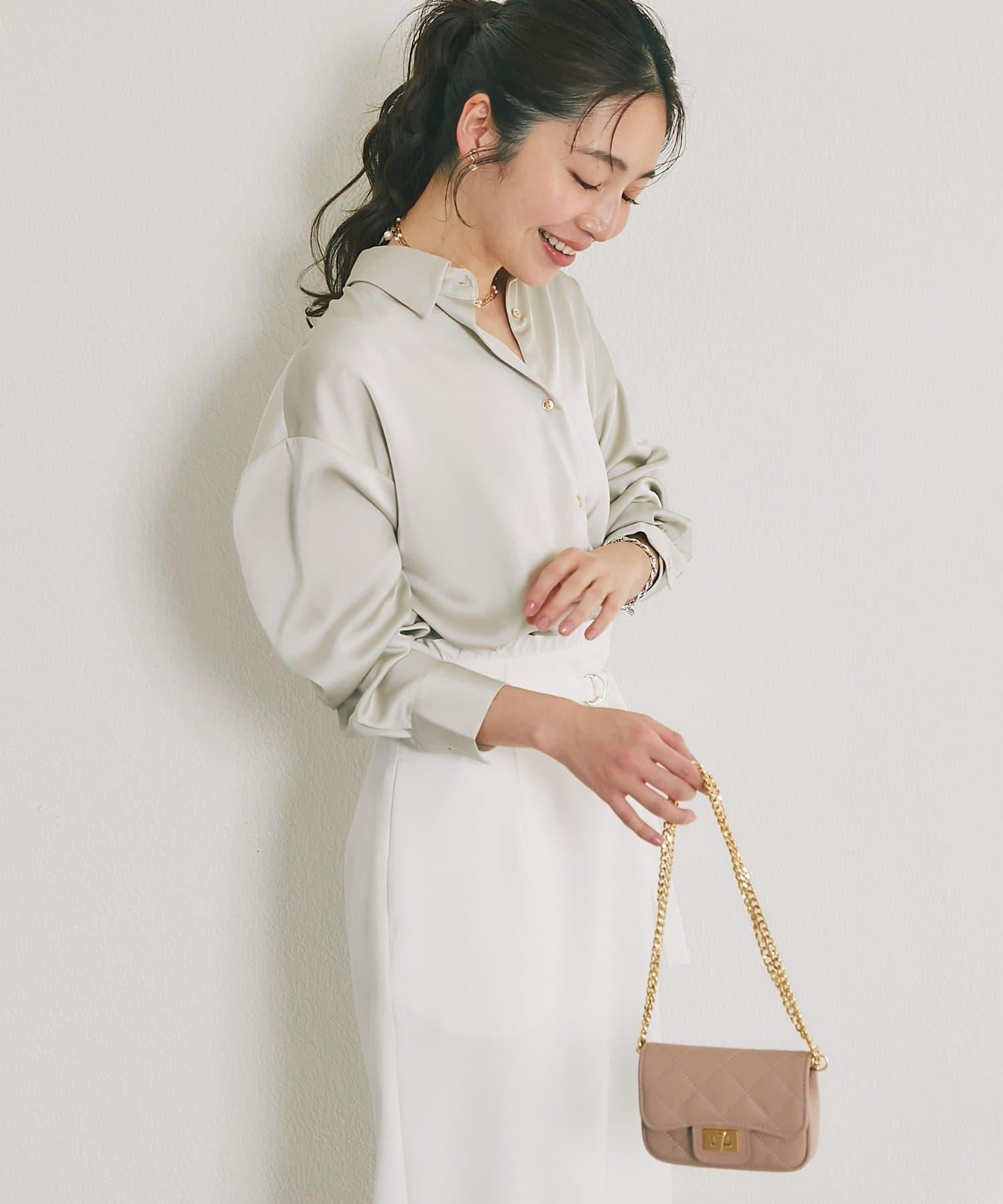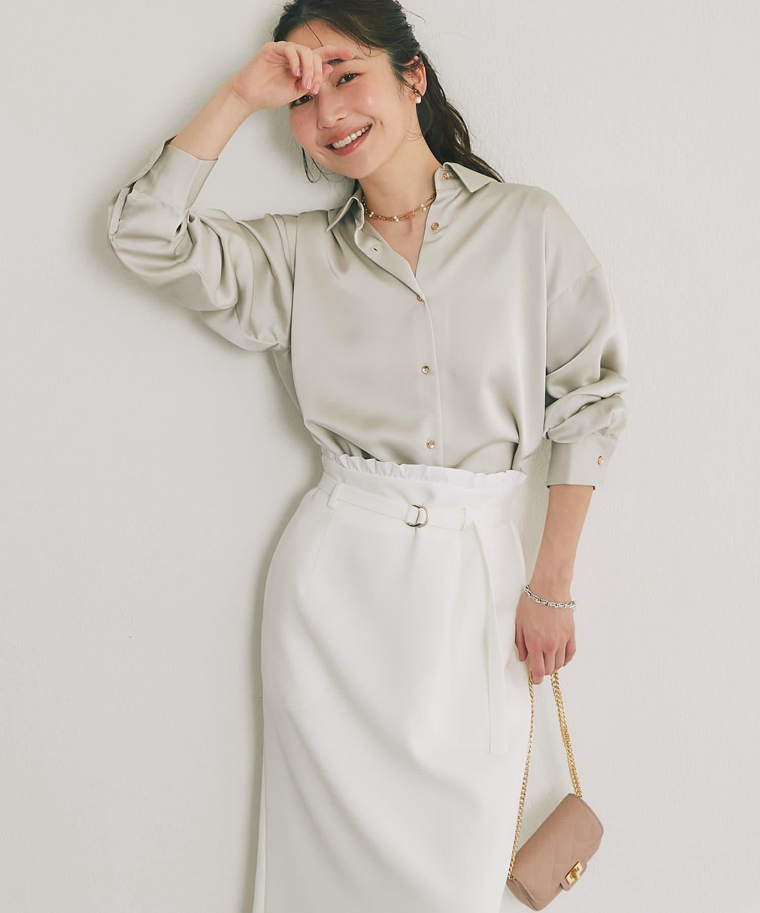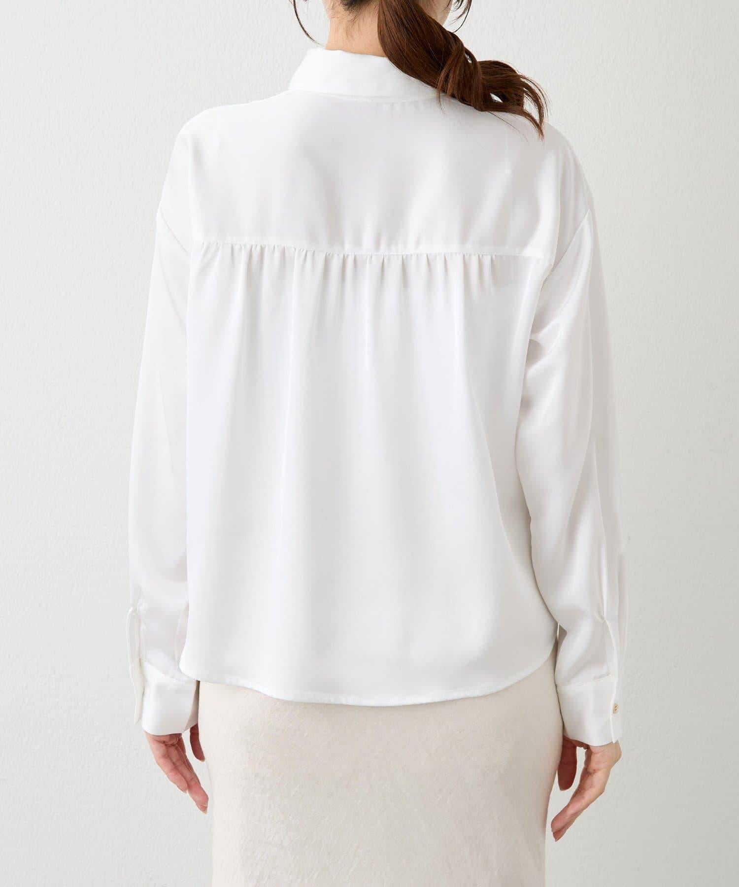 這款緞面襯衫外觀優雅,具有女性特有的光澤和寬鬆感。