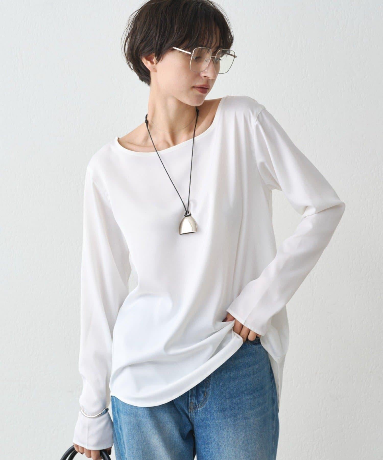 優雅的船形領口能很好地展示鎖骨,給人以乾淨利落的印象。