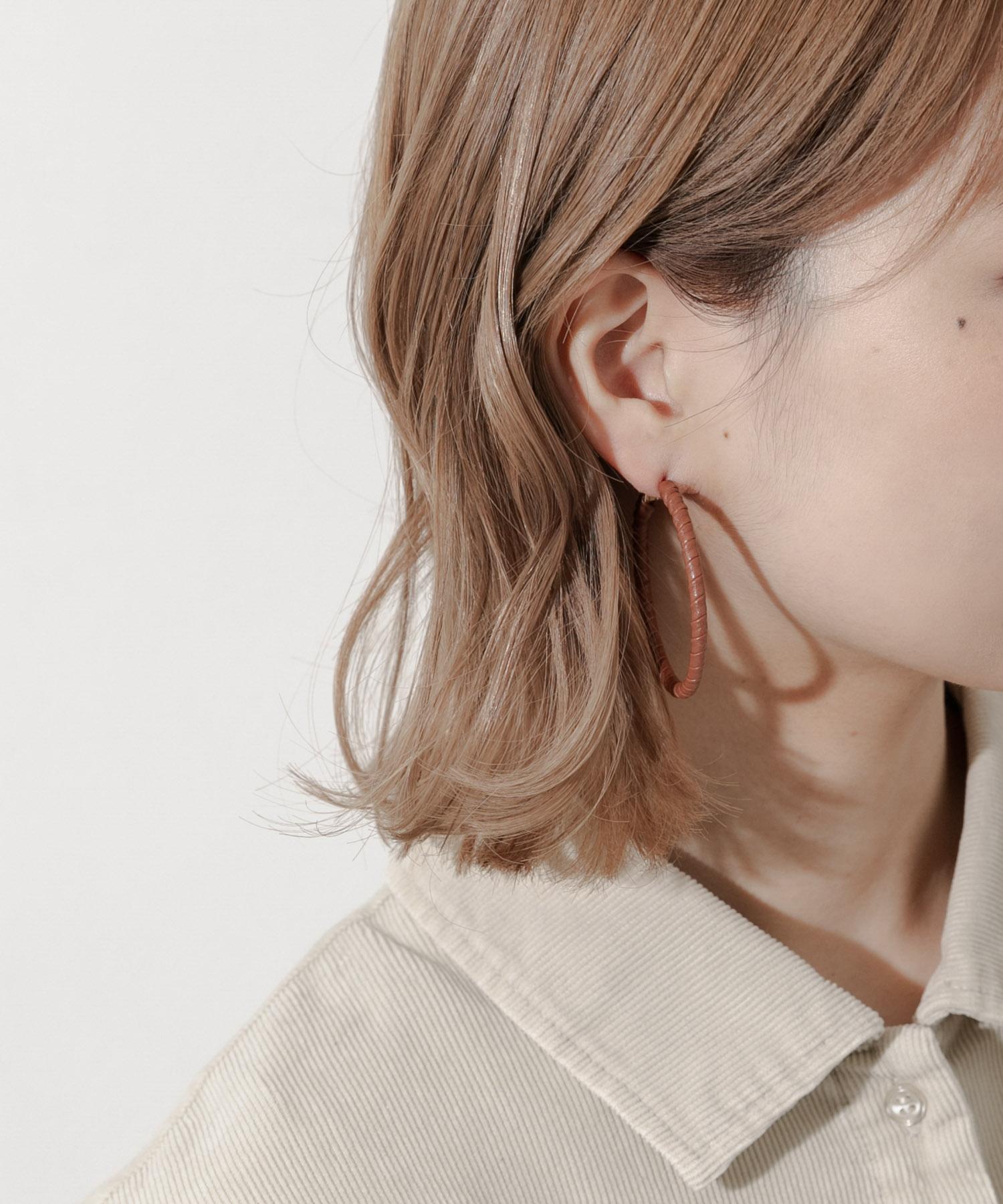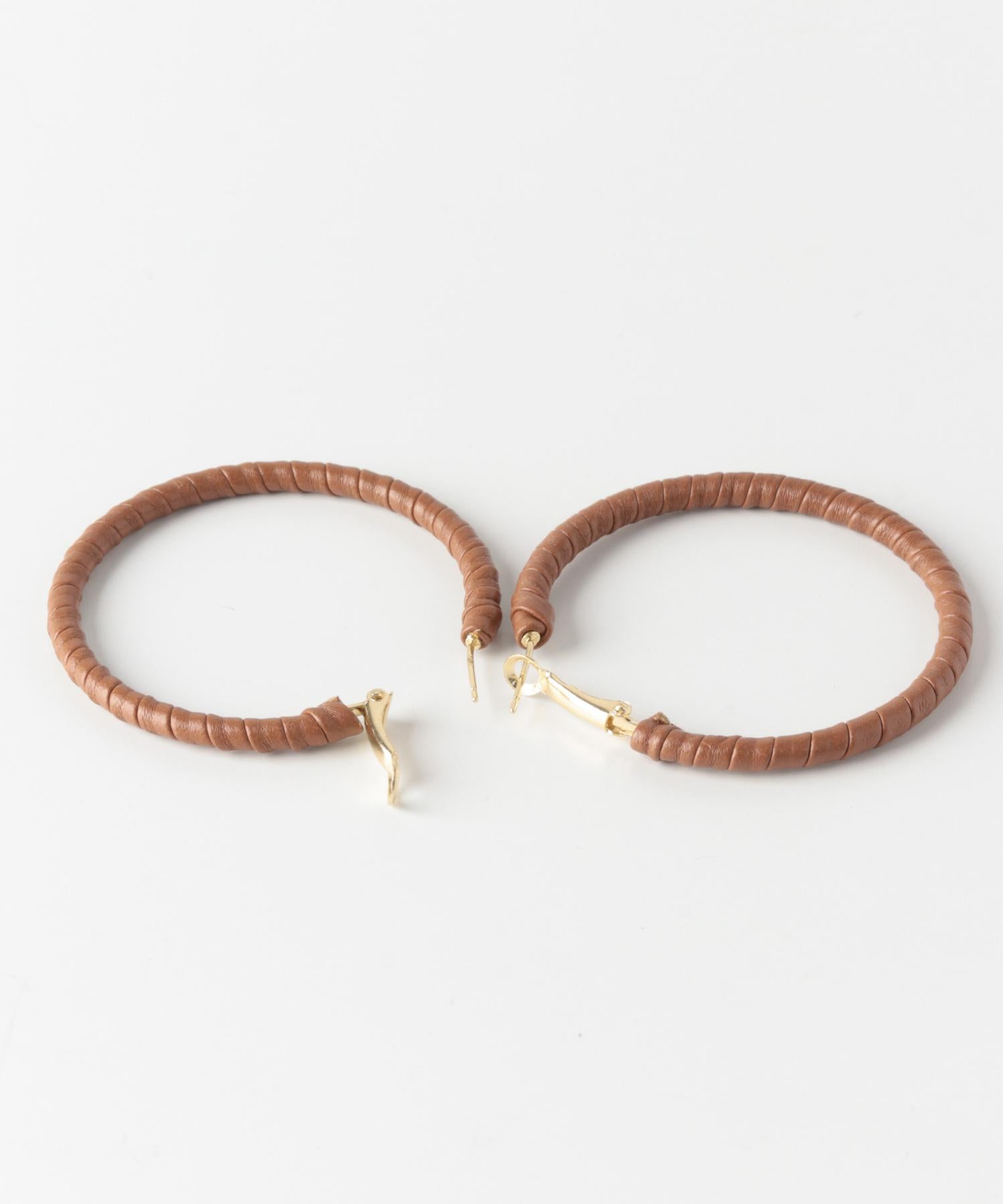 這款耳環採用細繩精心纏繞整個環圈的設計。
