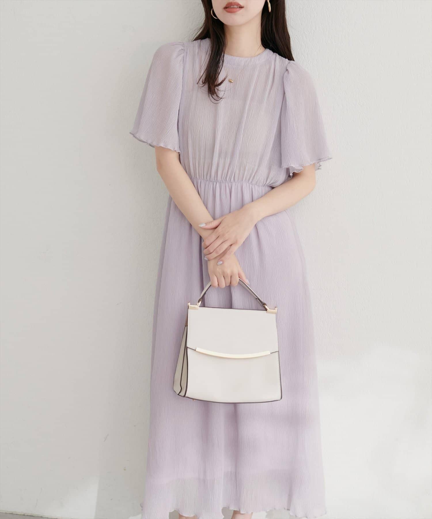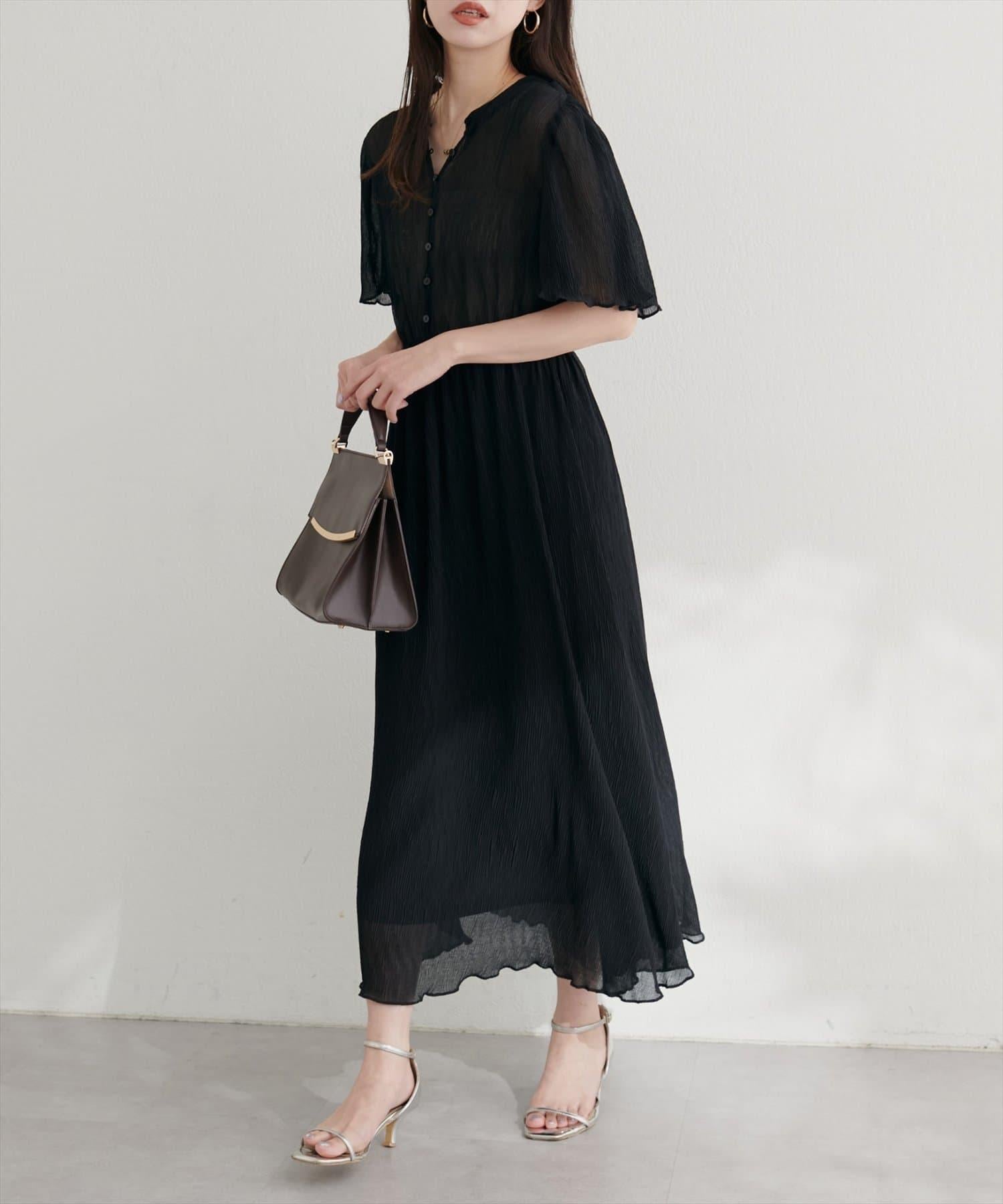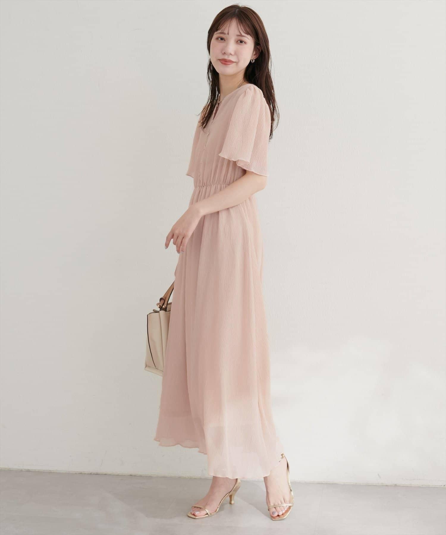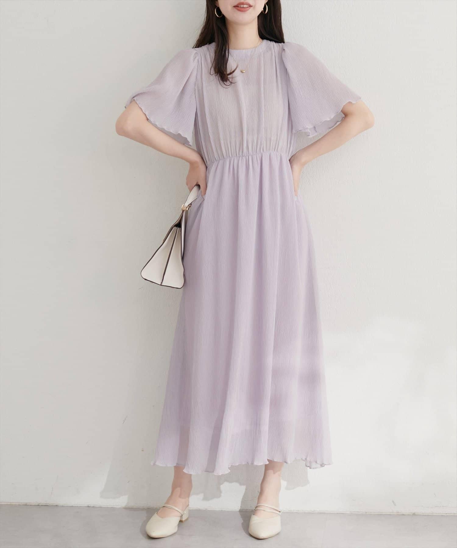 總褶皺波浪袖連衣裙