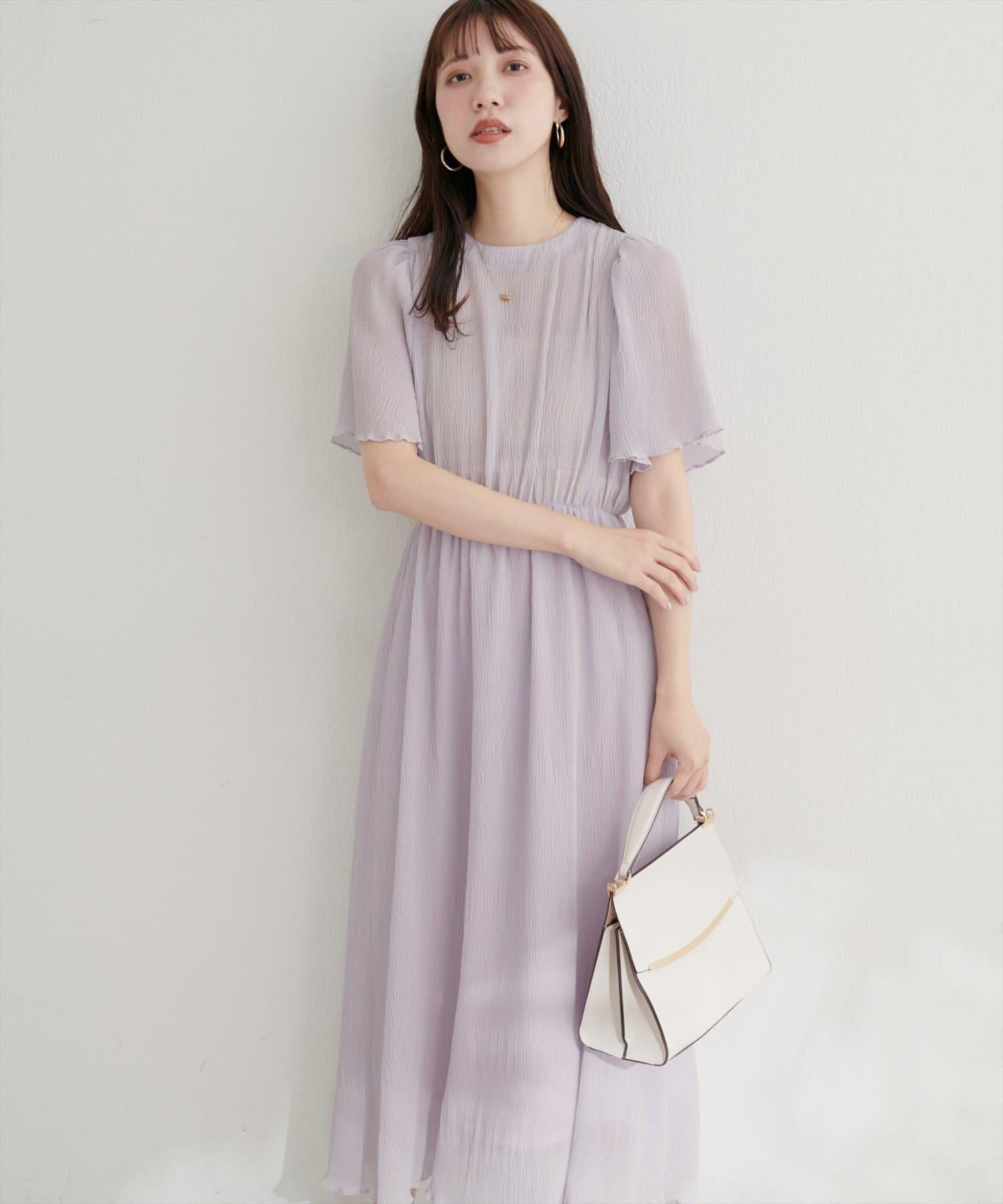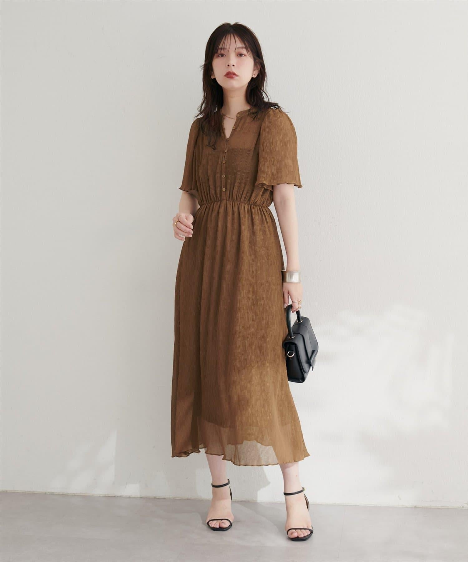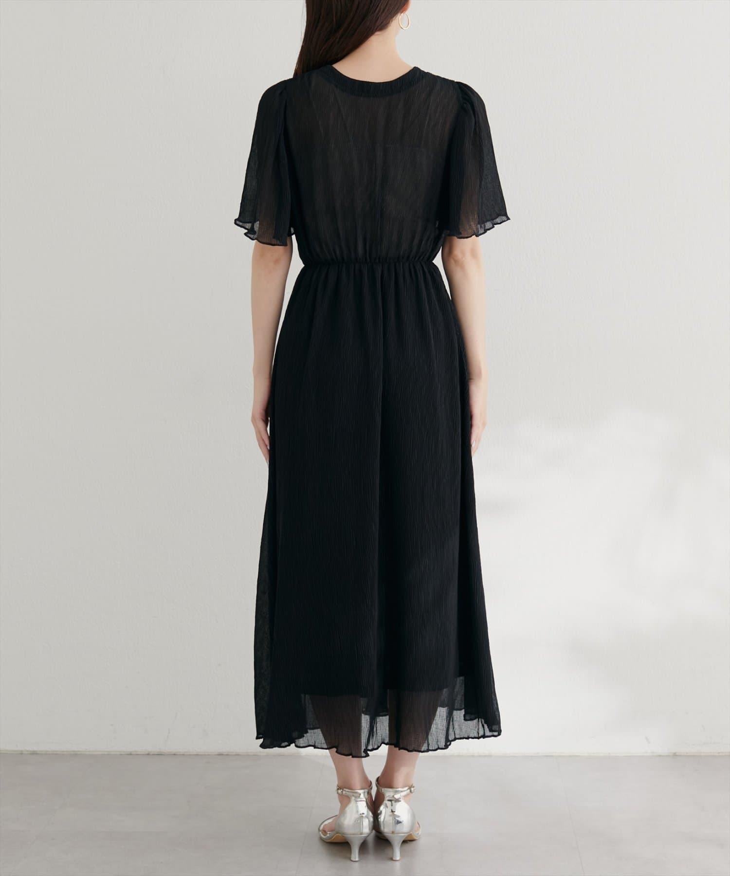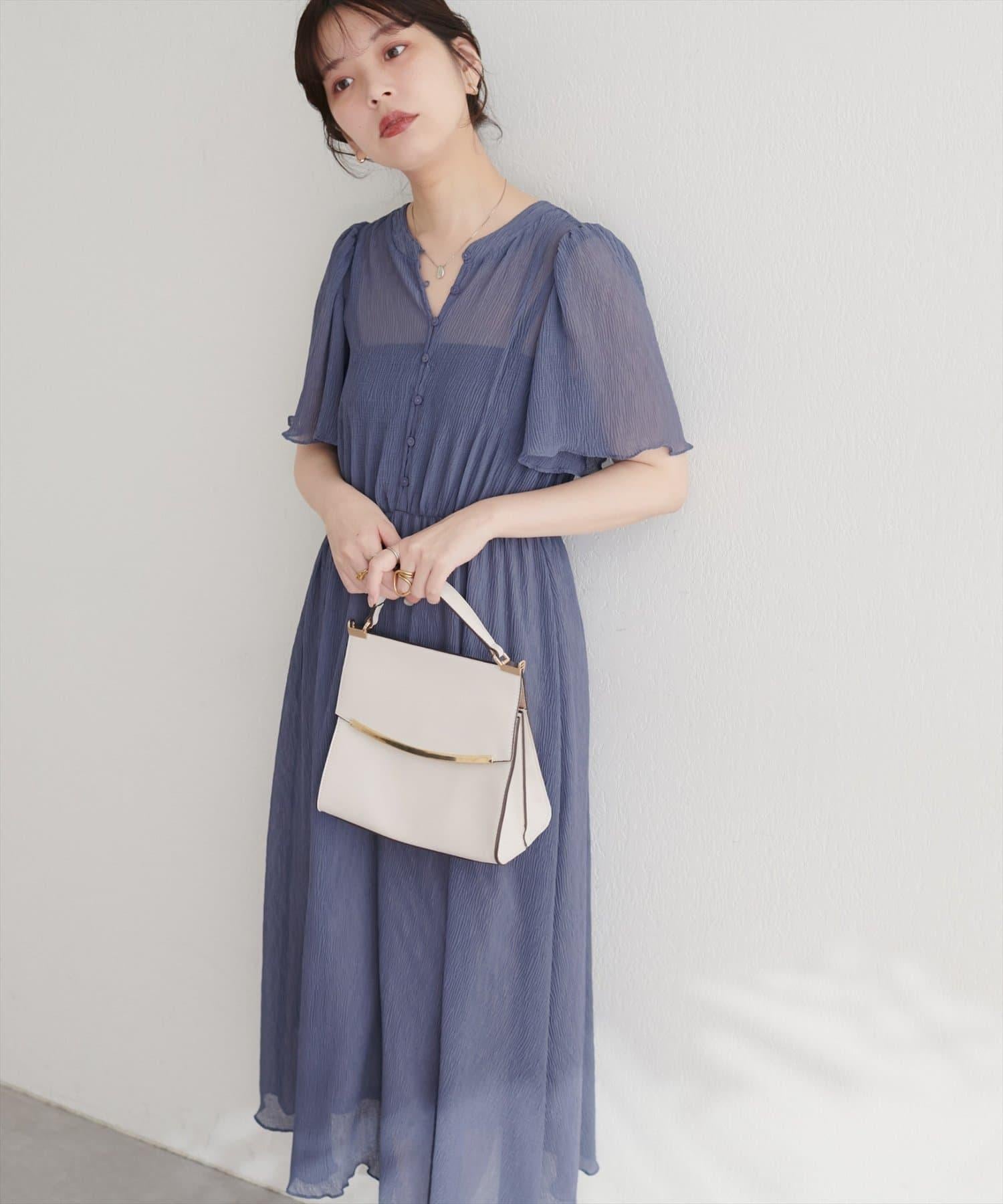 總褶皺波浪袖連衣裙