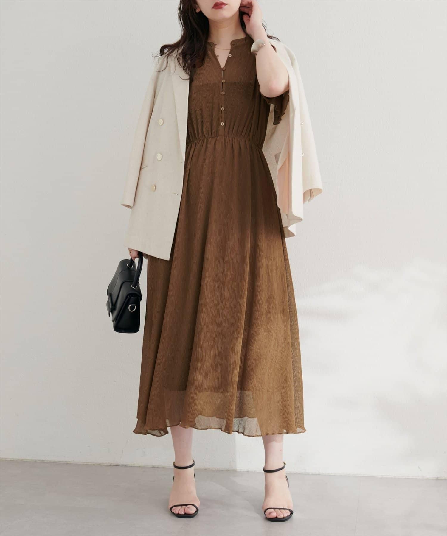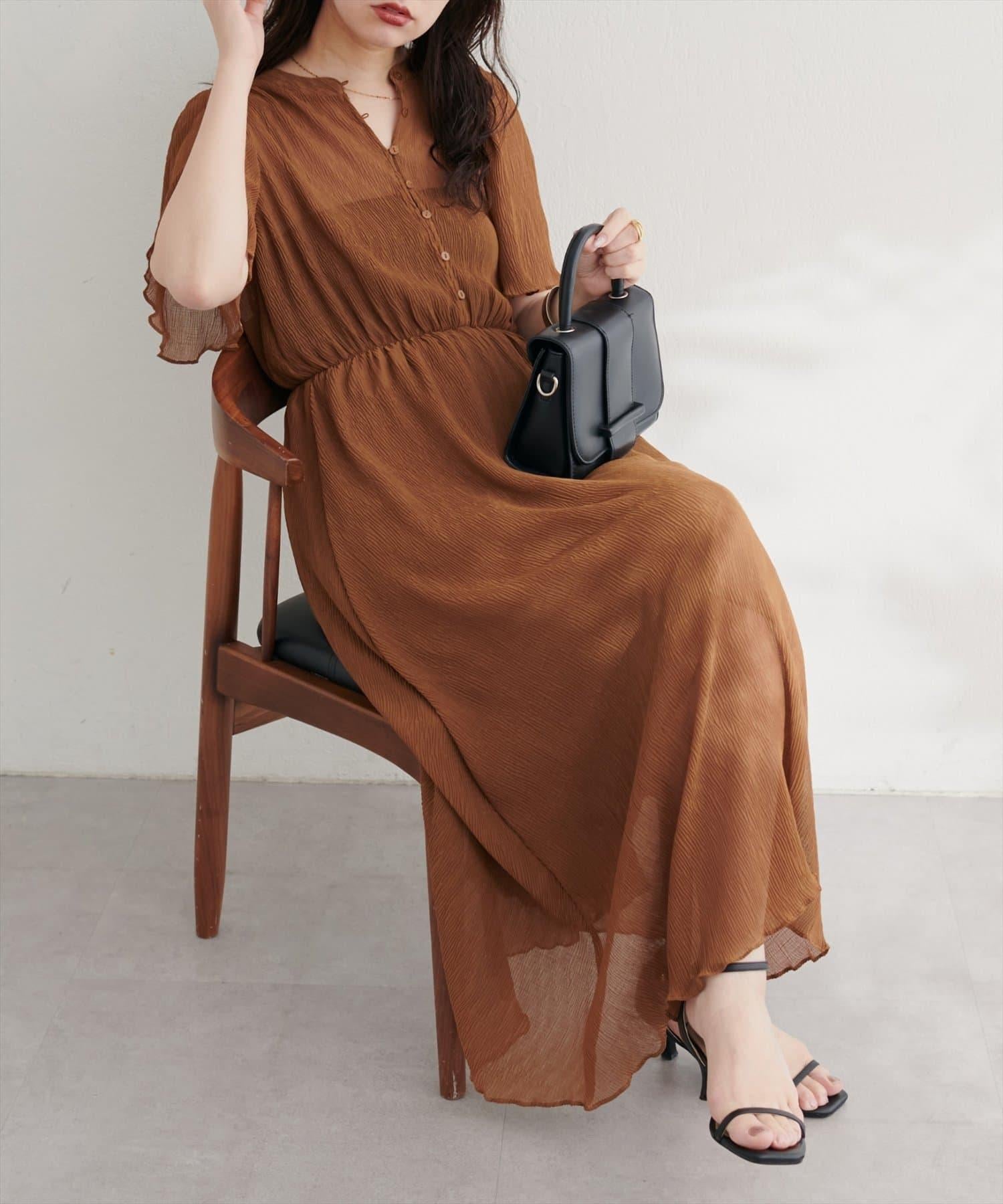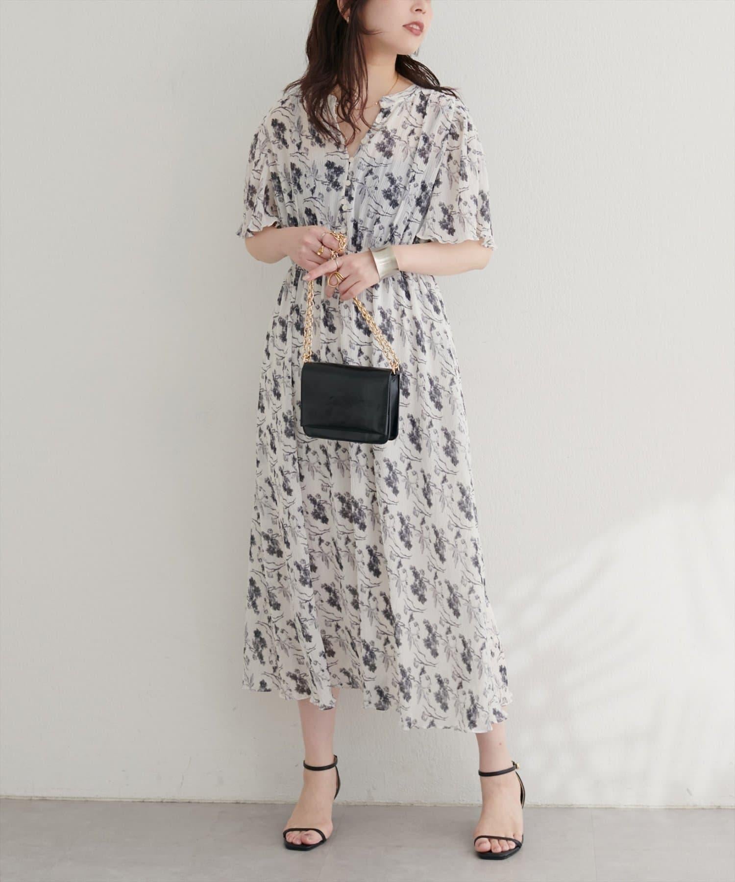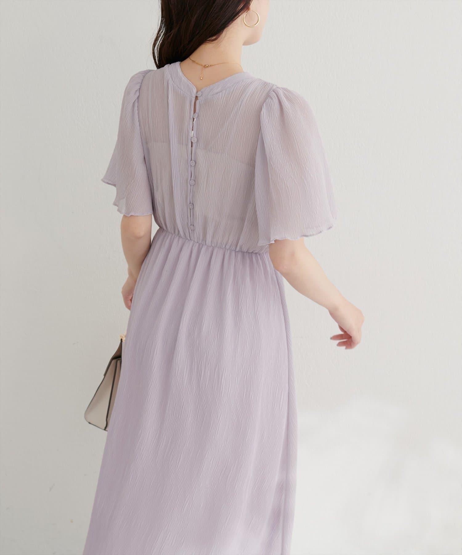 總褶皺波浪袖連衣裙