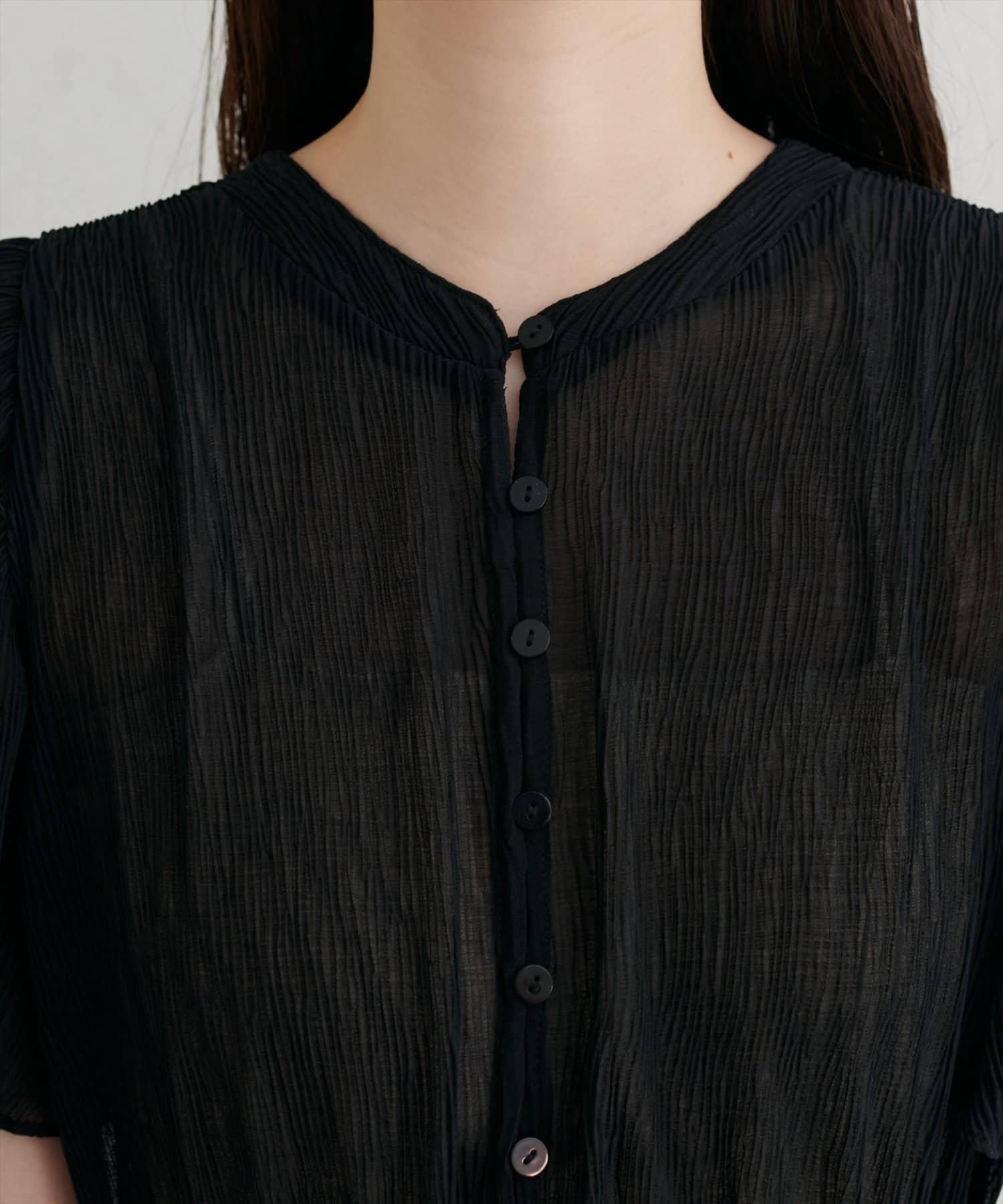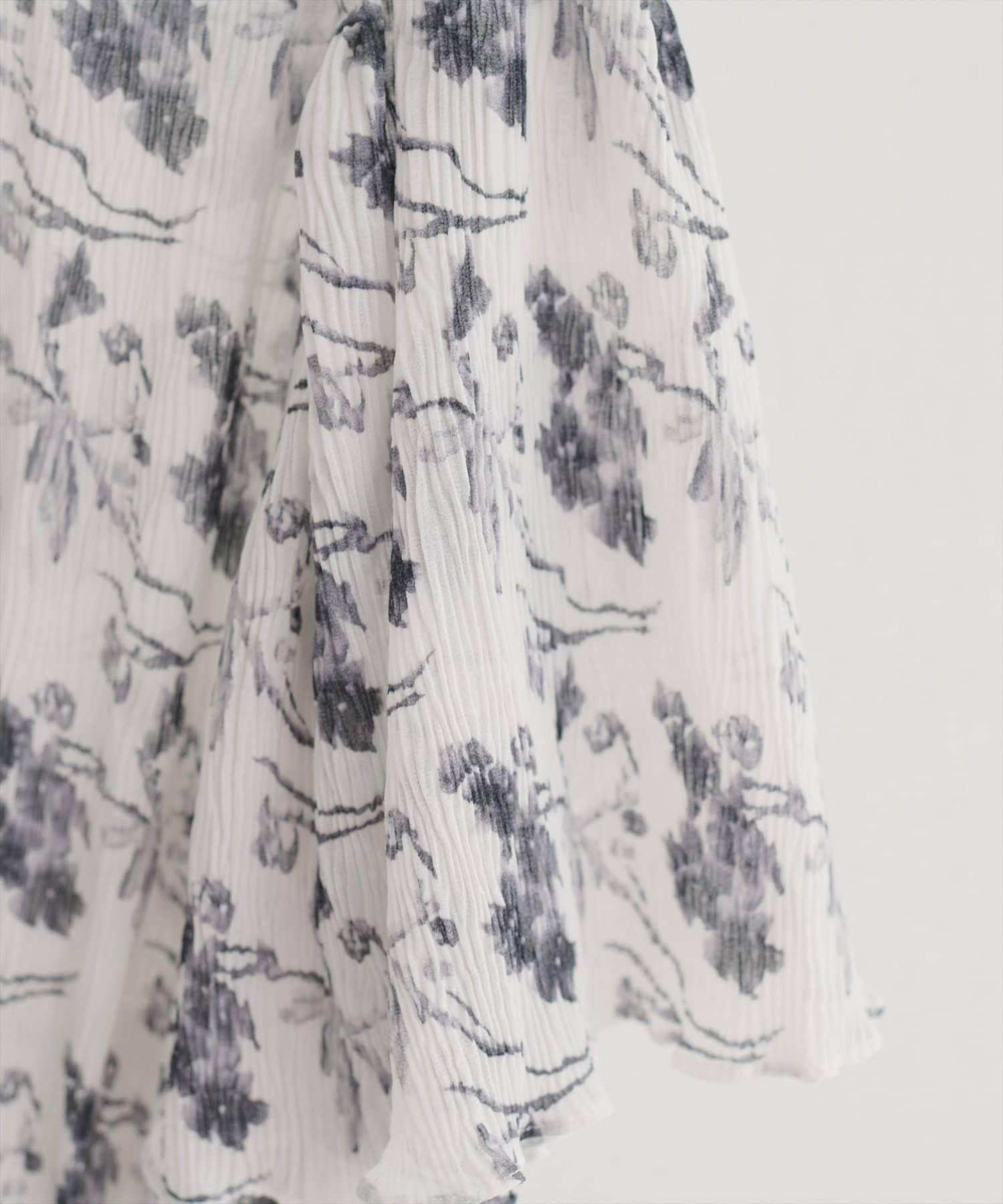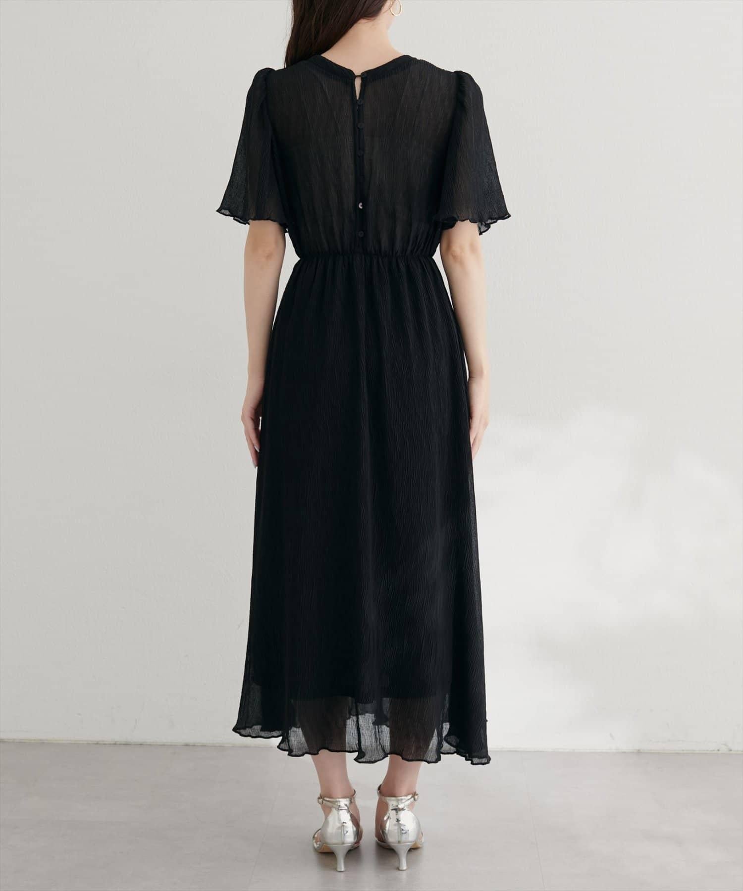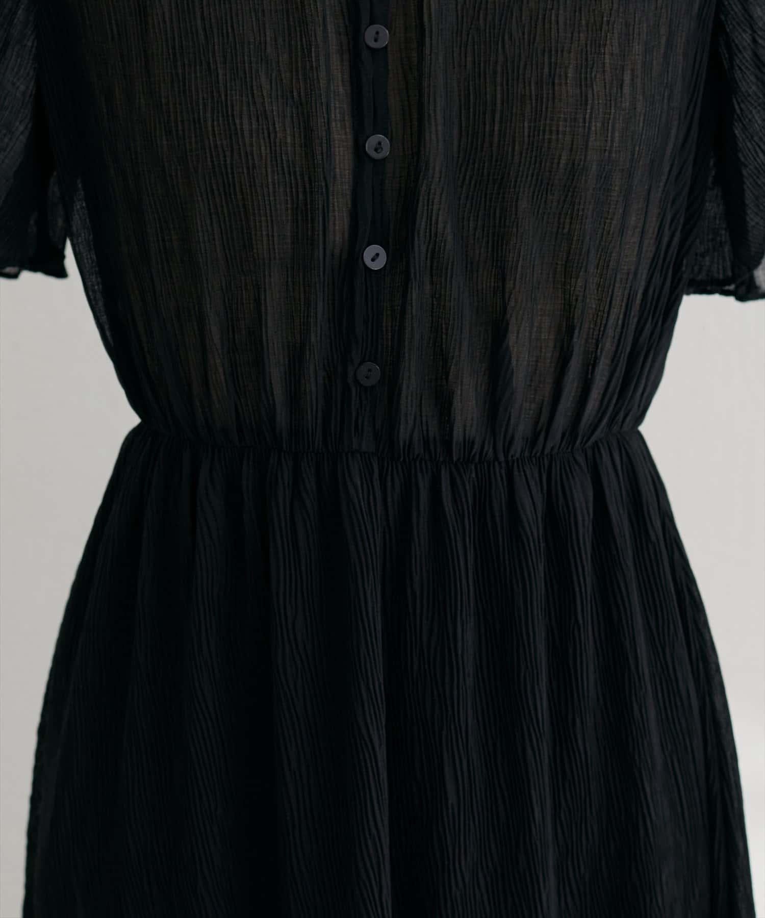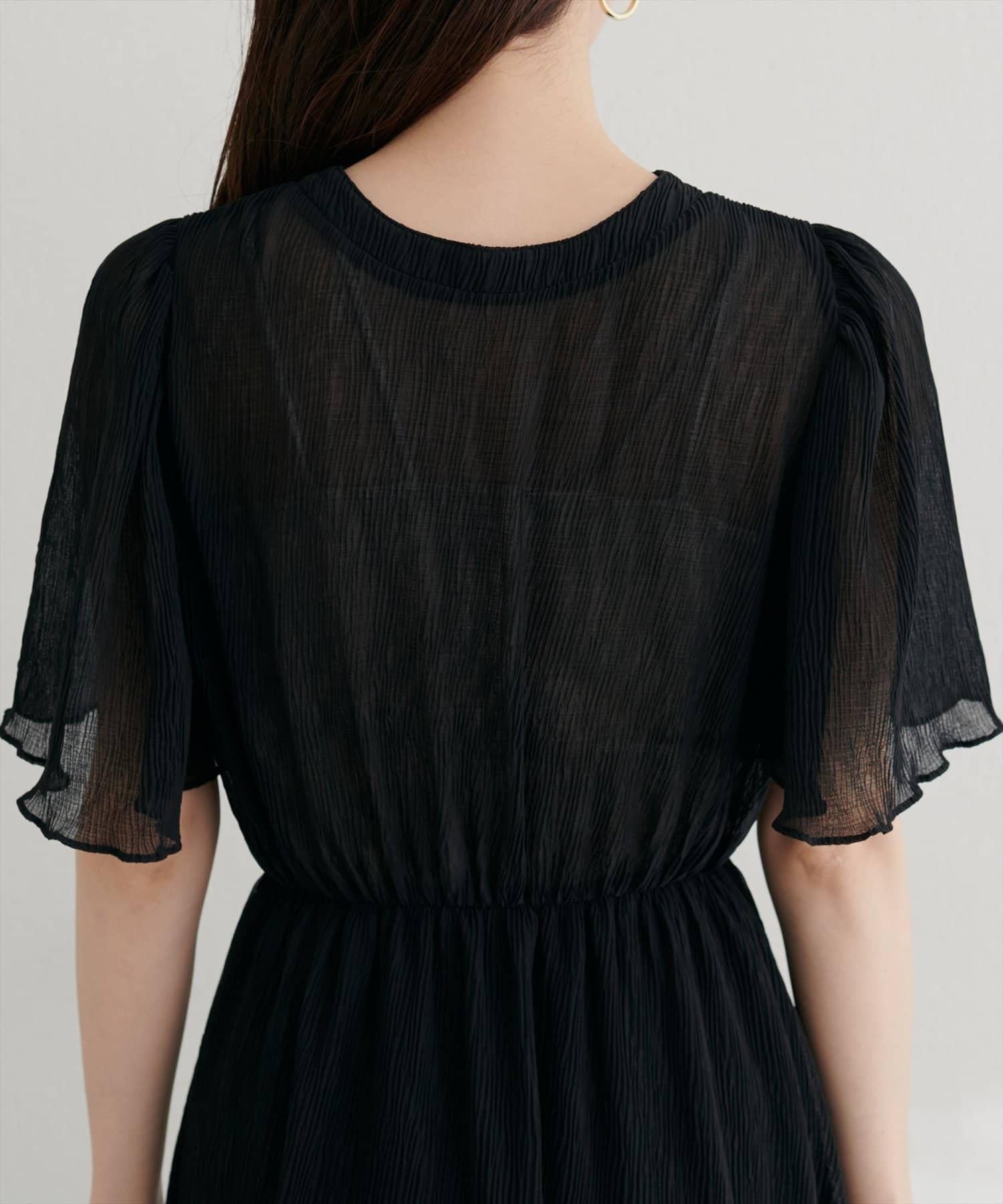 全褶皺喇叭袖連衣裙