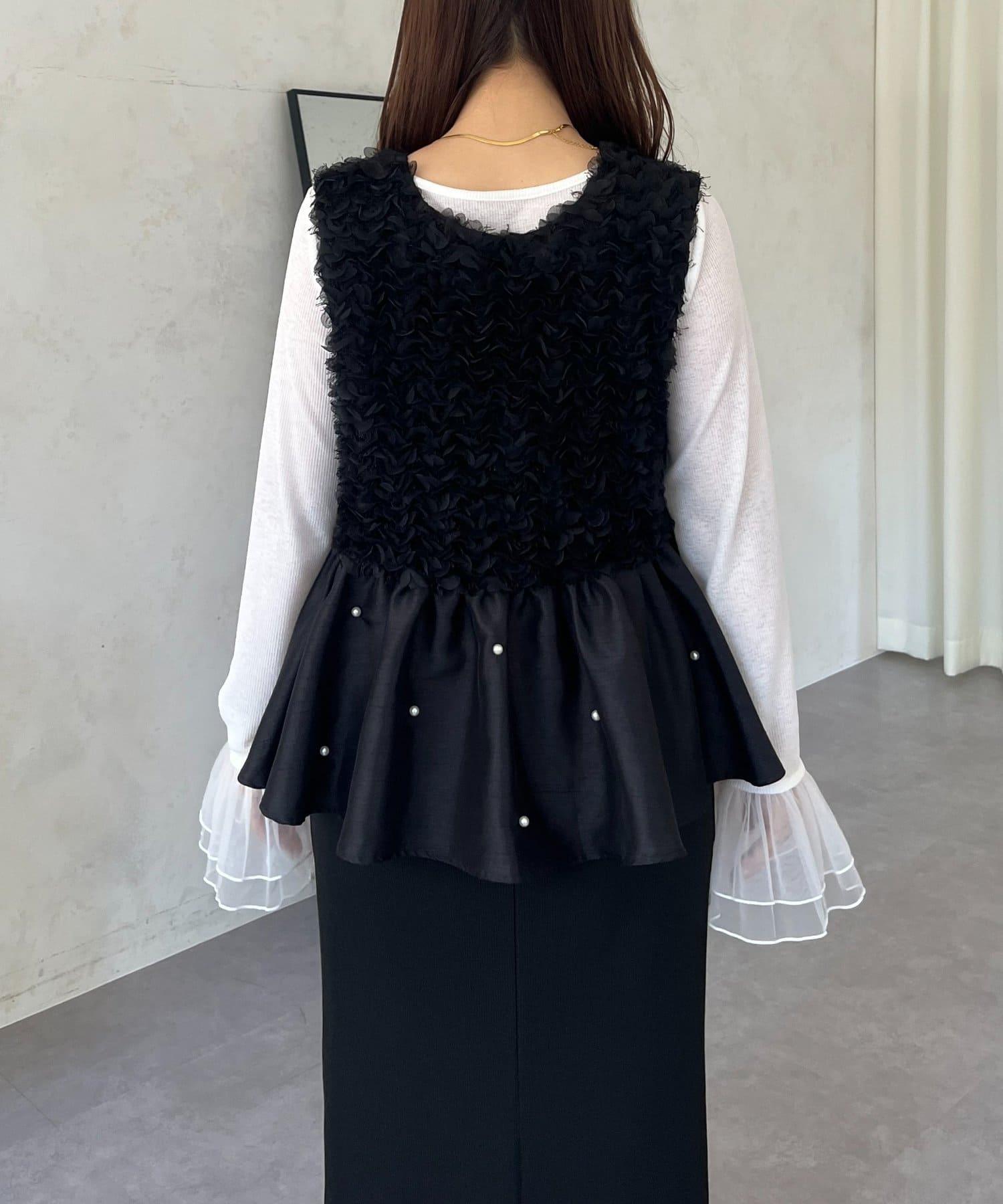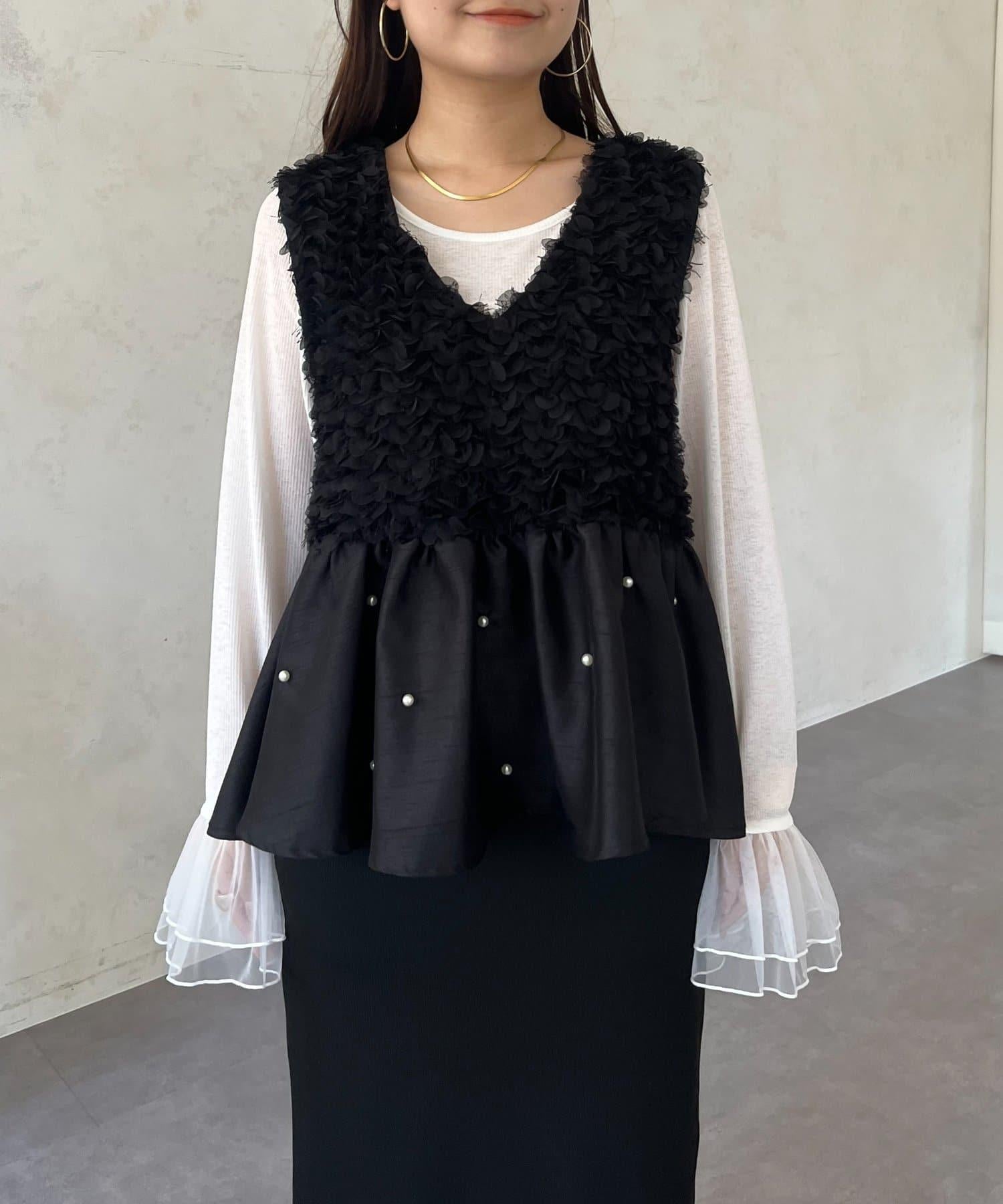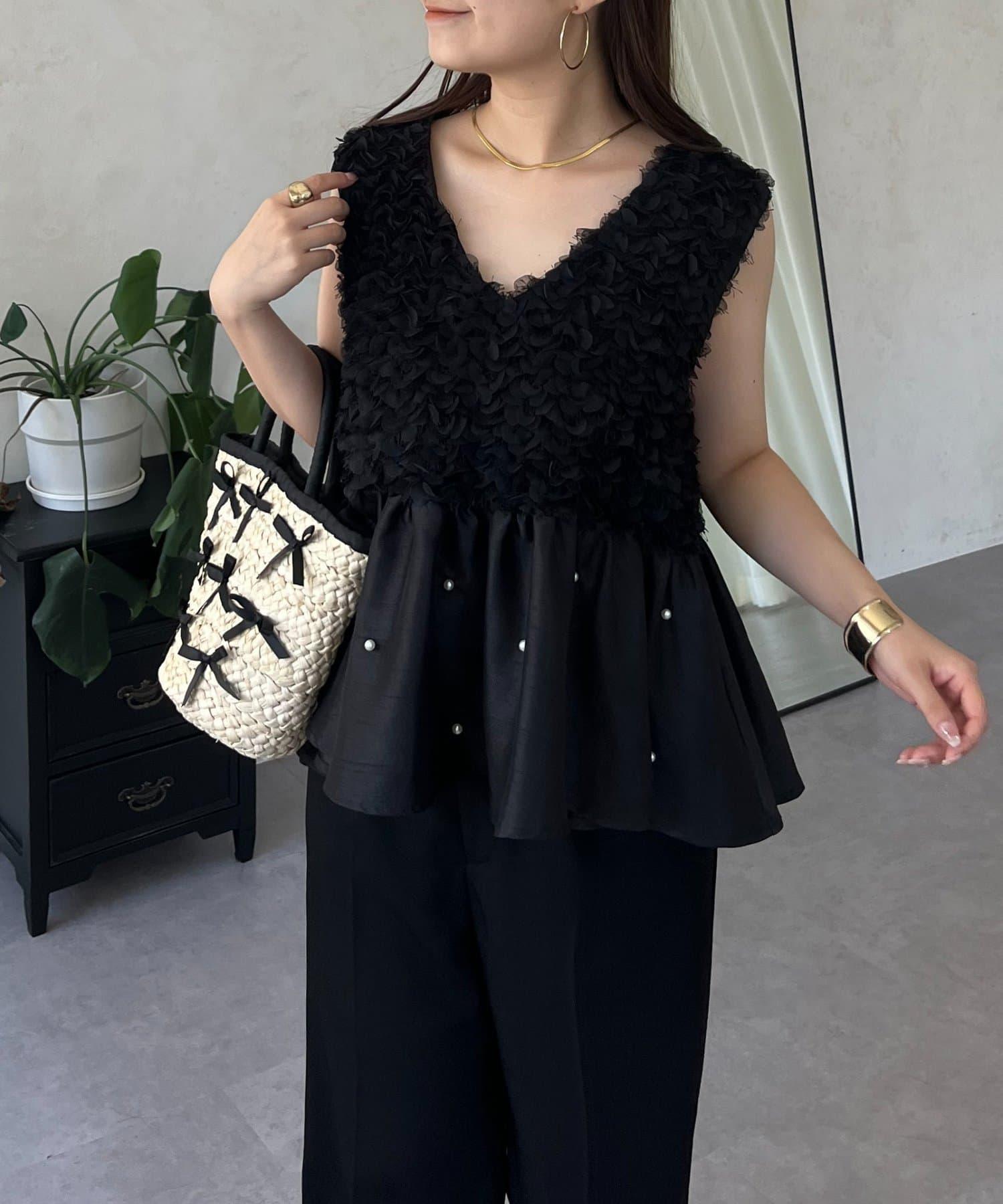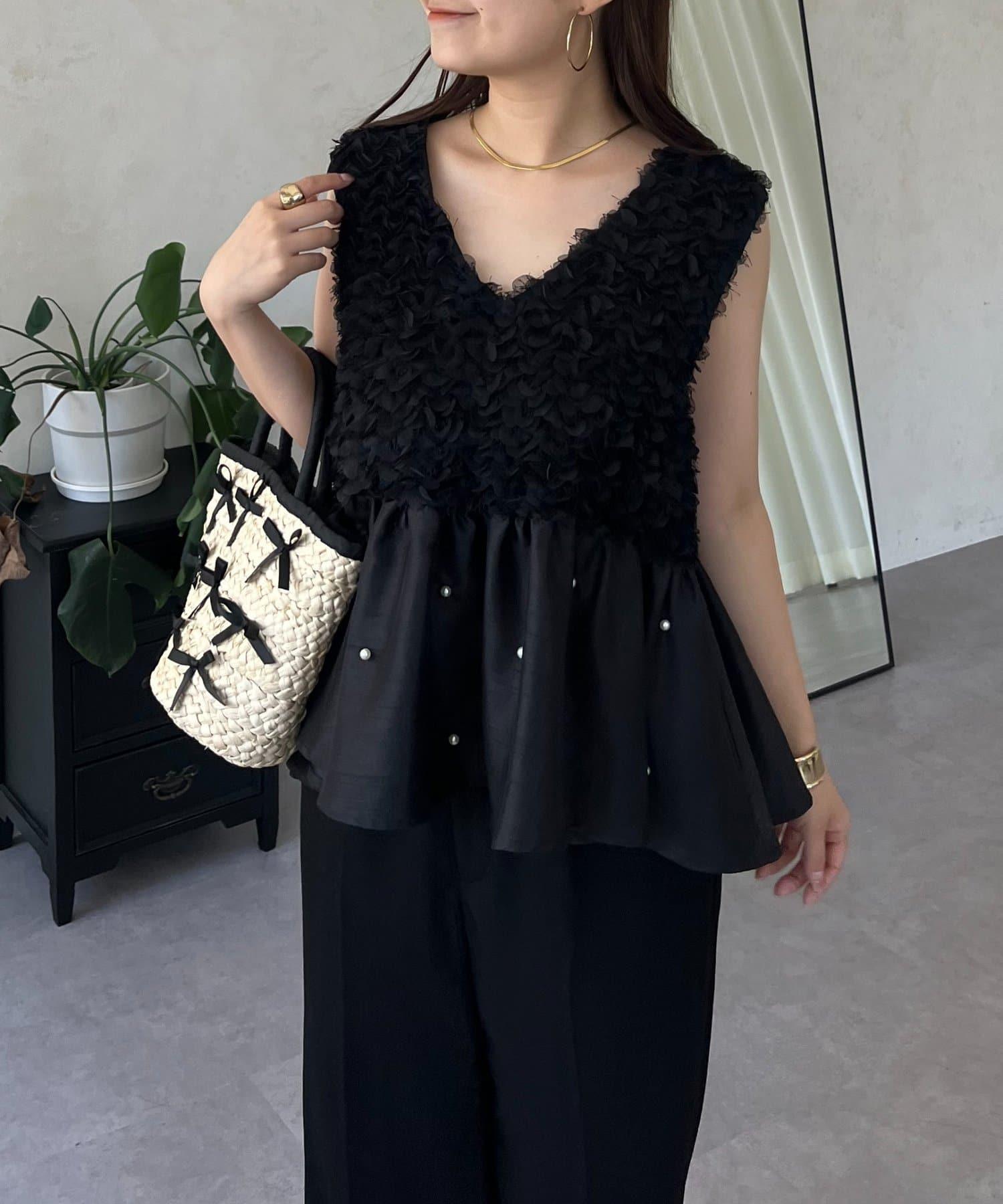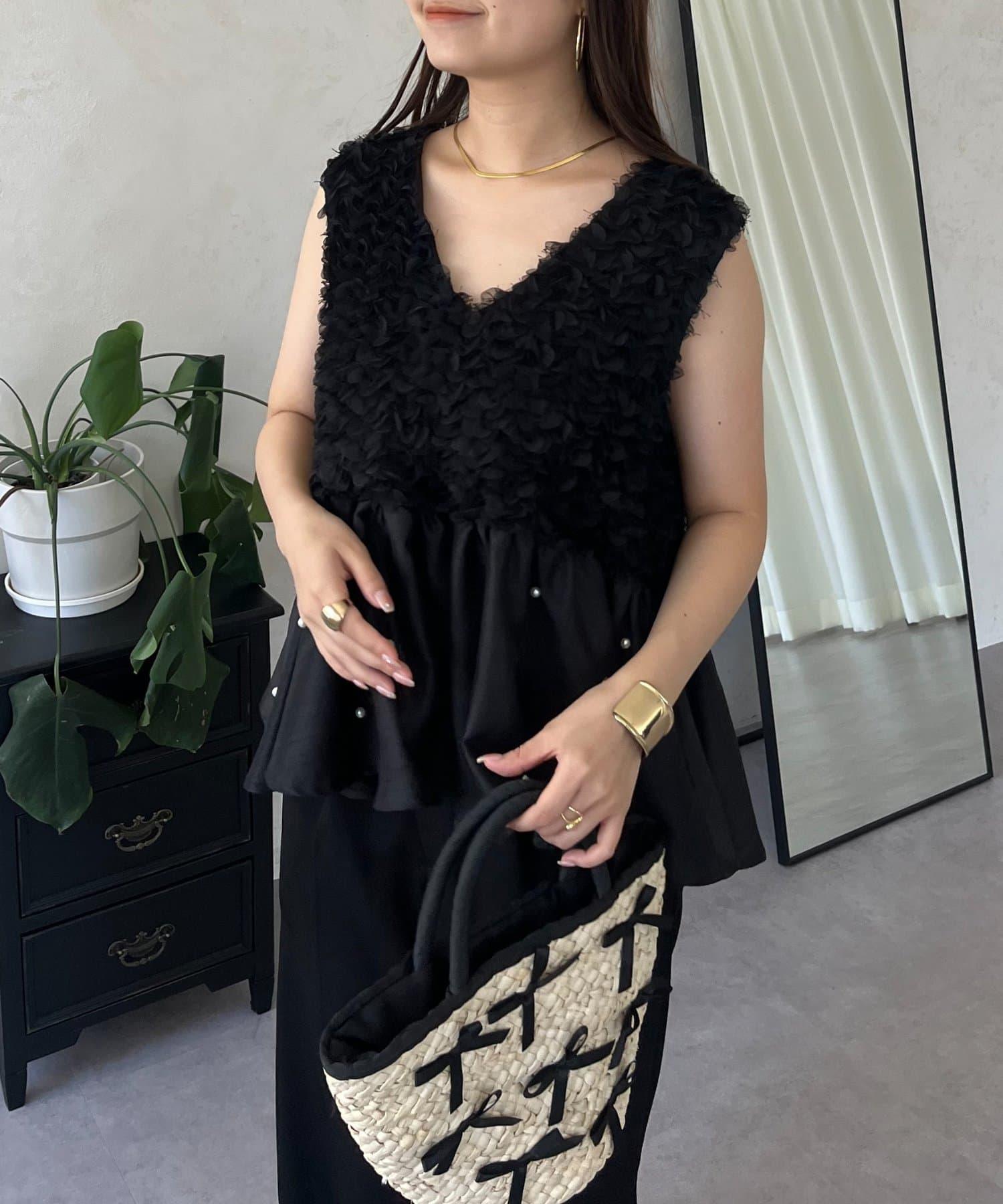 【總選舉參賽單品】花卉圖案珍珠荷葉邊背心