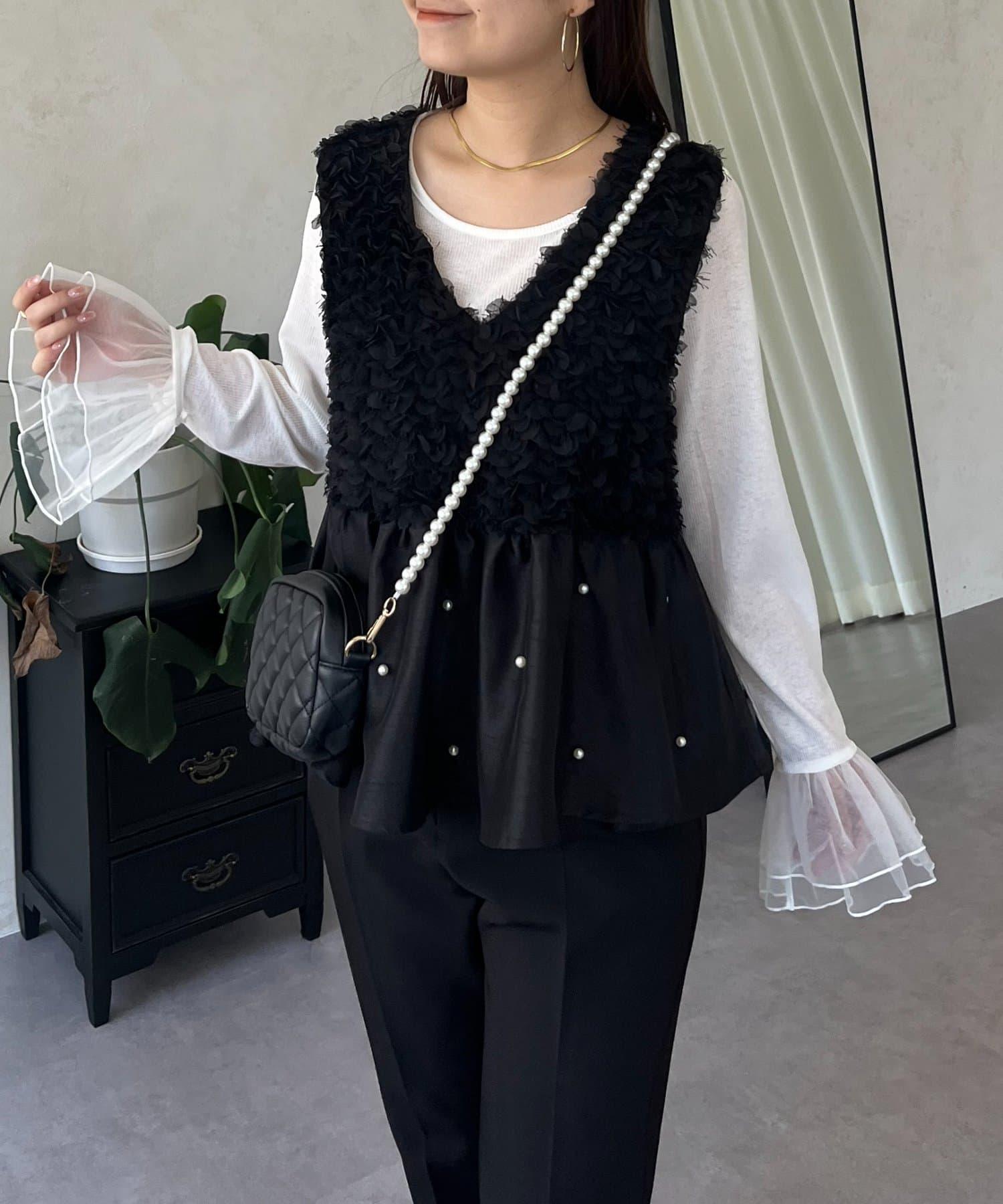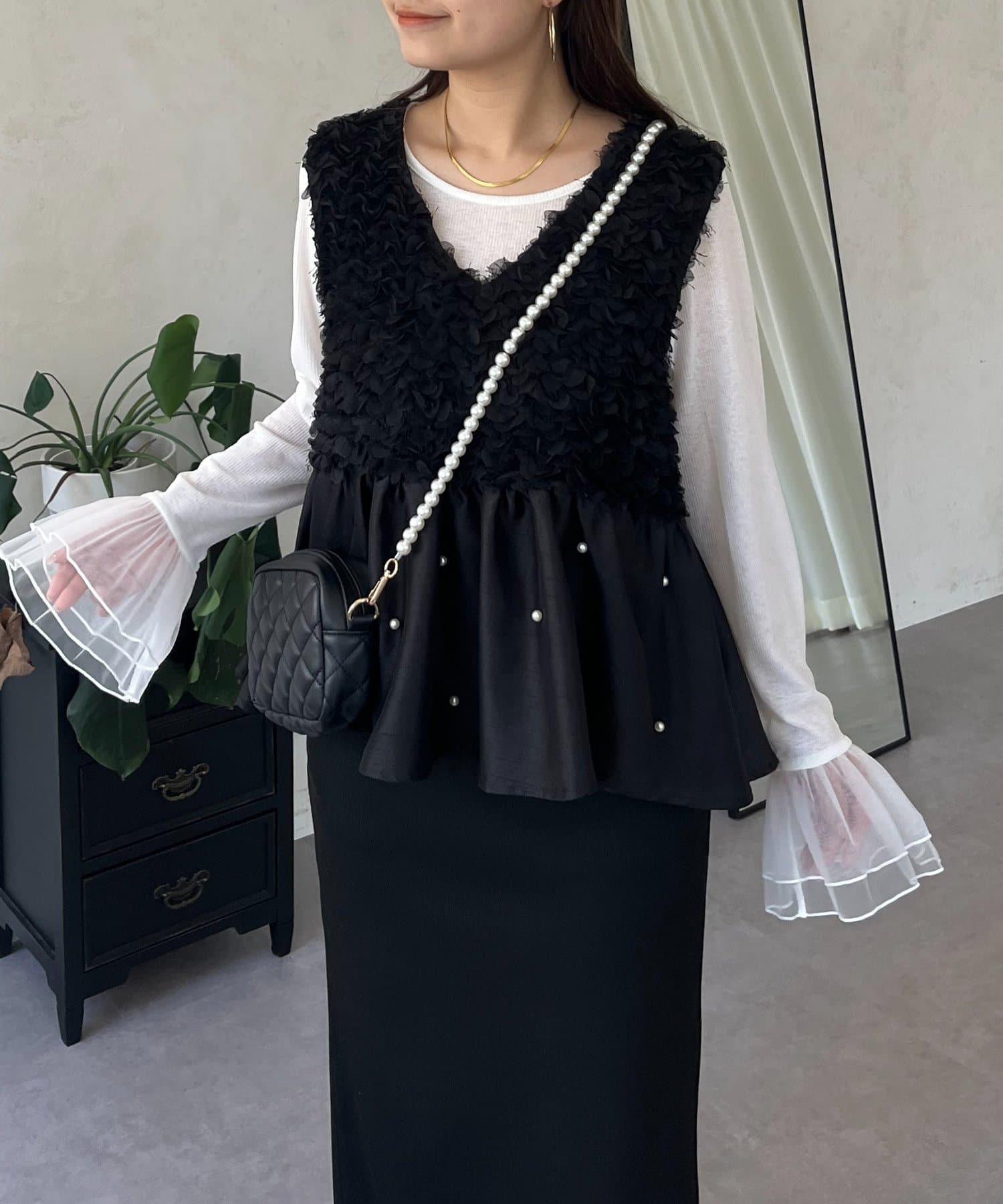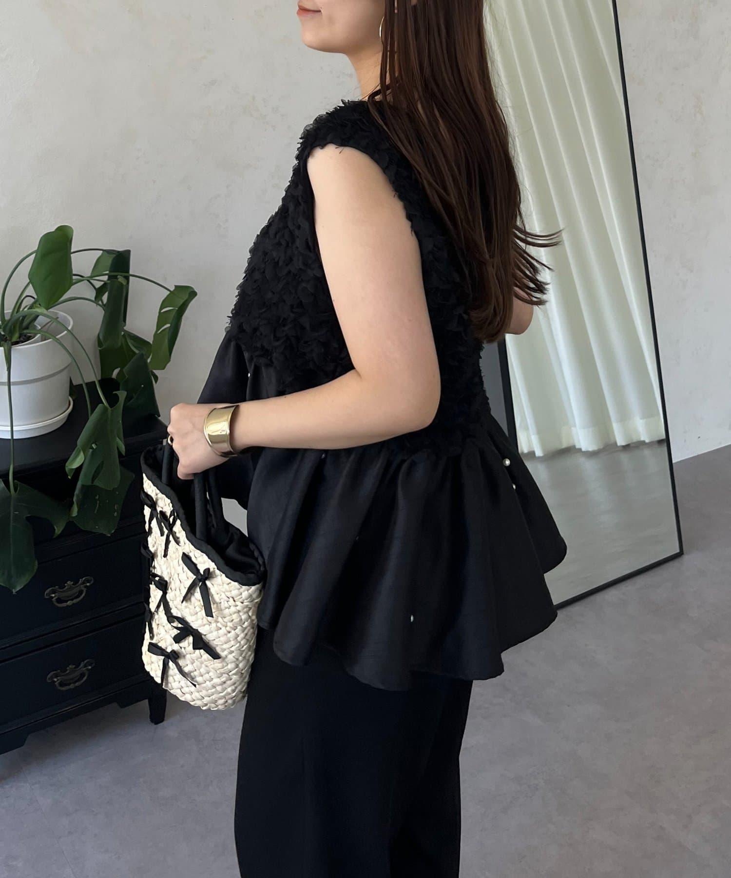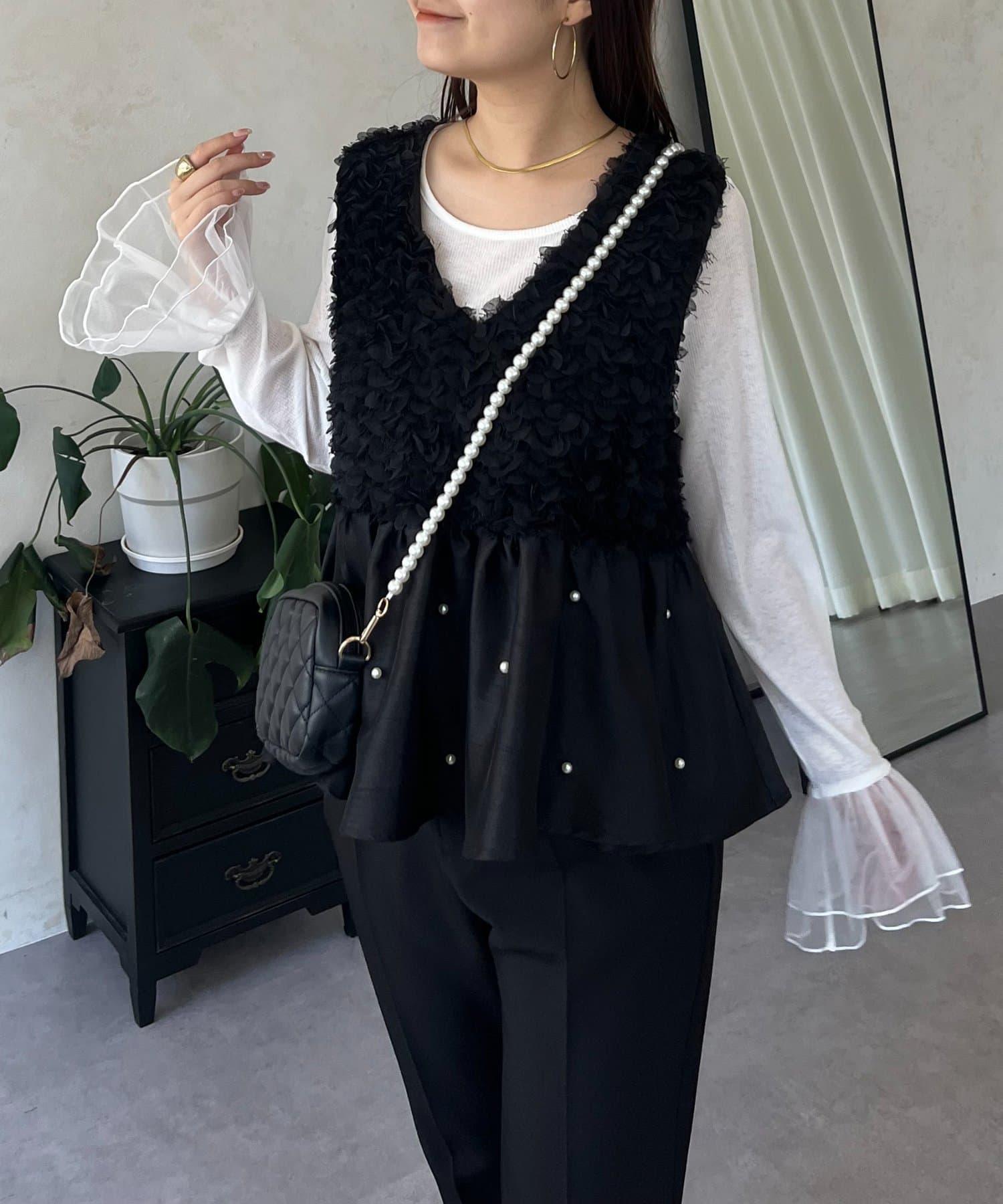 【總選舉參賽單品】花卉圖案珍珠荷葉邊背心