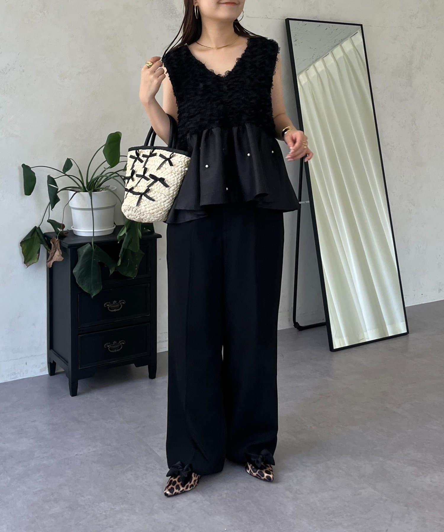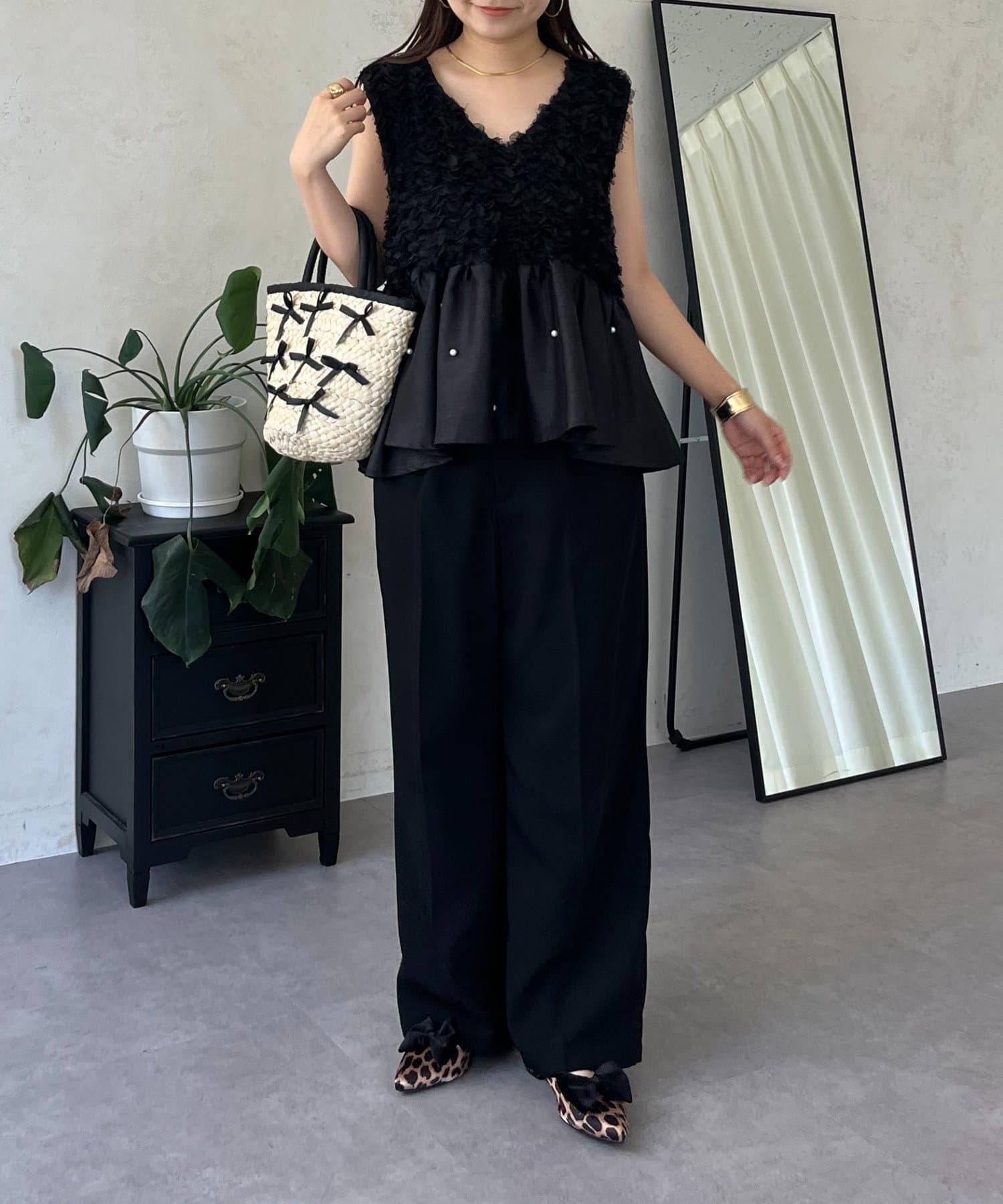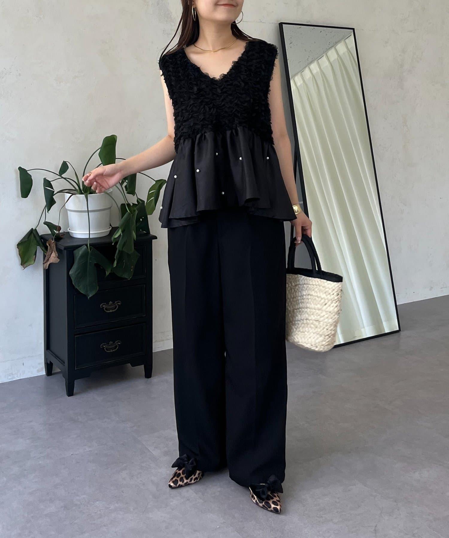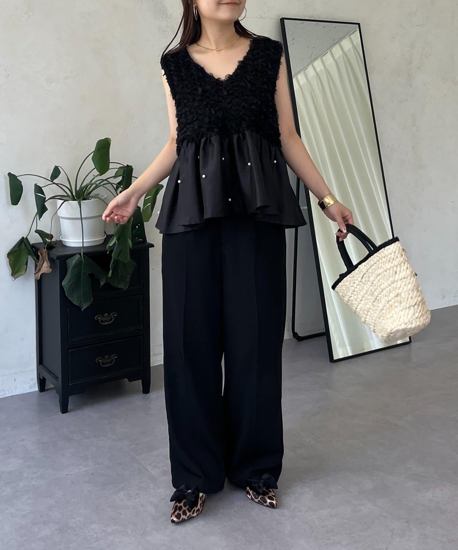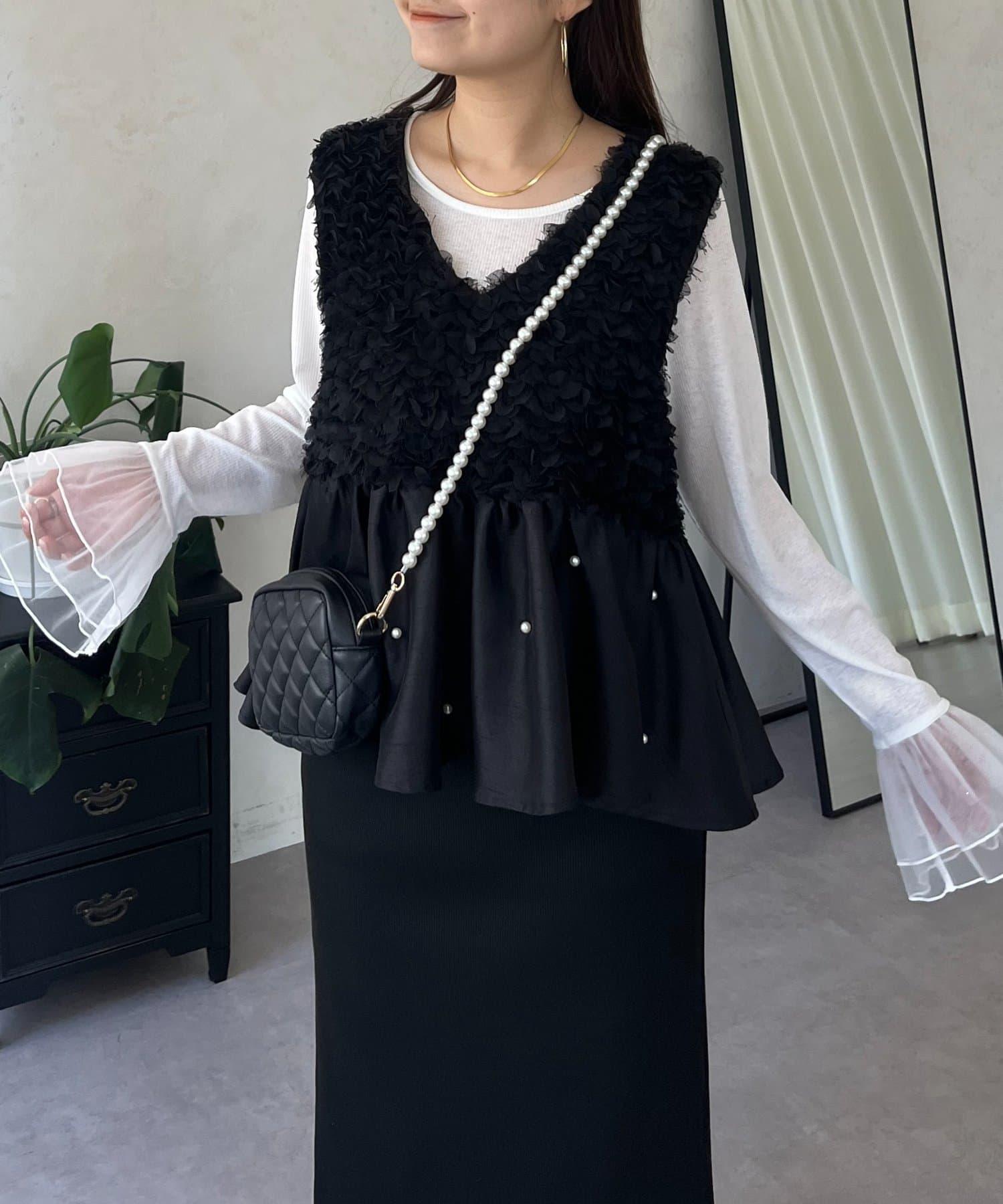 【總選舉參賽單品】花卉圖案珍珠荷葉邊背心
