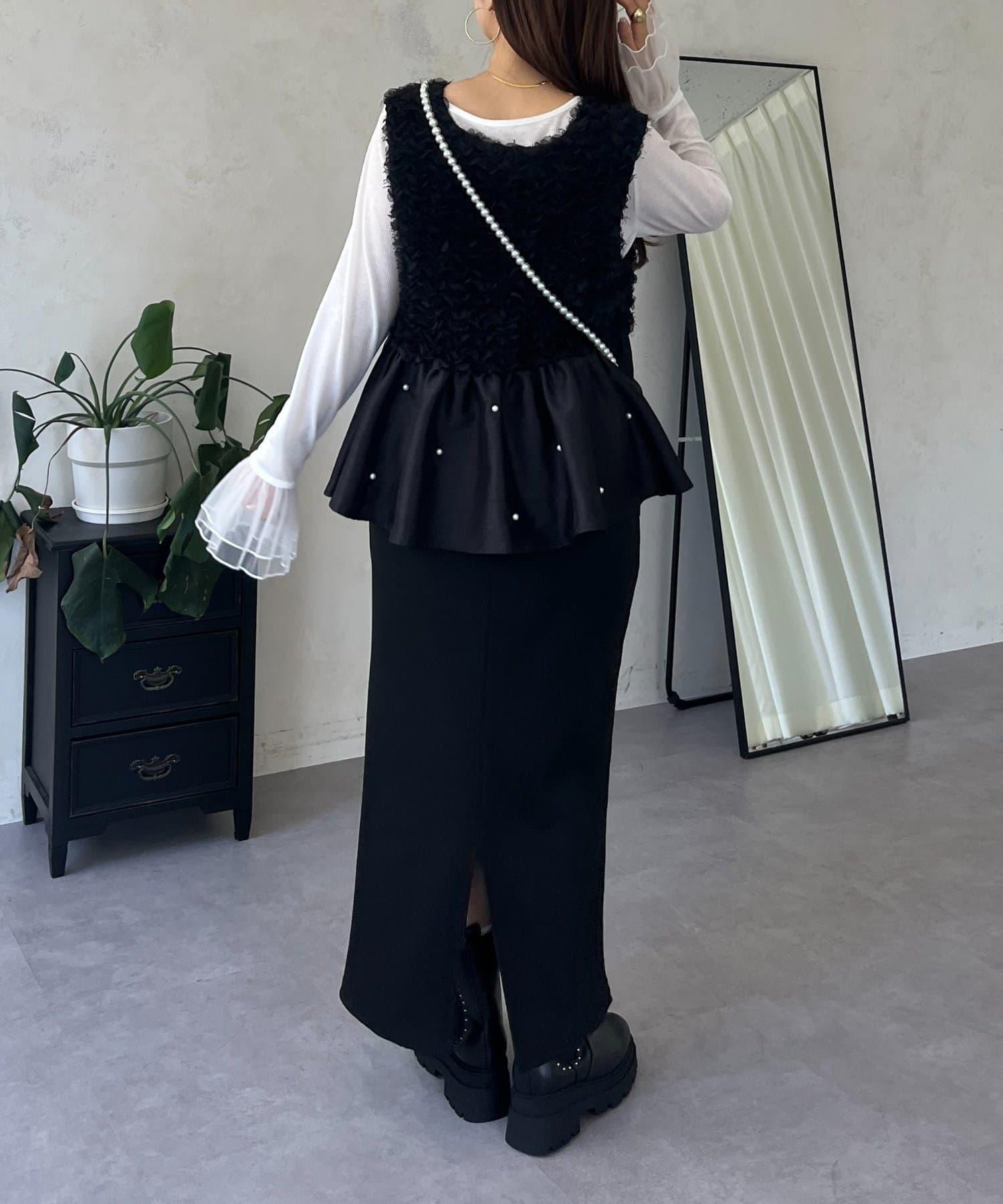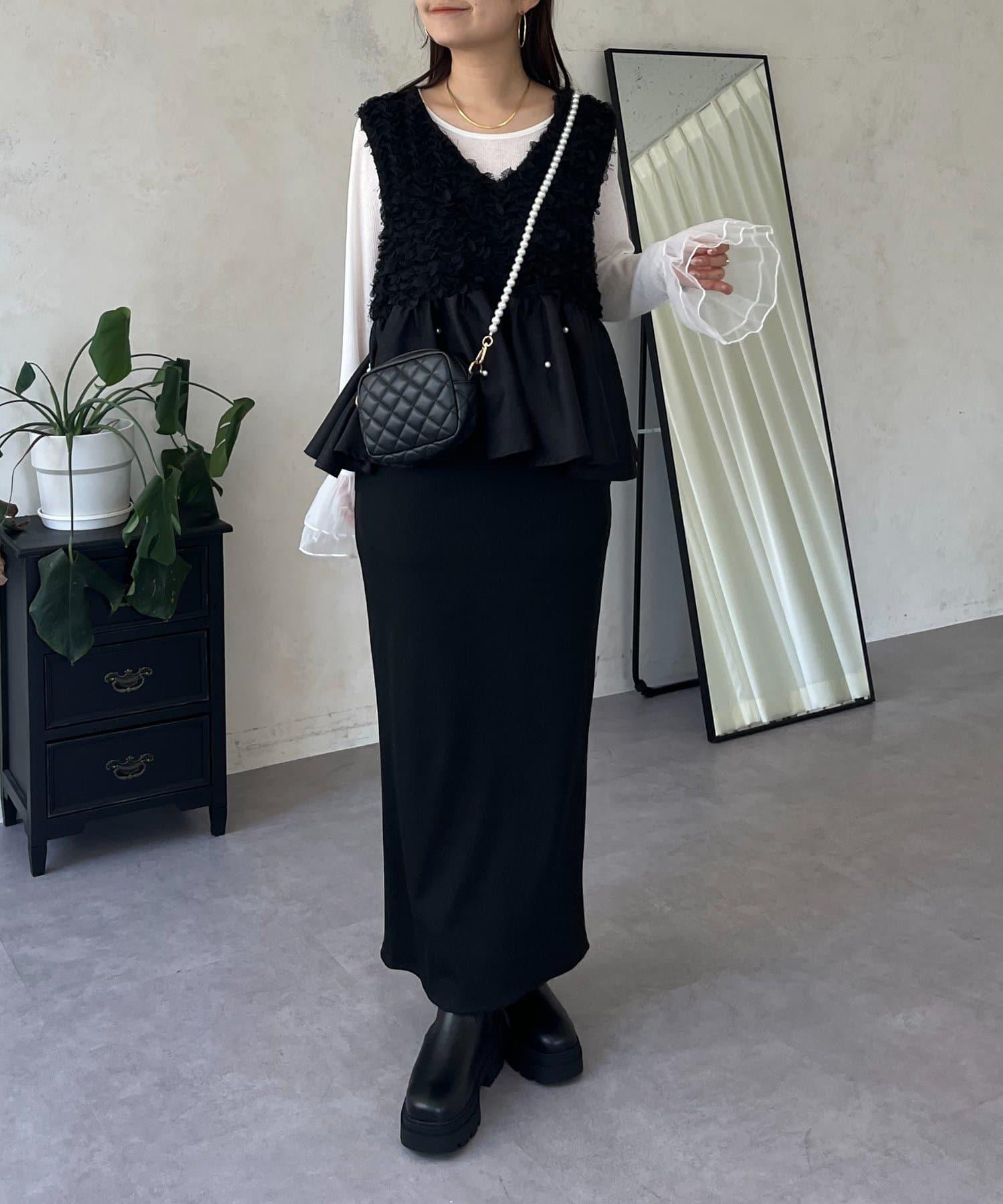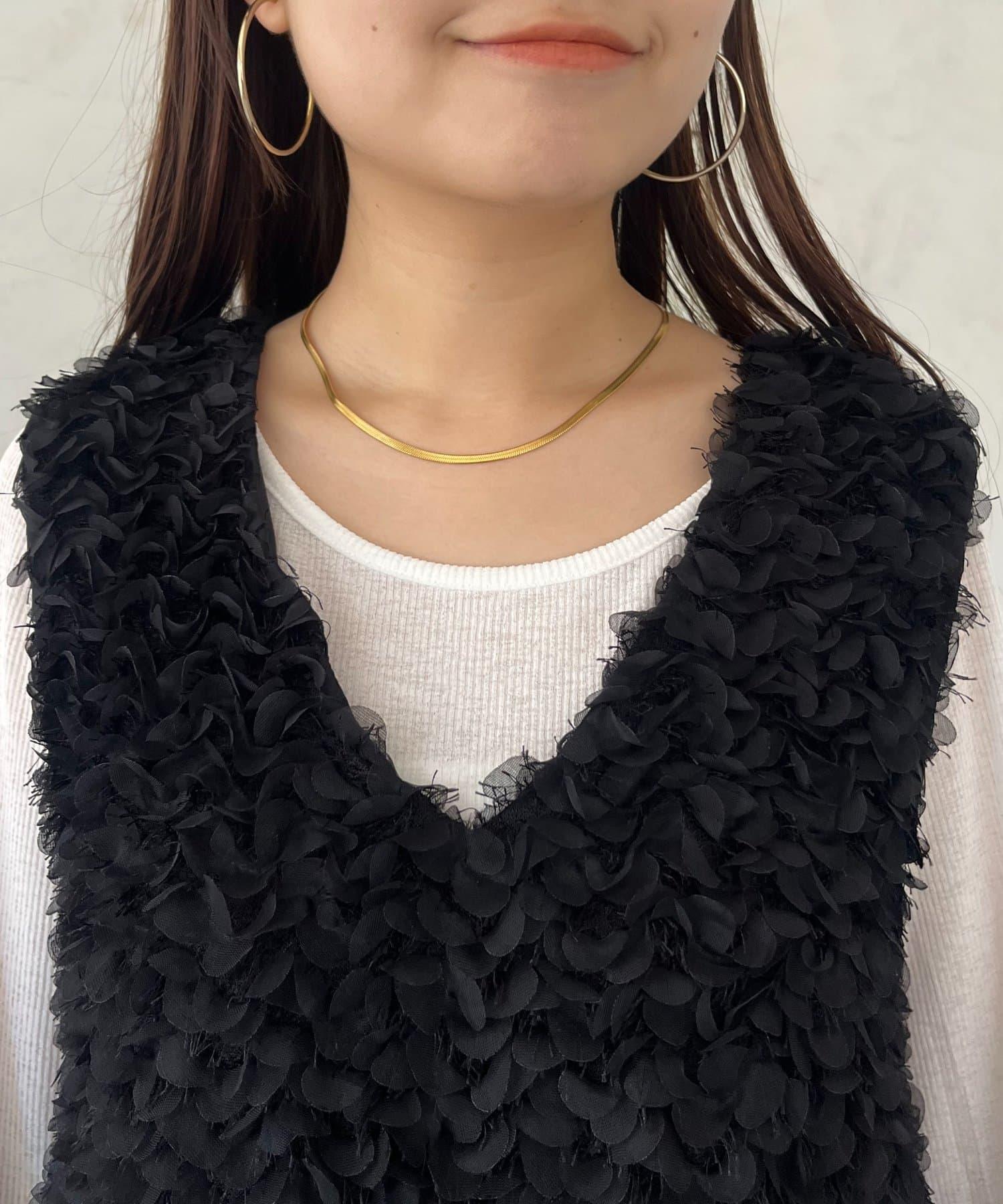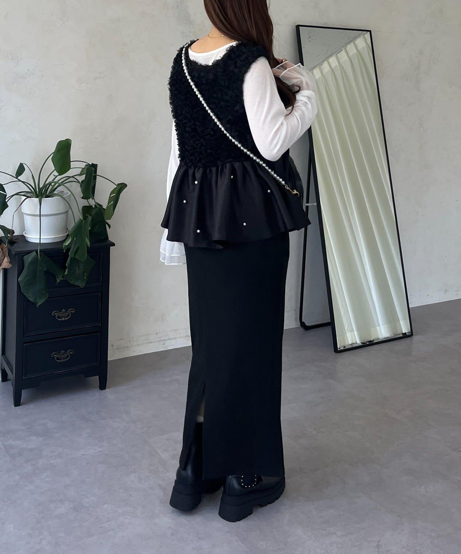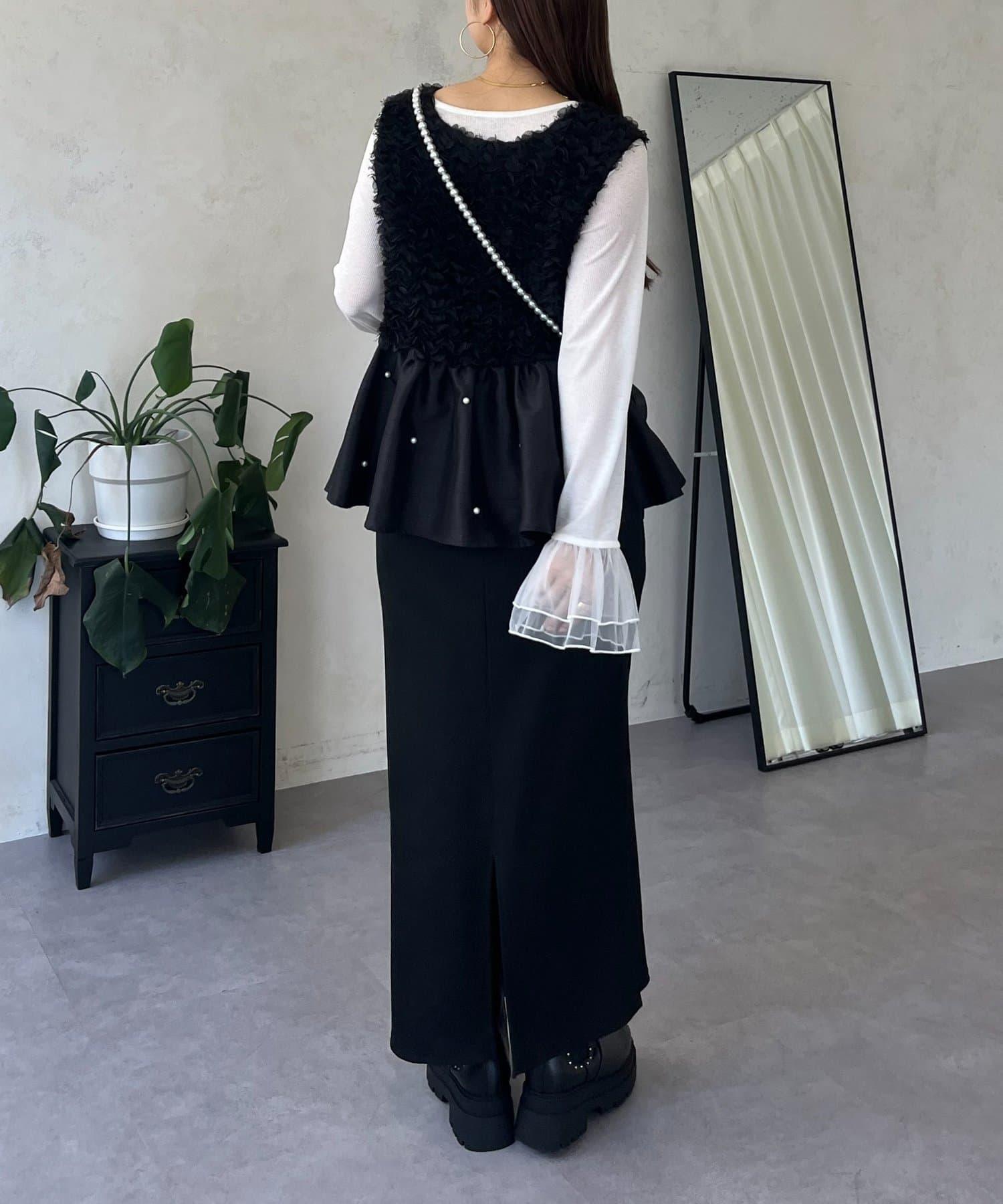 【總選舉參賽單品】花卉圖案珍珠荷葉邊背心