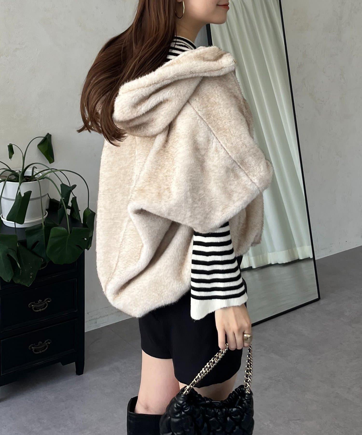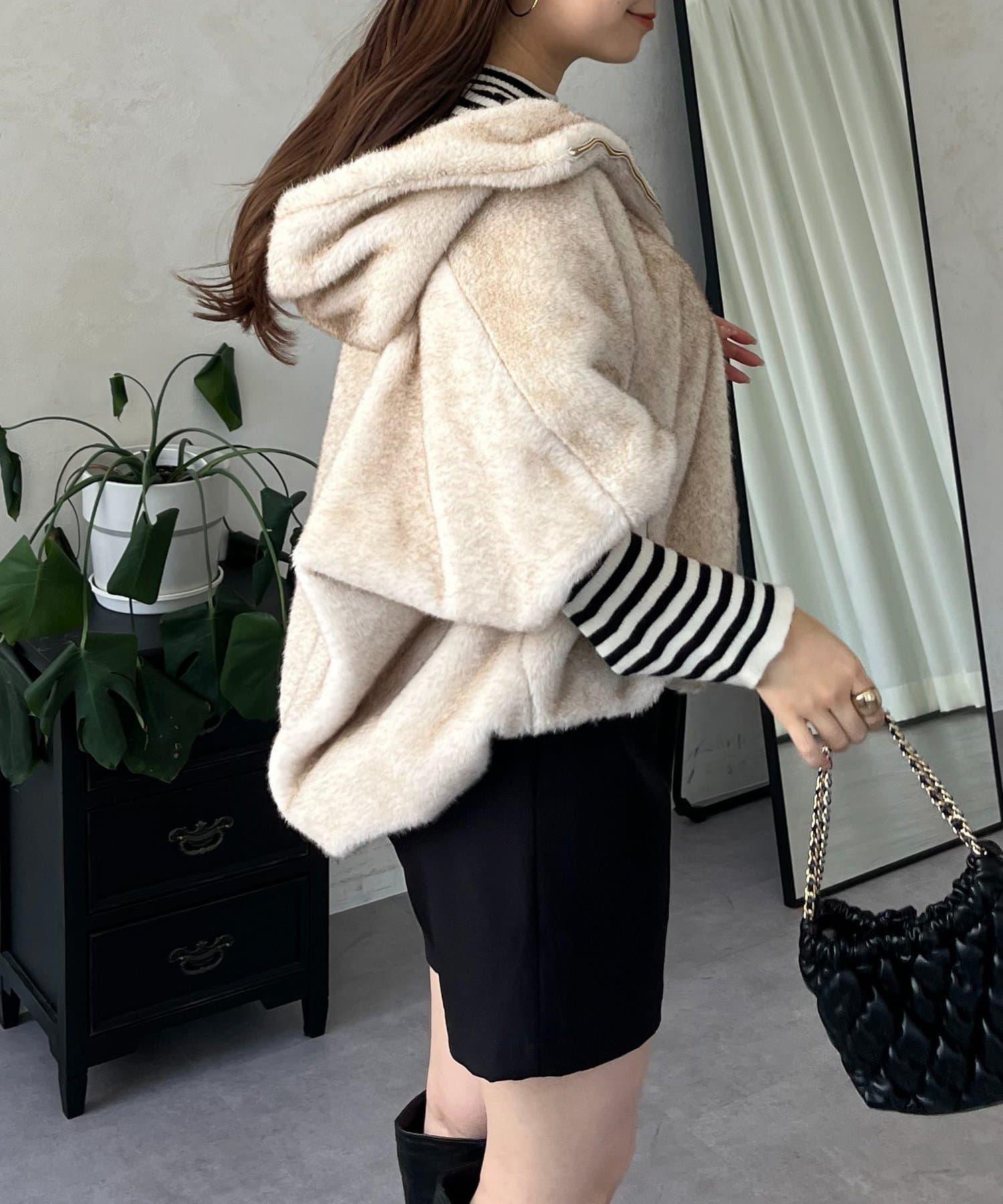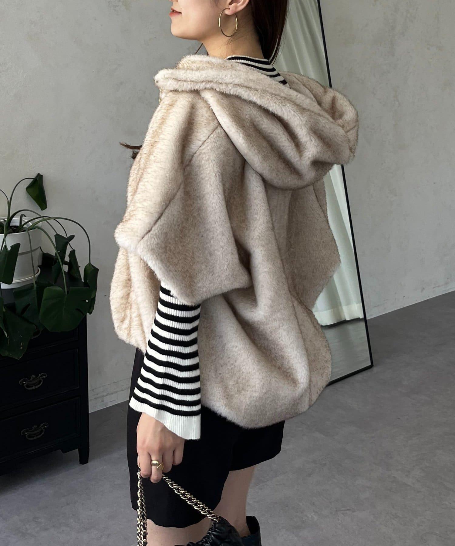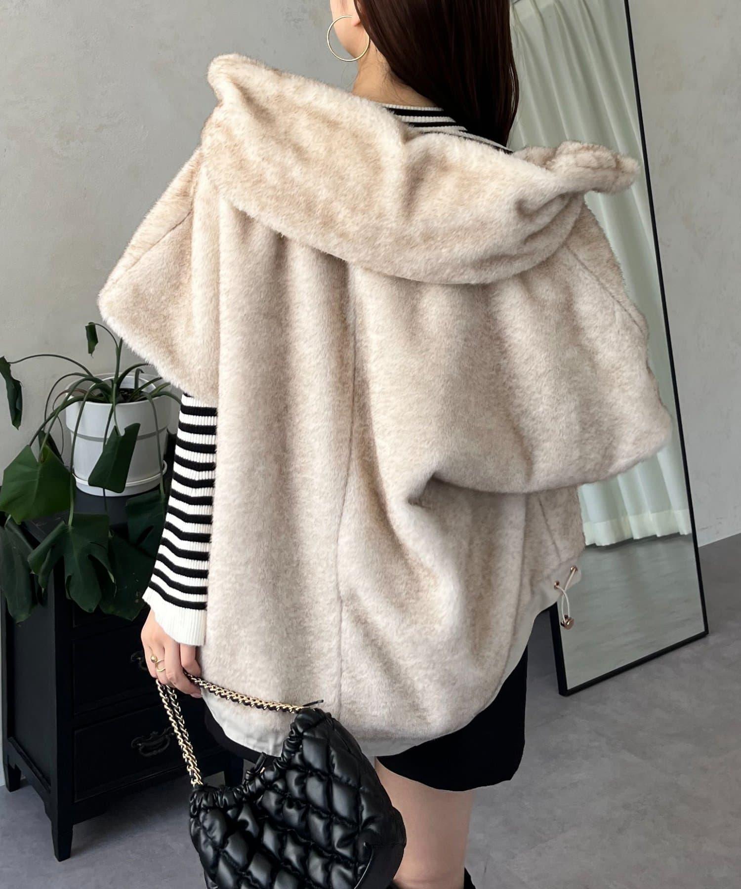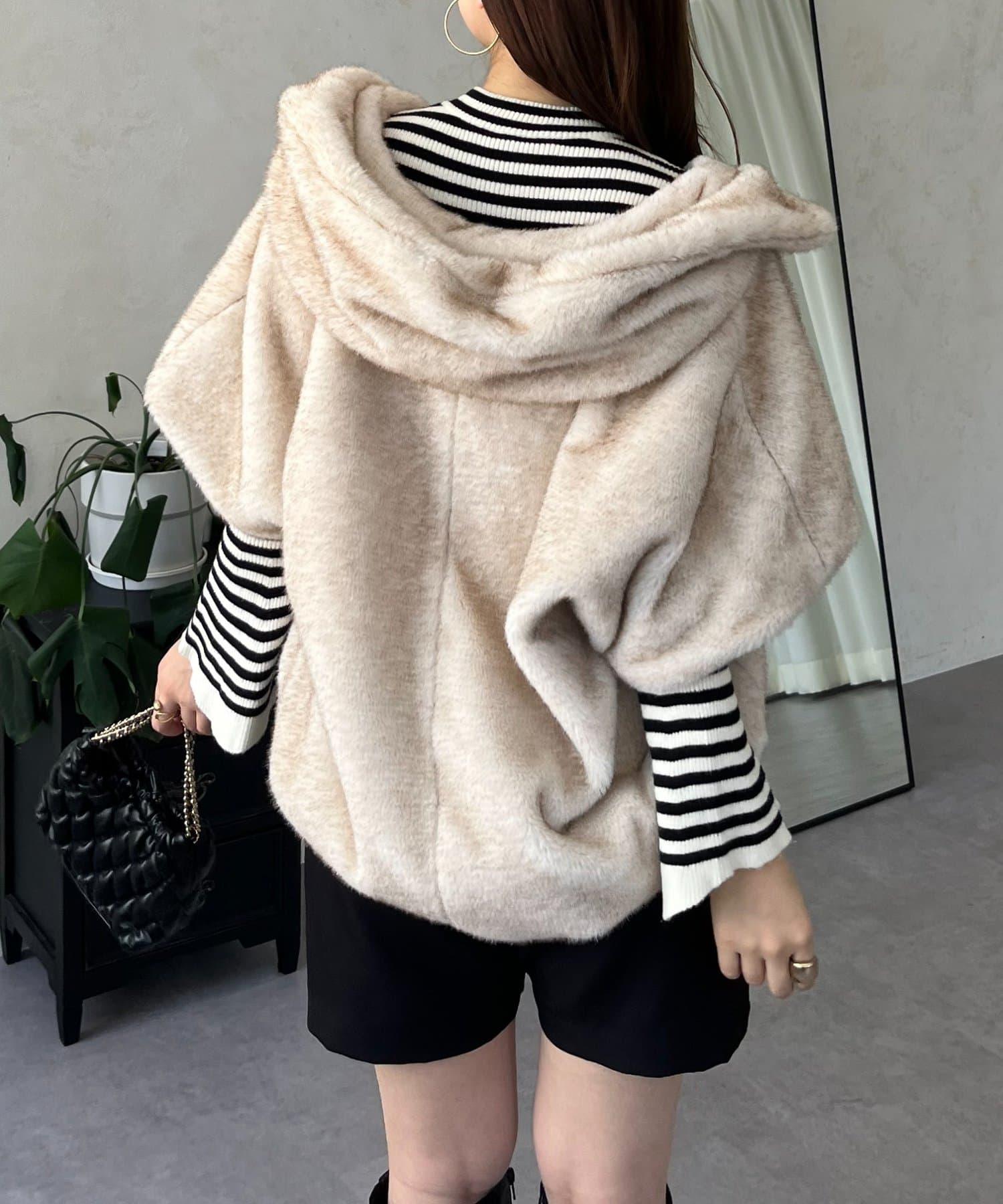 【總選舉參賽單品】貂絨風格連帽毛皮披肩
