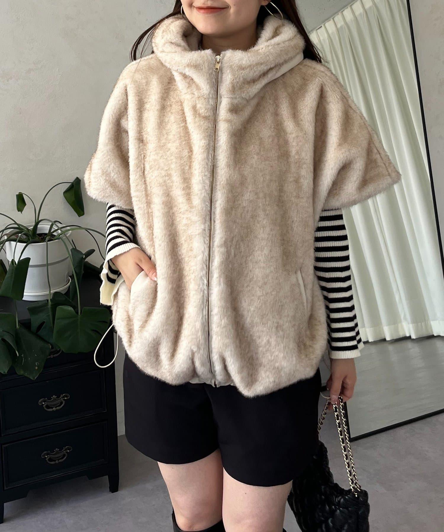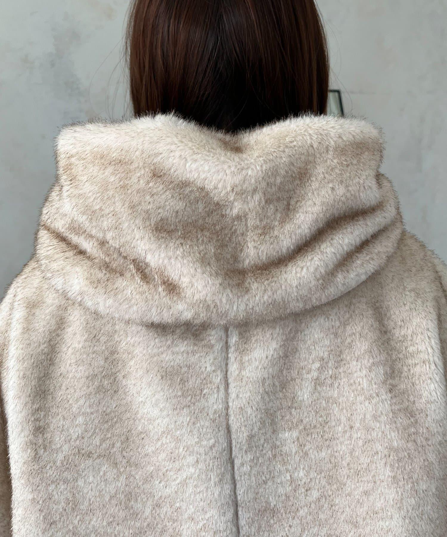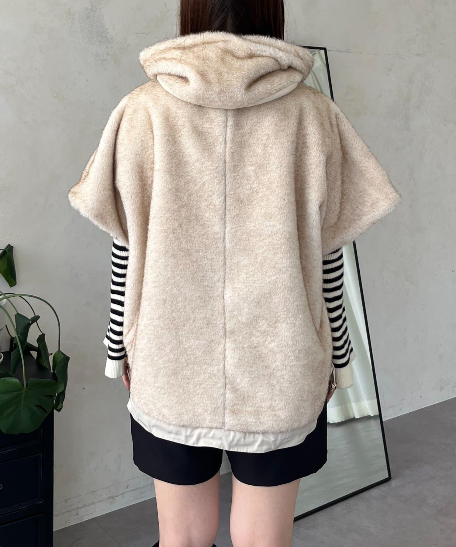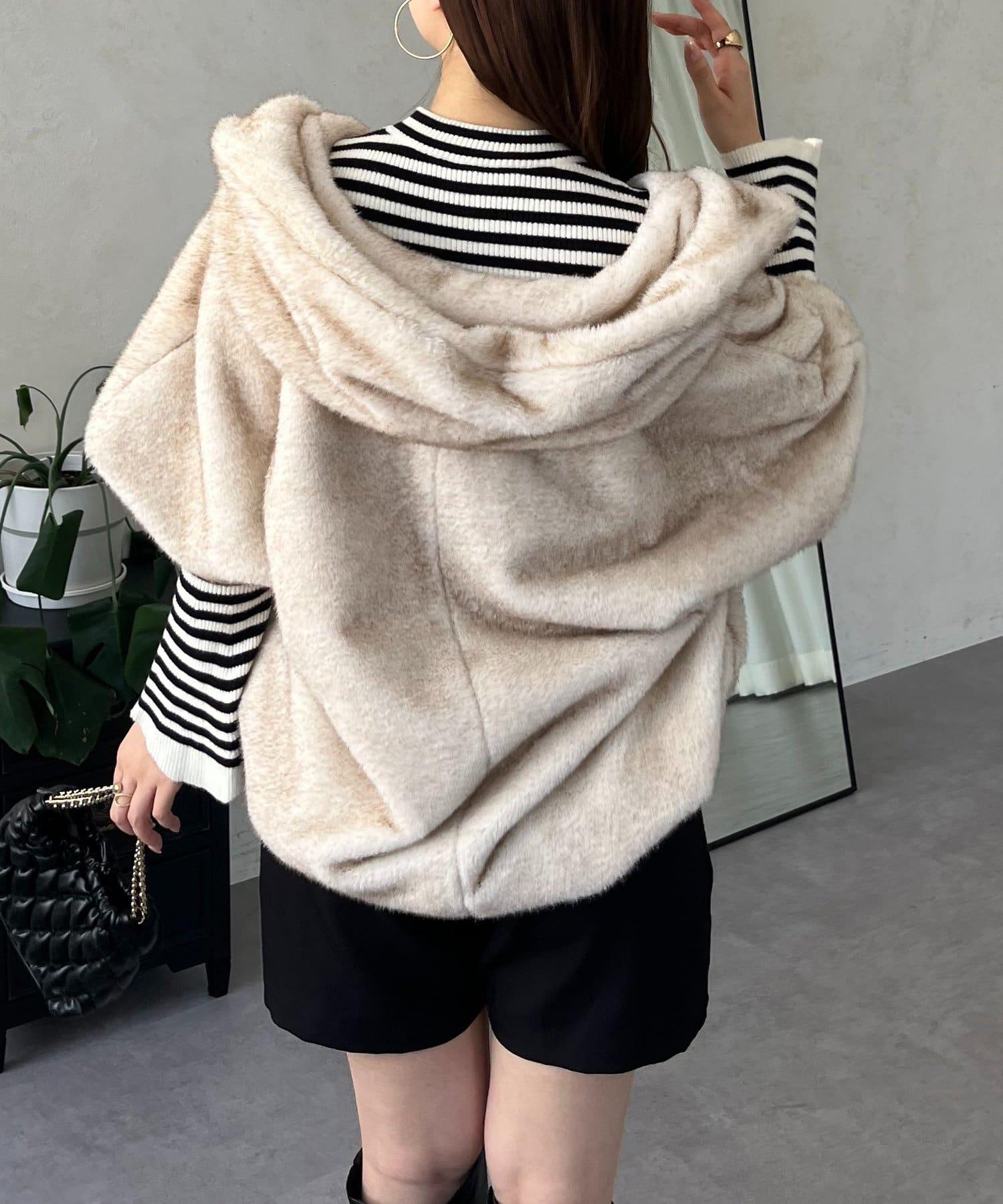 【總選舉參賽單品】貂絨風格連帽毛皮披肩