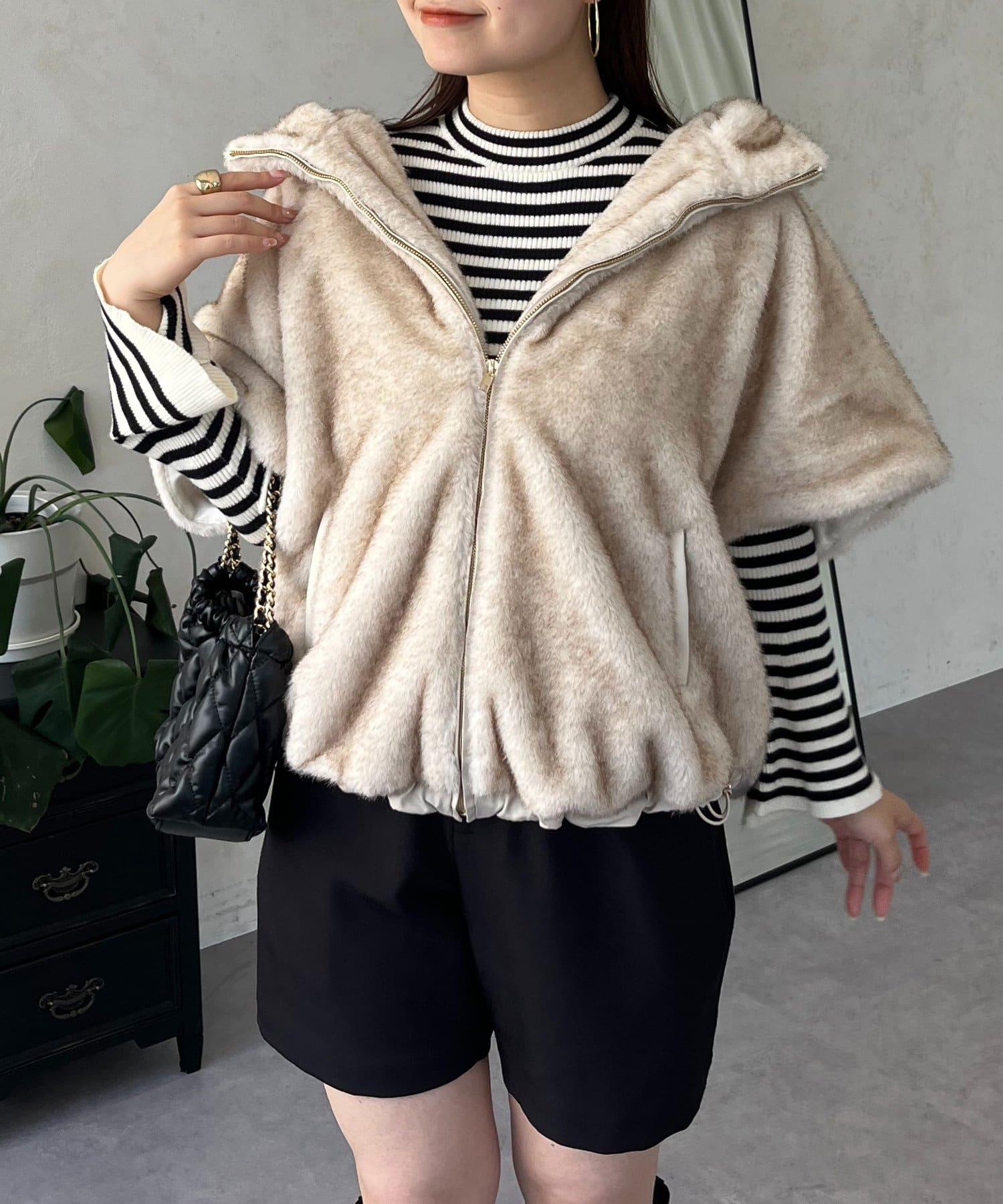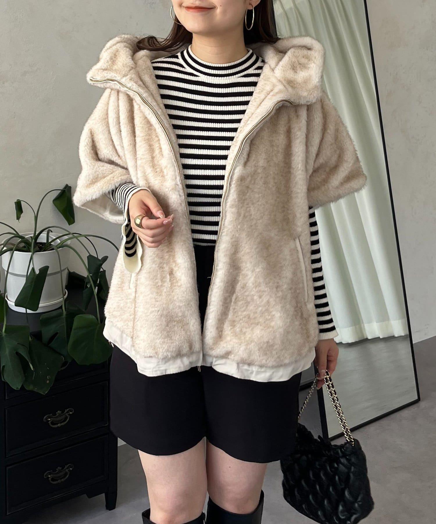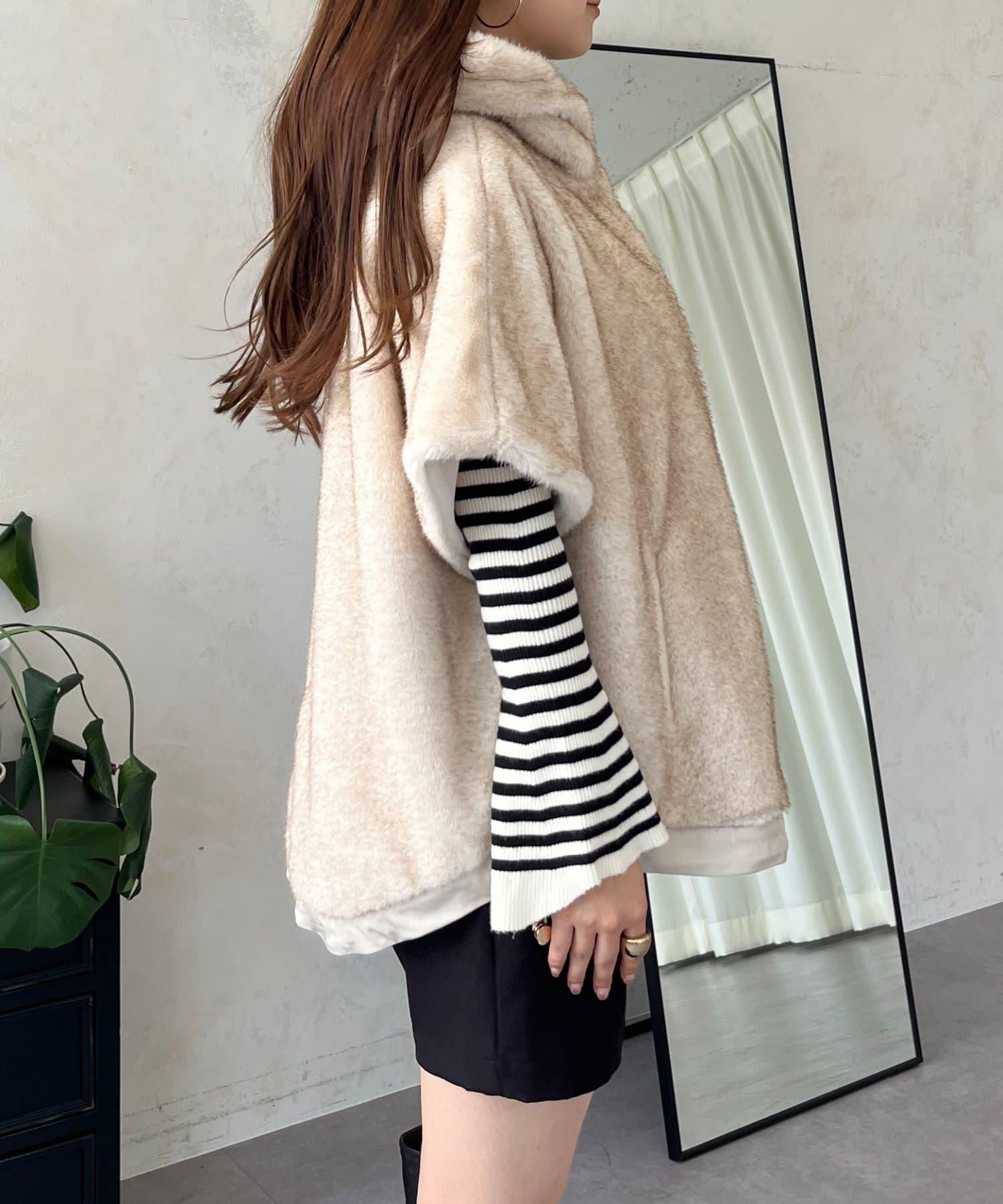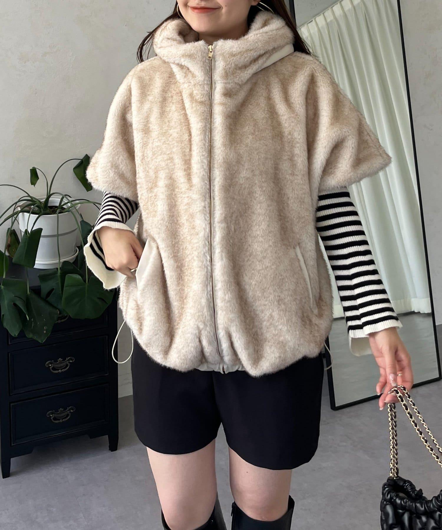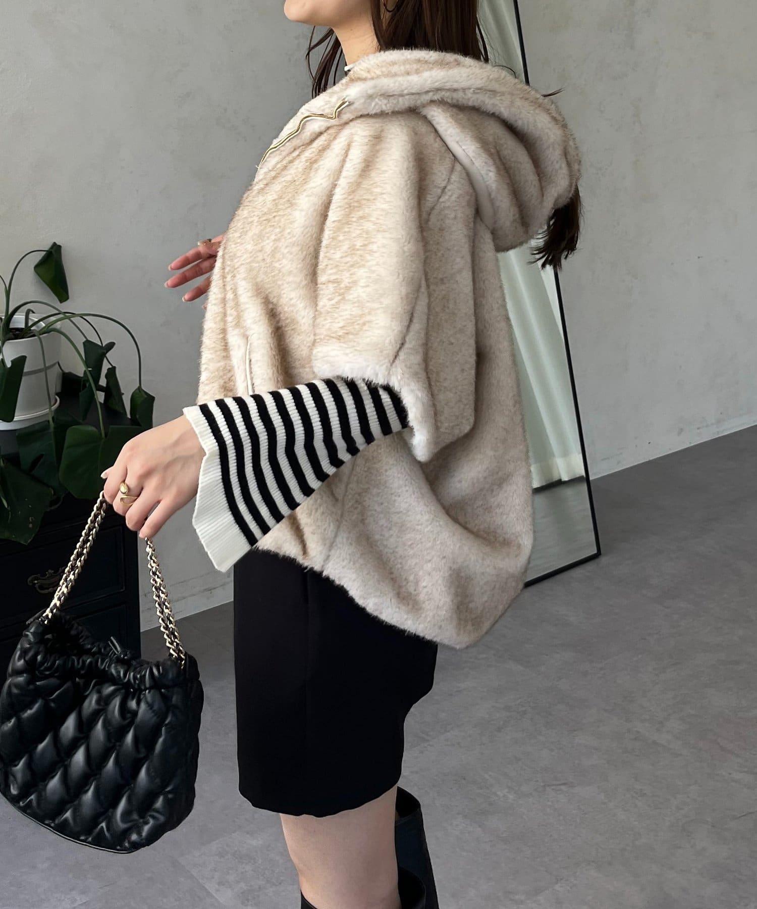 【總選舉參賽單品】貂絨風格連帽毛皮披肩