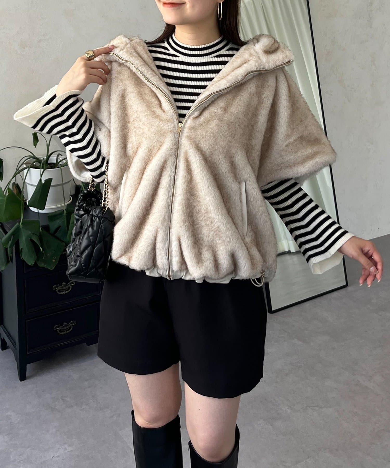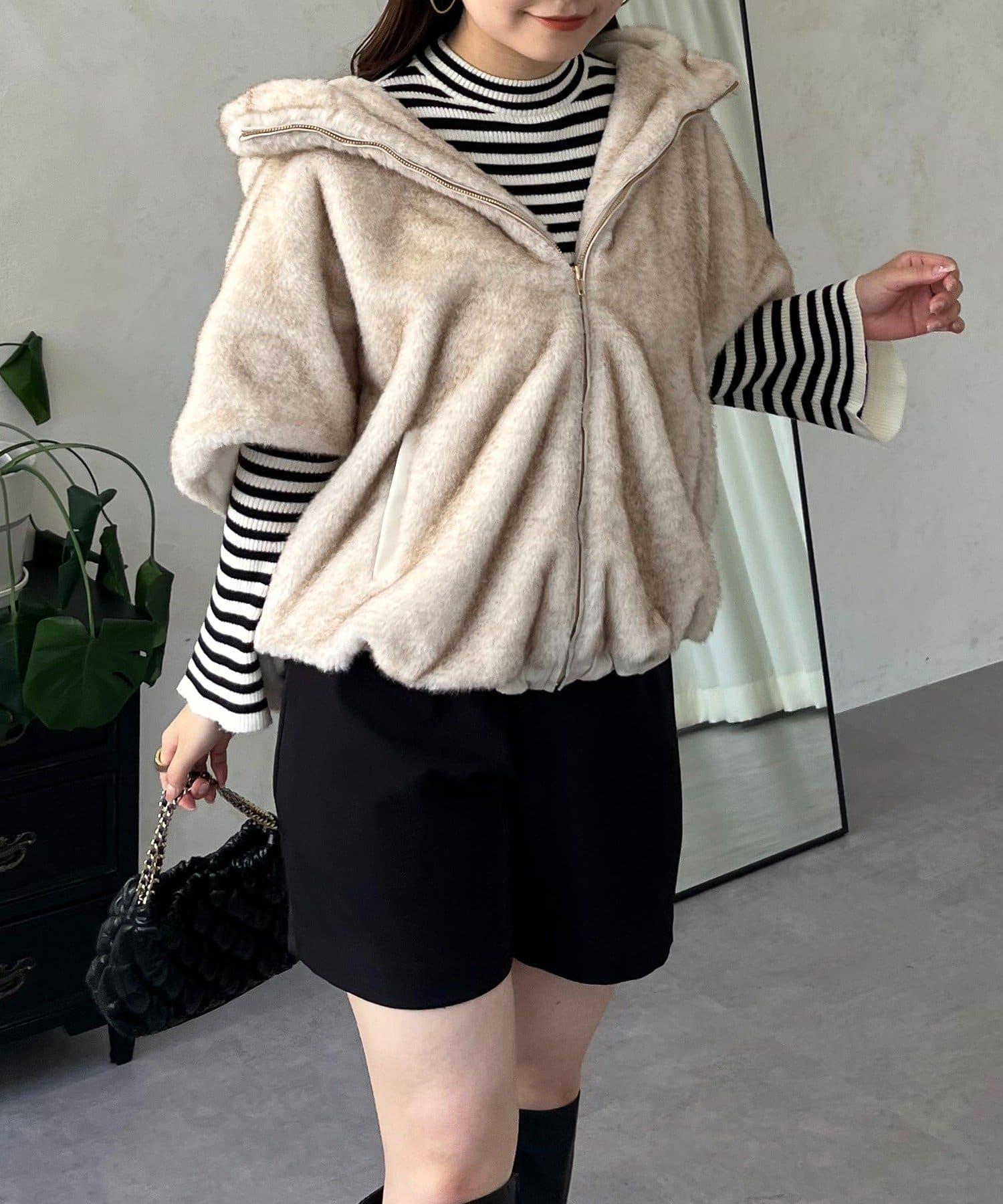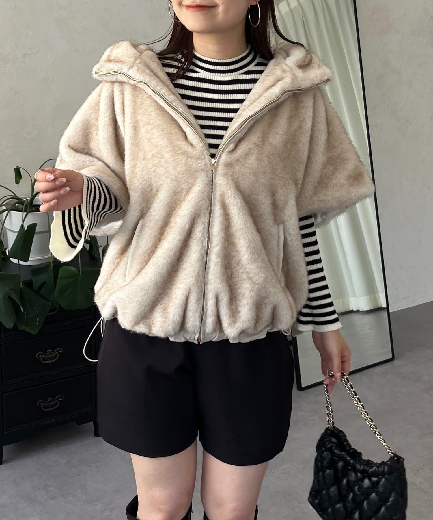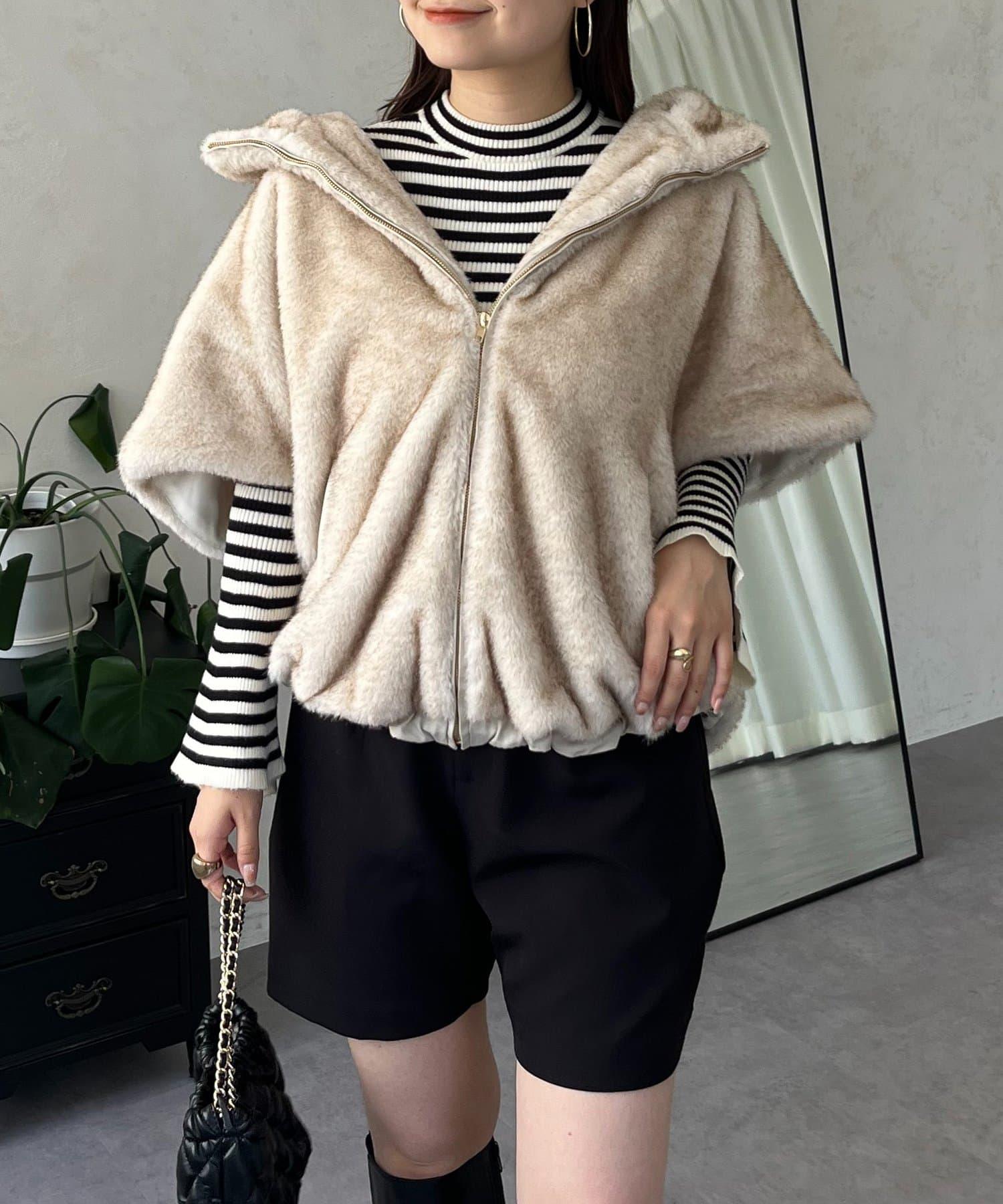 【總選舉參賽單品】貂絨風格連帽毛皮披肩