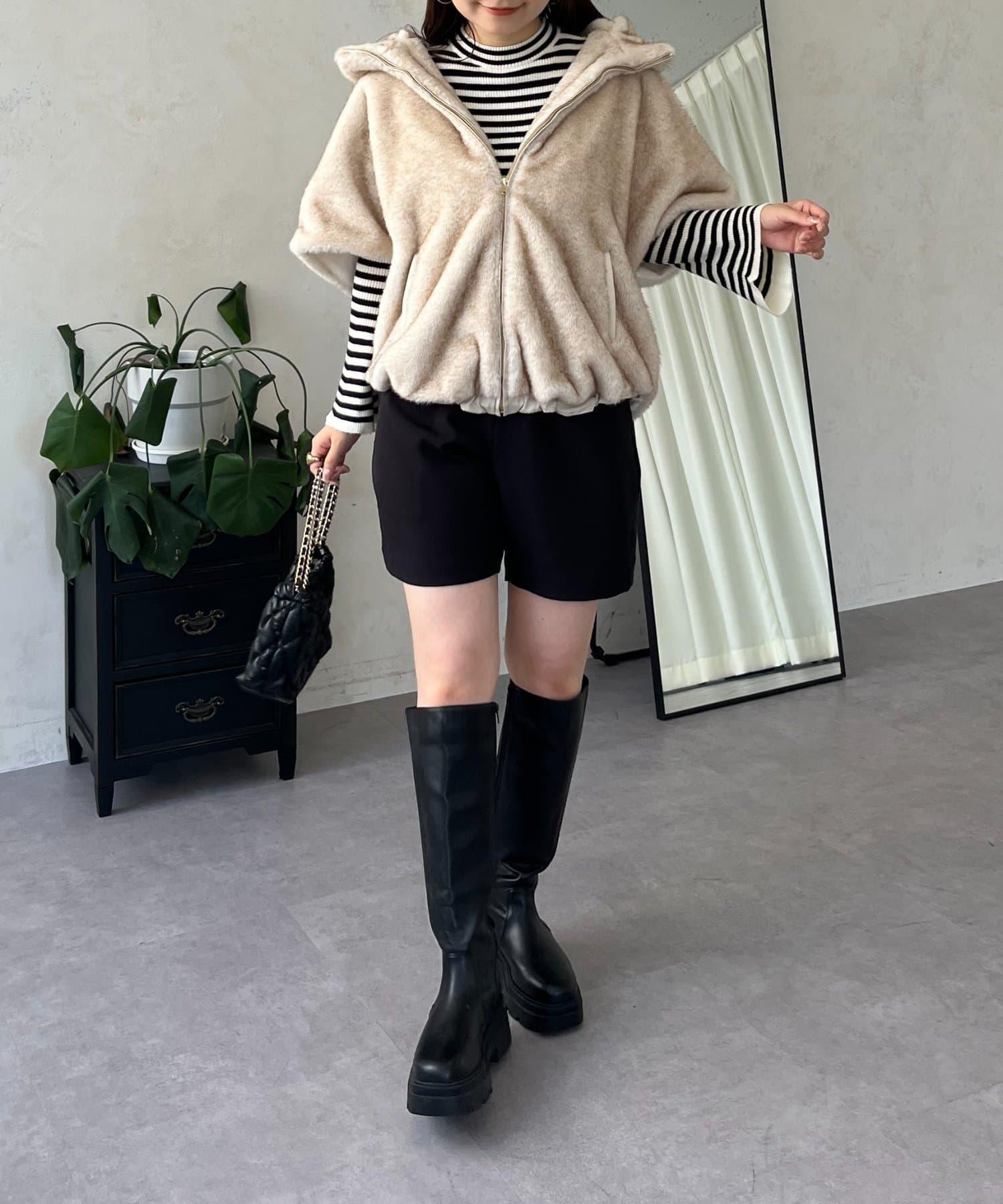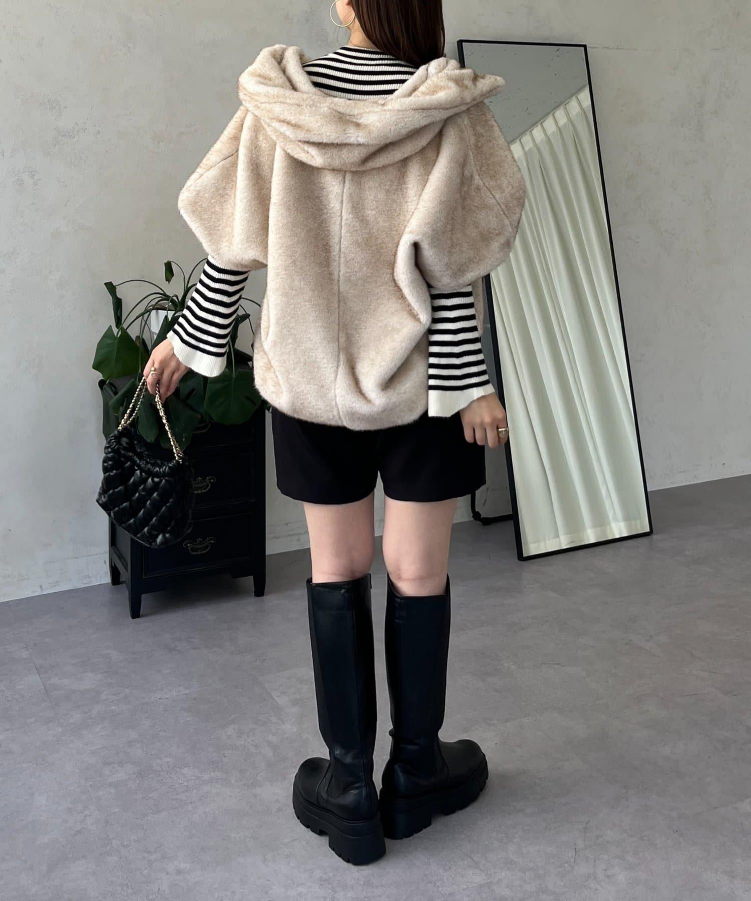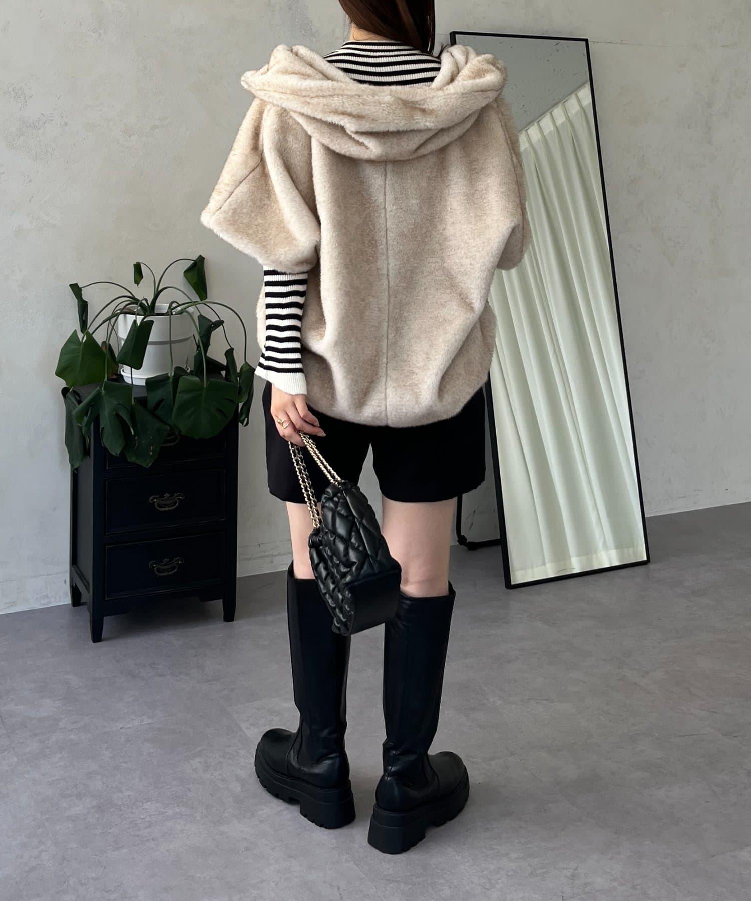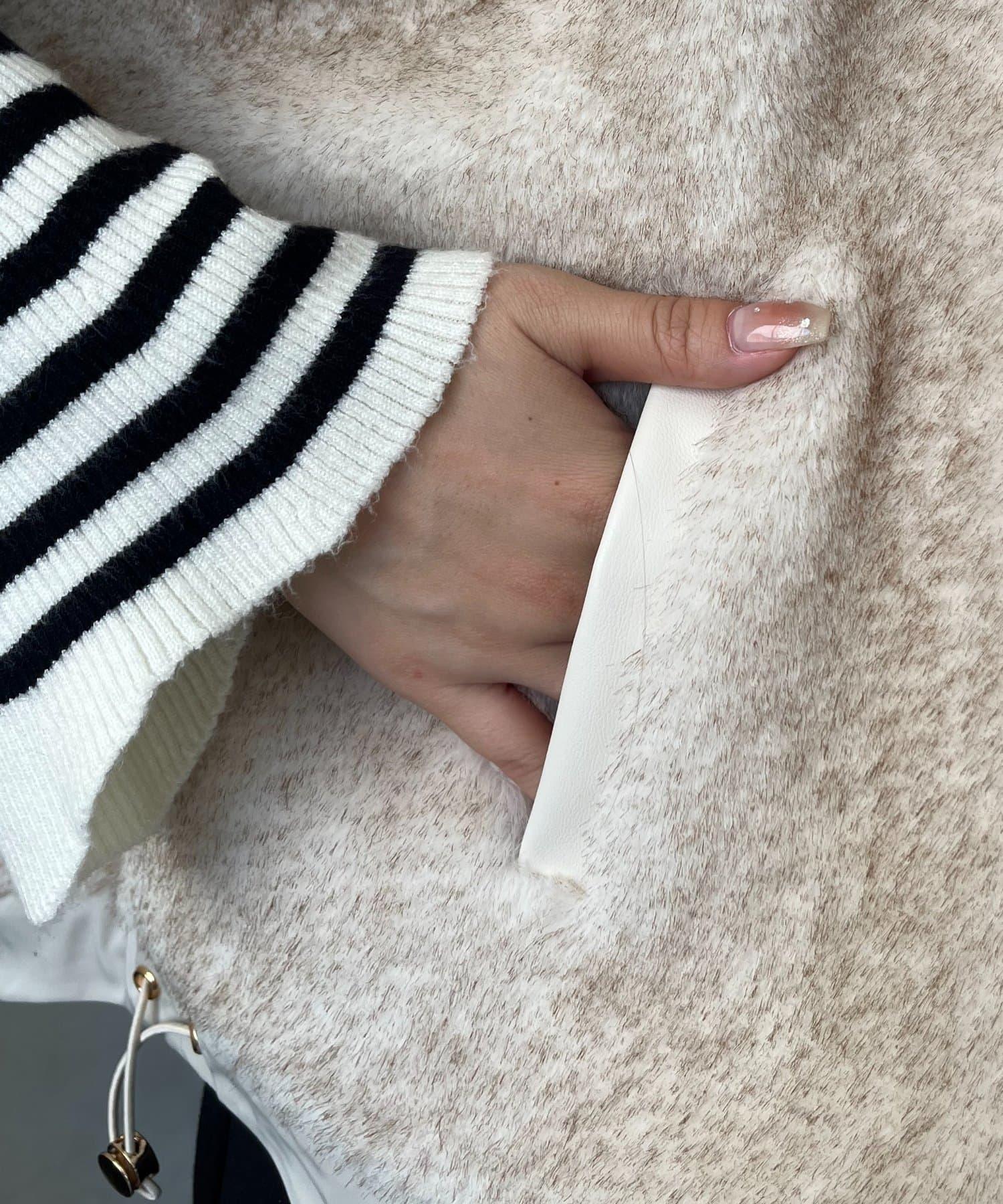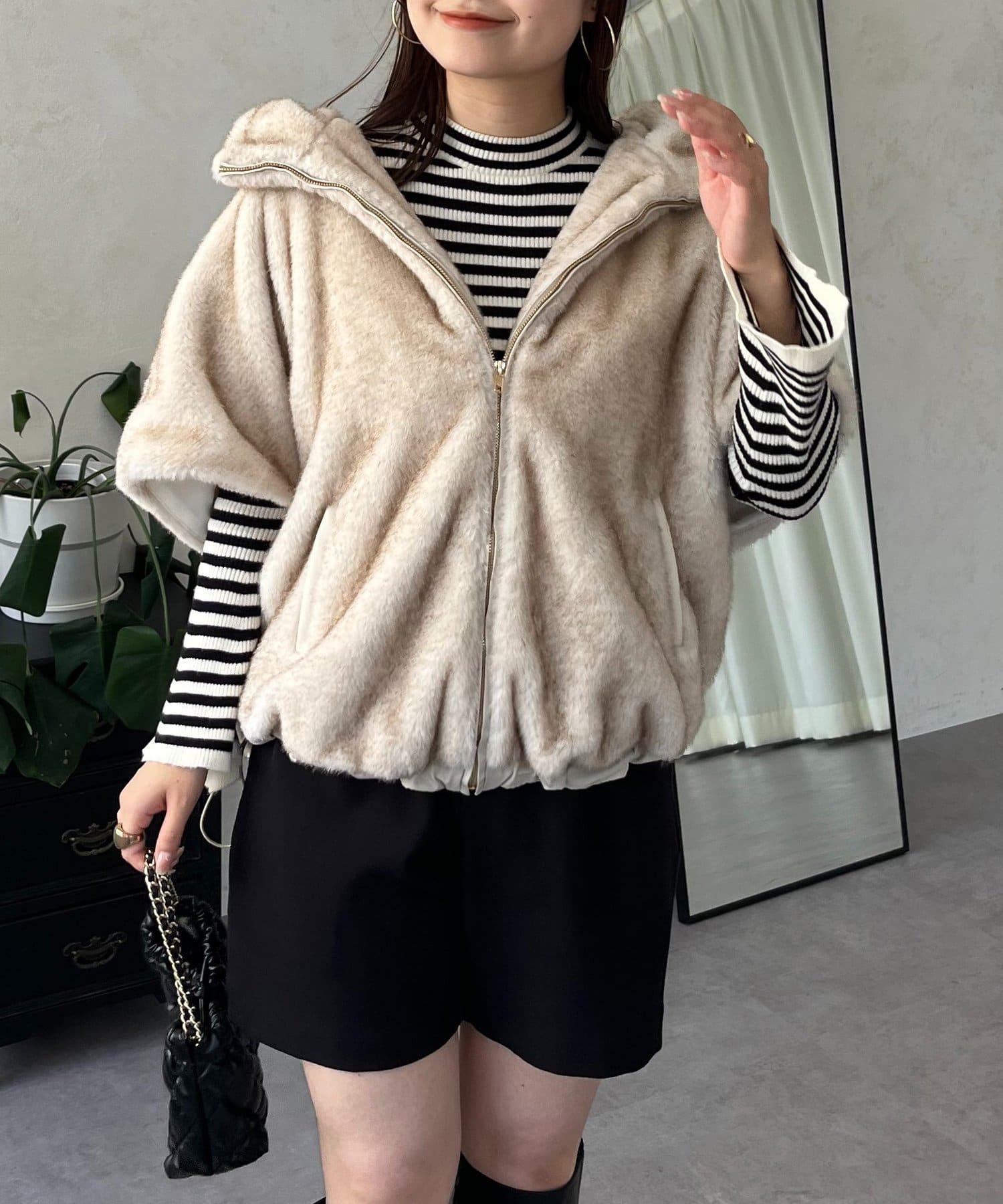 【總選舉參賽單品】貂絨風格連帽毛皮披肩