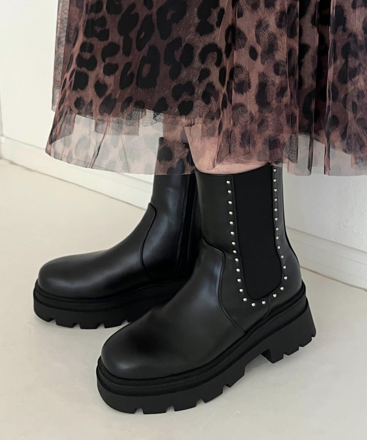 【總選舉參賽單品】鉚釘裝飾側彈力厚底短靴