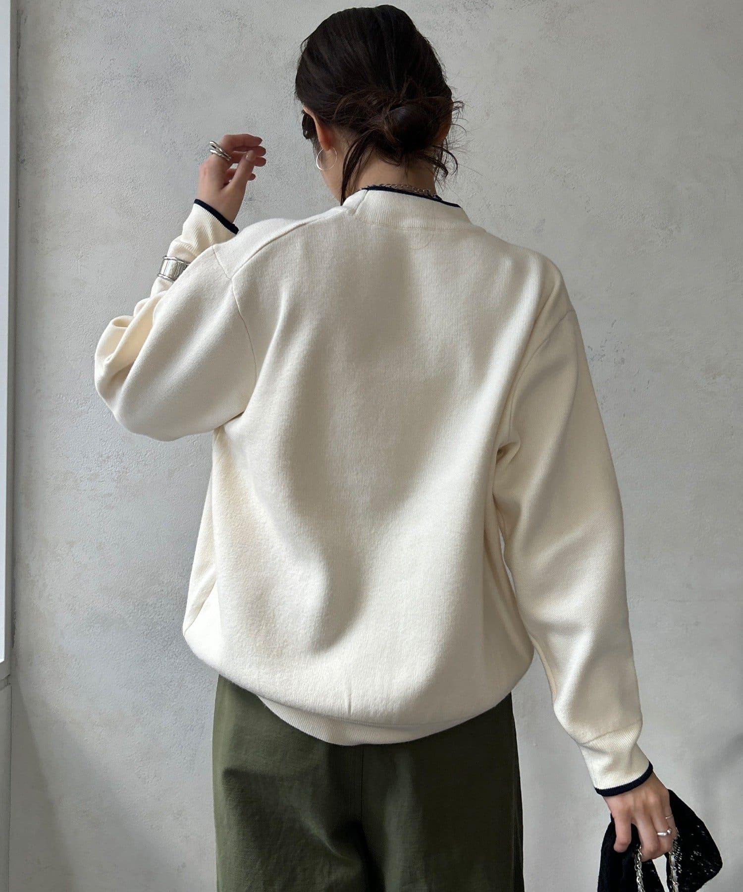 針織上衣,正面繡有醒目的繩狀徽標。