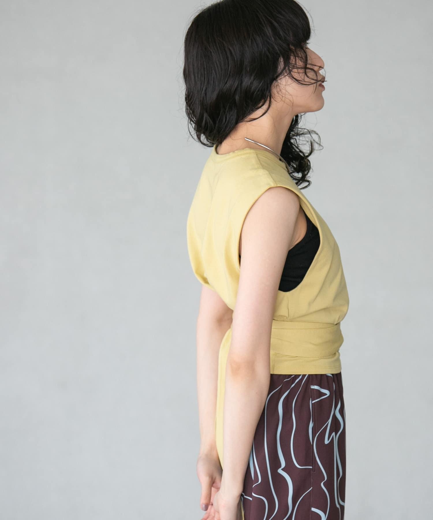 一件基本款無袖上衣,看起來像一件基本款無袖上衣,但腰部有一條附帶的腰帶。只需將繩子系在腰間,就能讓你看起來整齊劃一。舒適的 100% 純棉面料也是一大亮點。有給人沉穩印象的海軍藍和華麗感十足的粉色和黃色可供選擇。