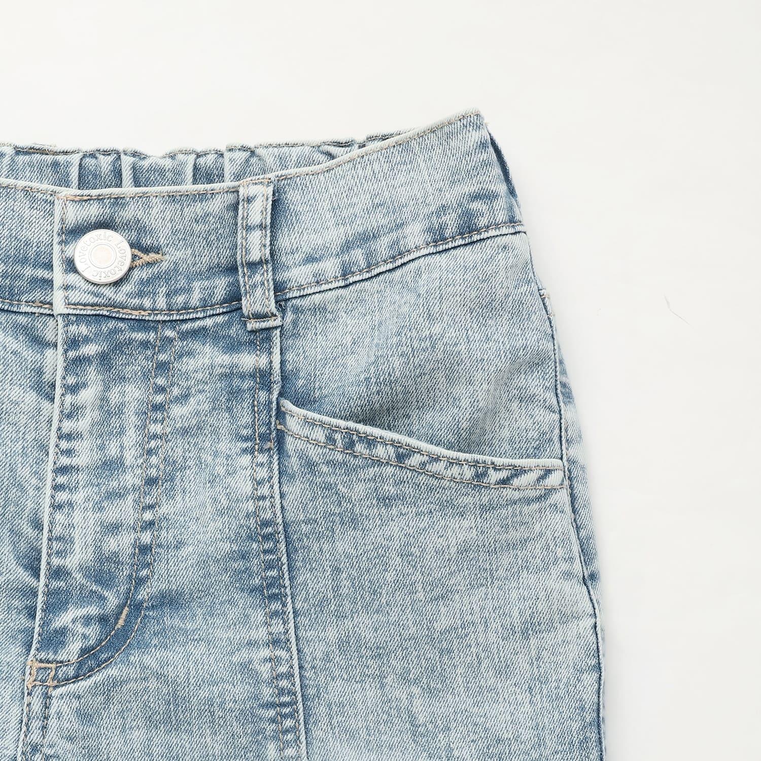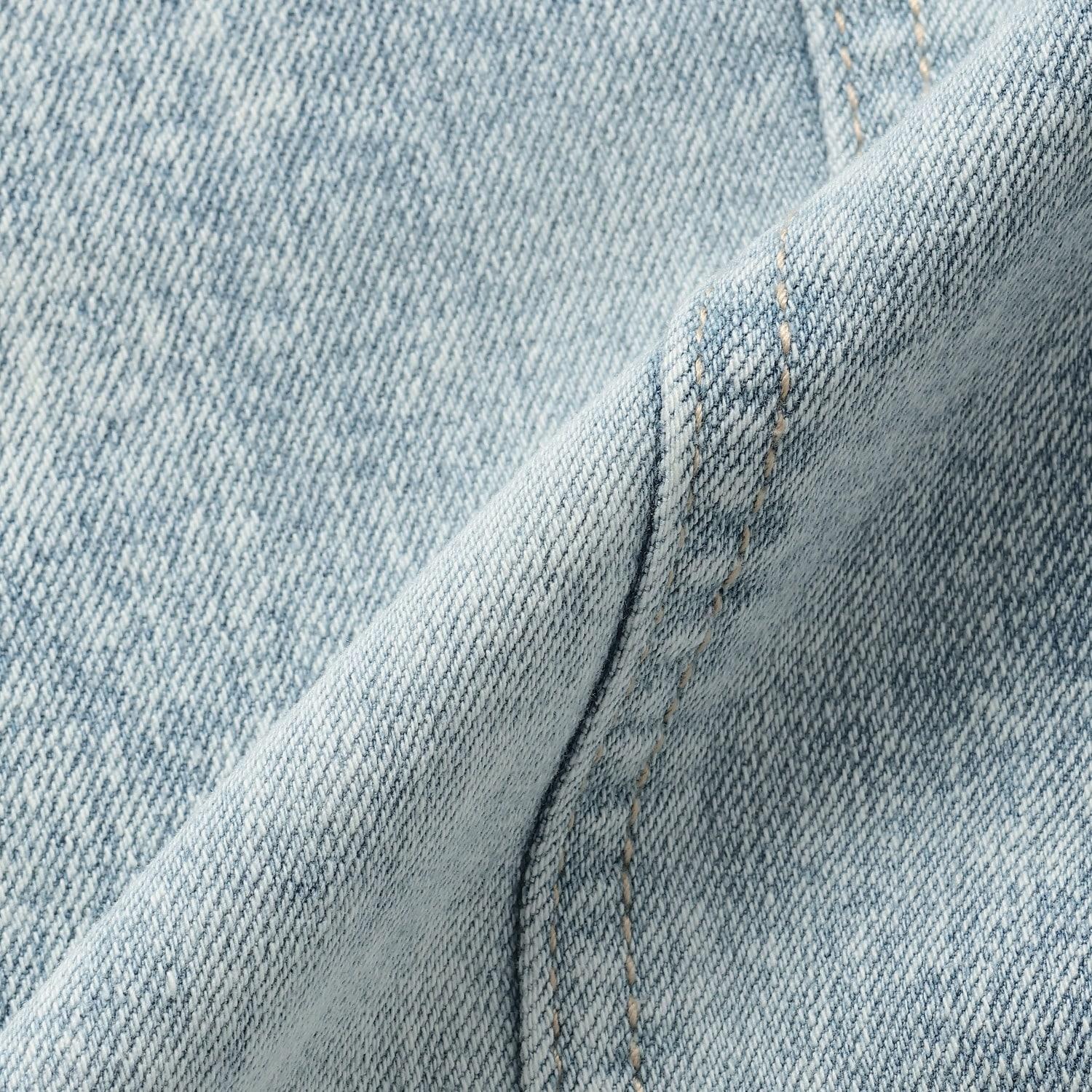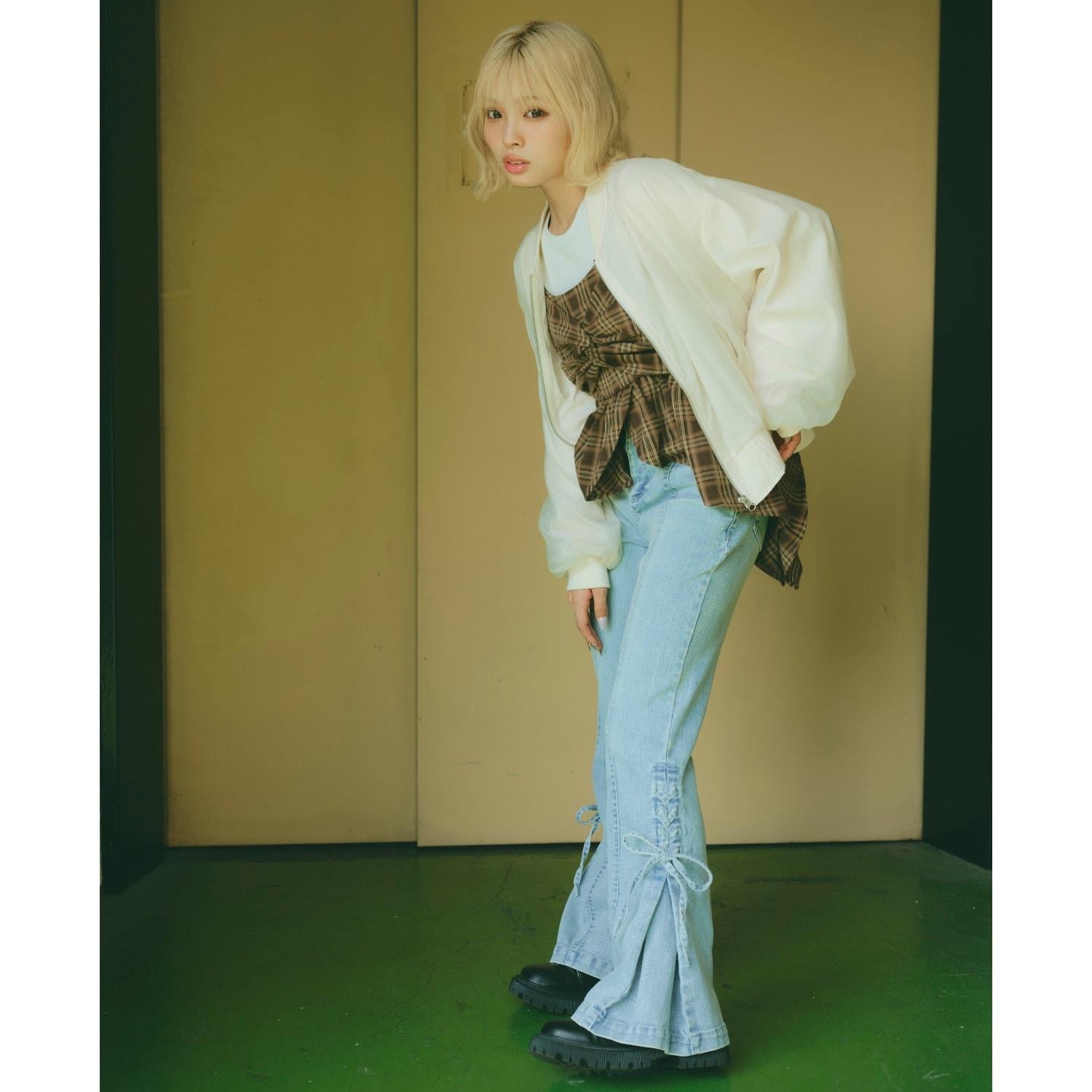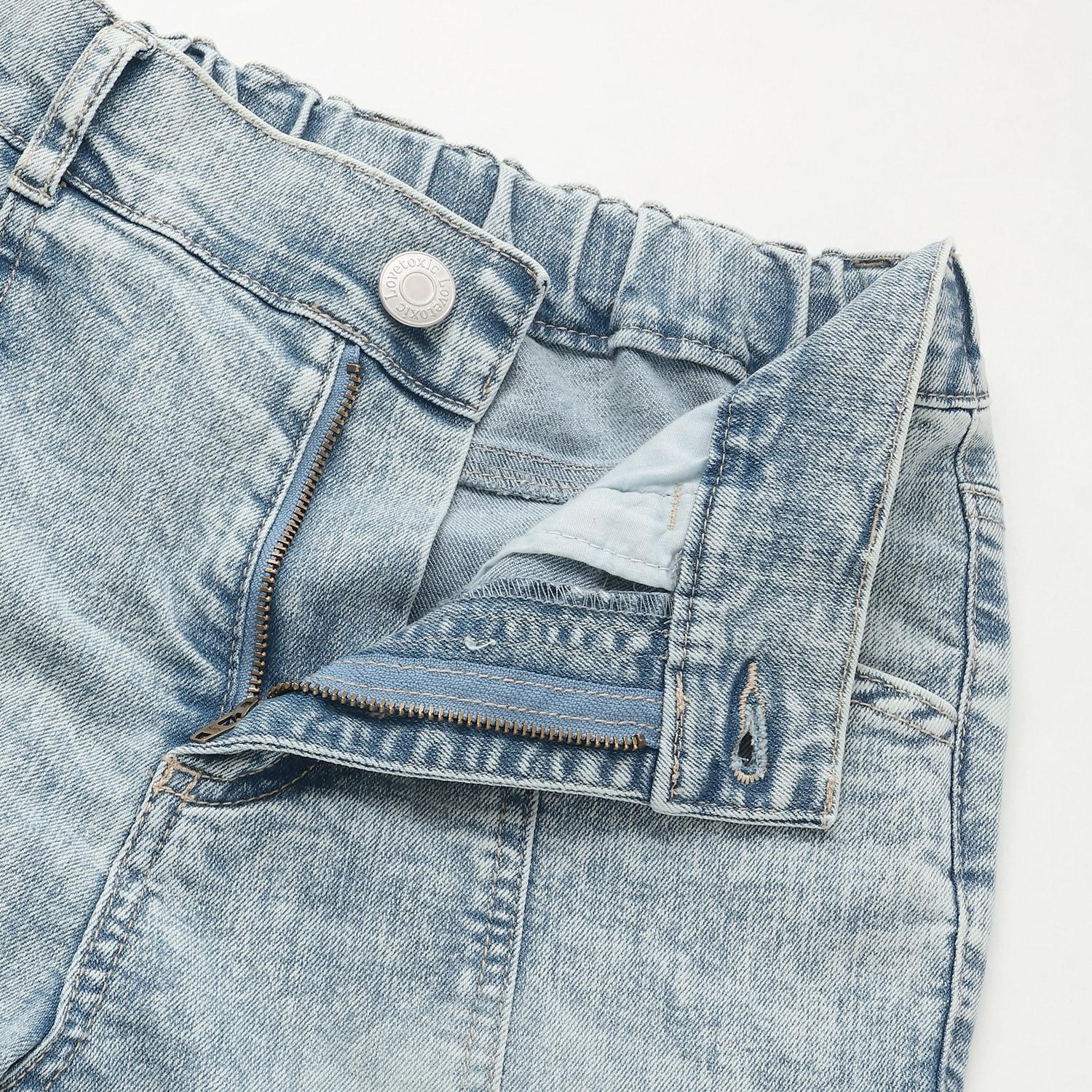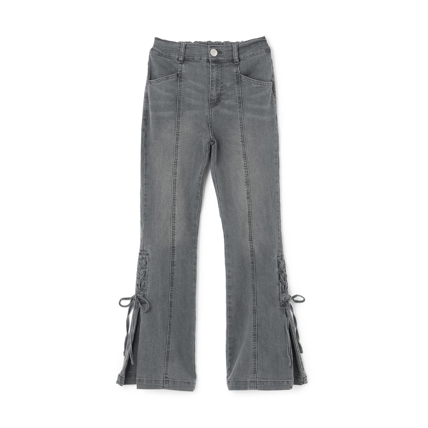 牛仔長褲採用流行、簡潔的喇叭形剪裁。