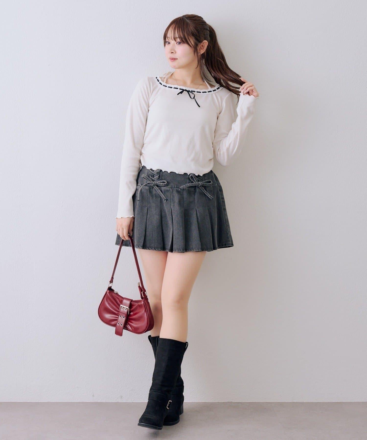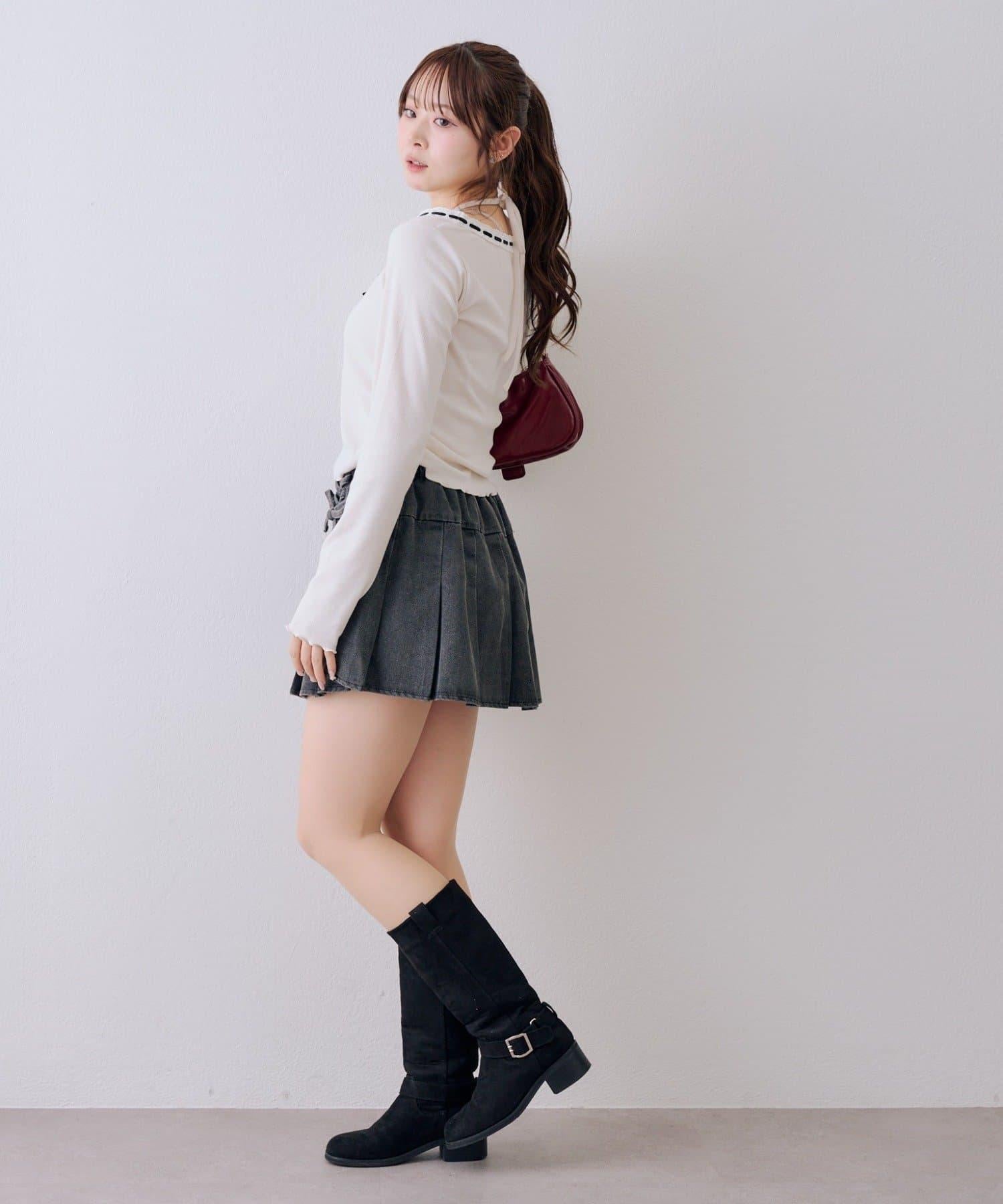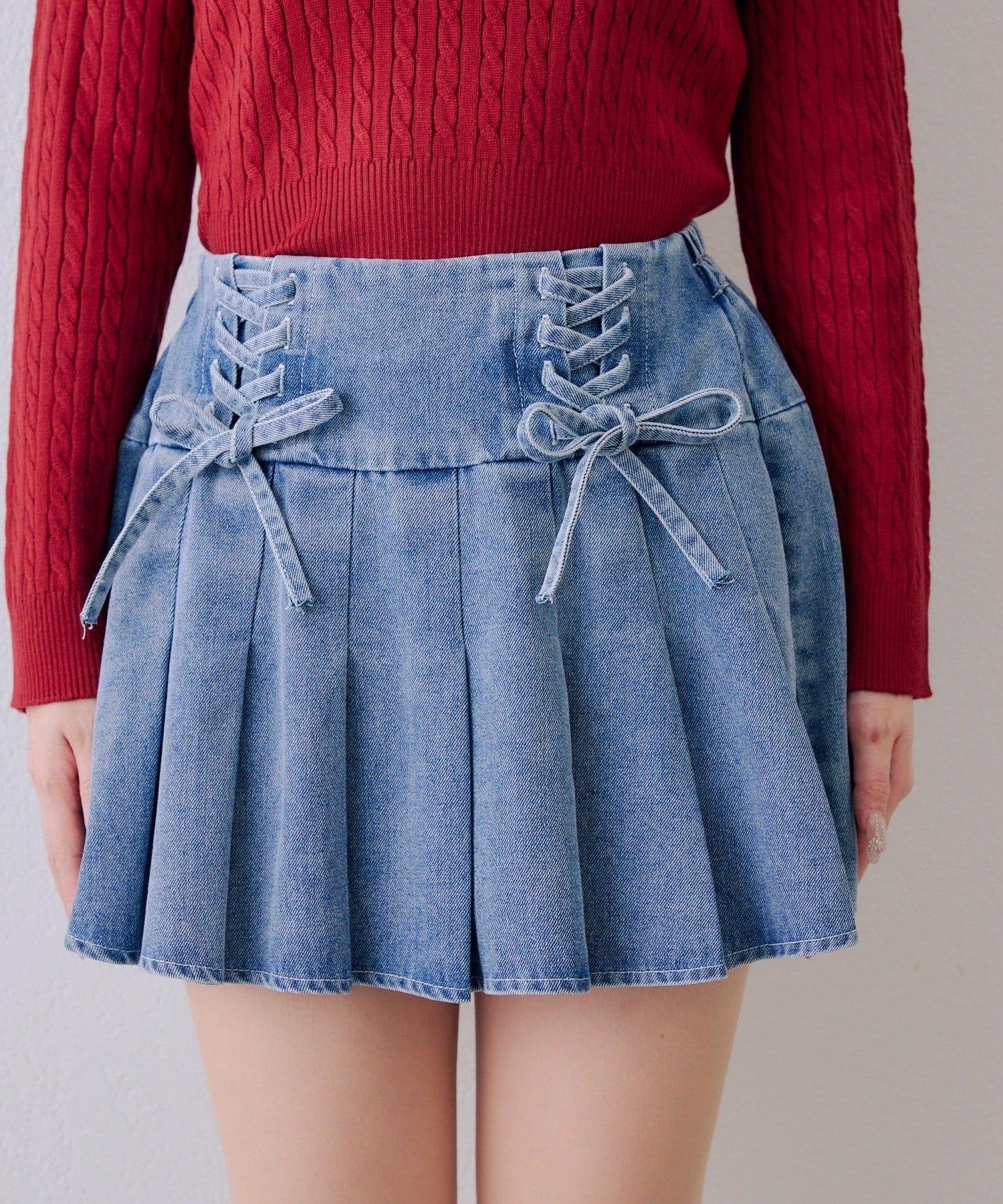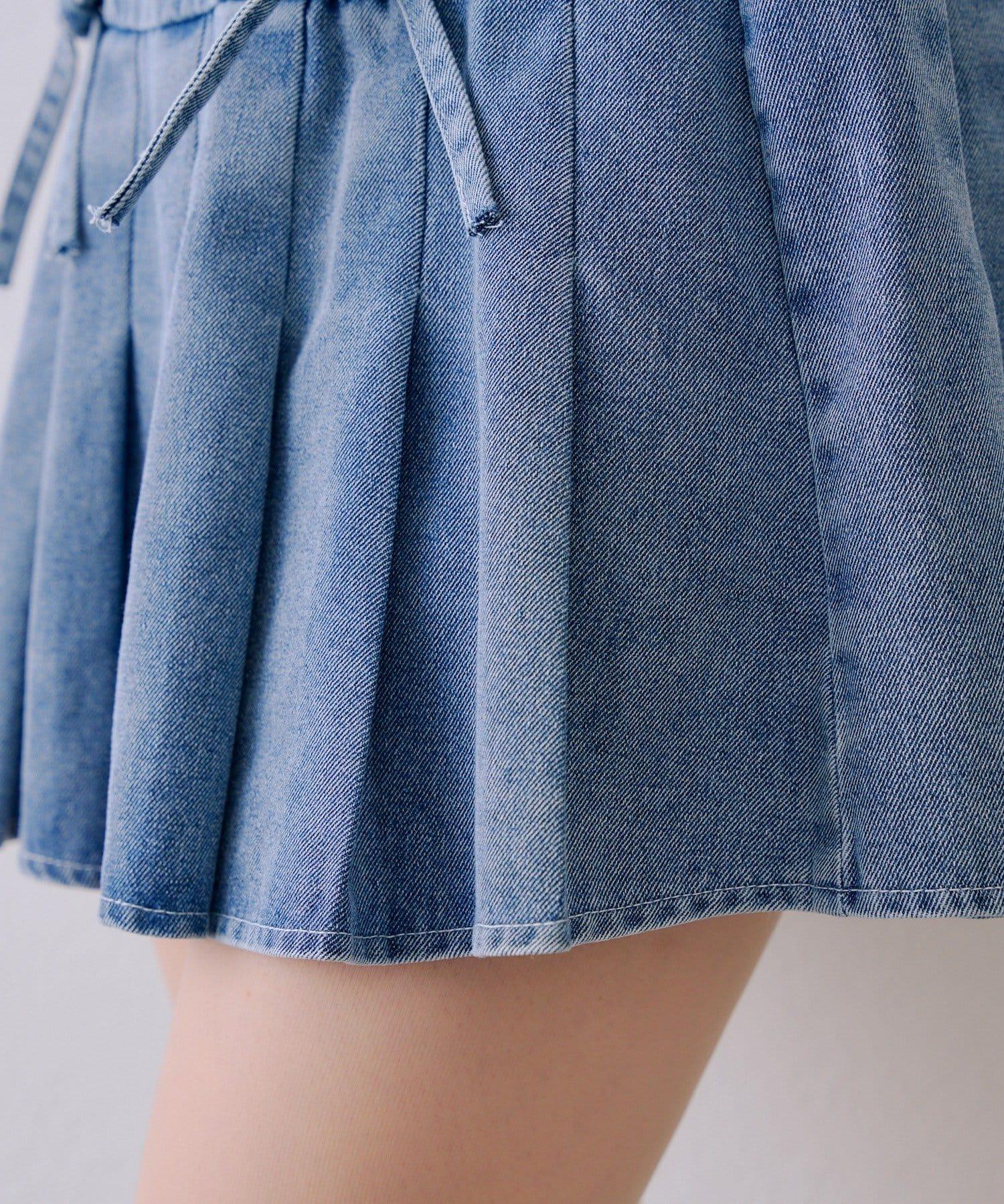 繫帶迷你百褶半身裙