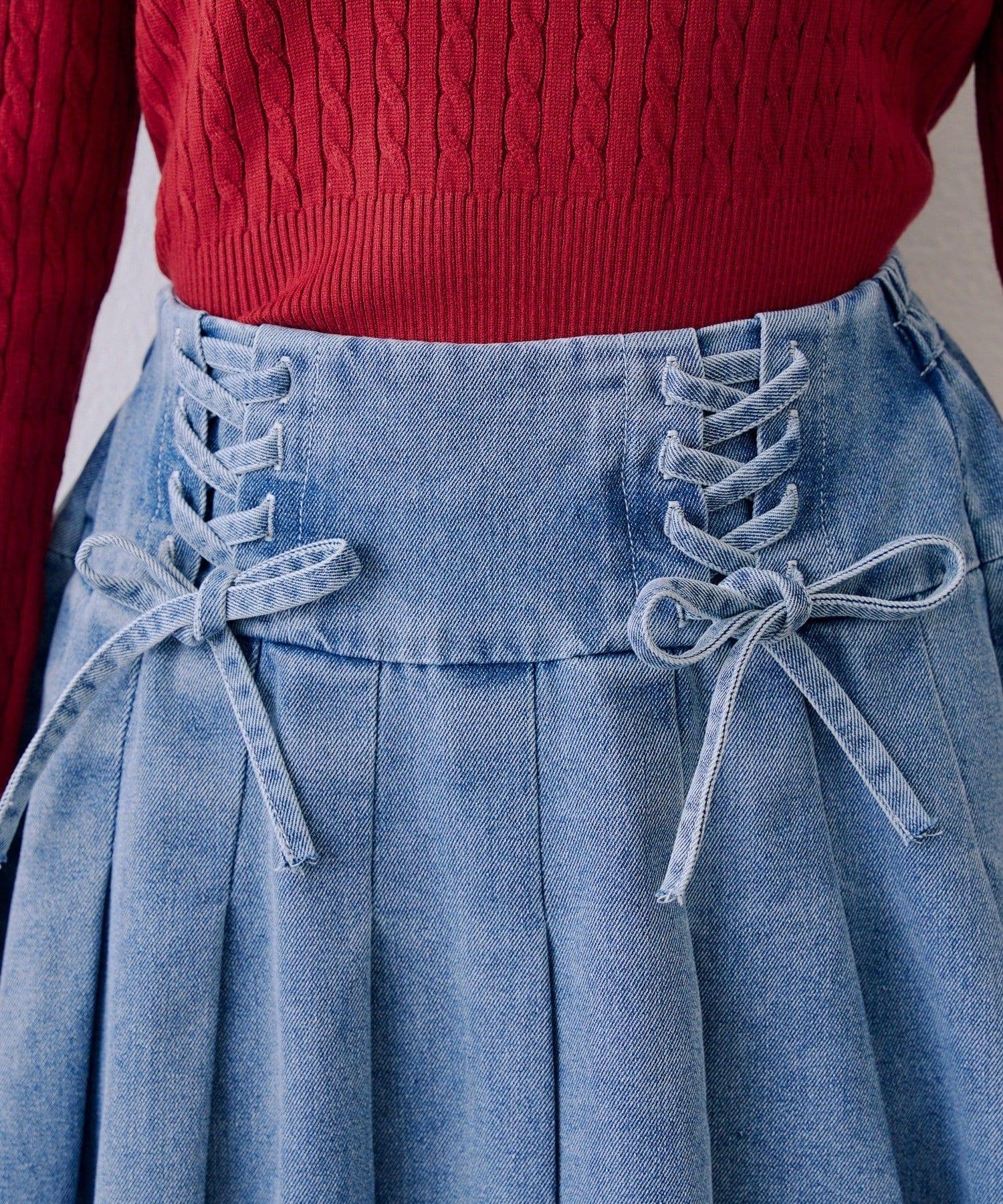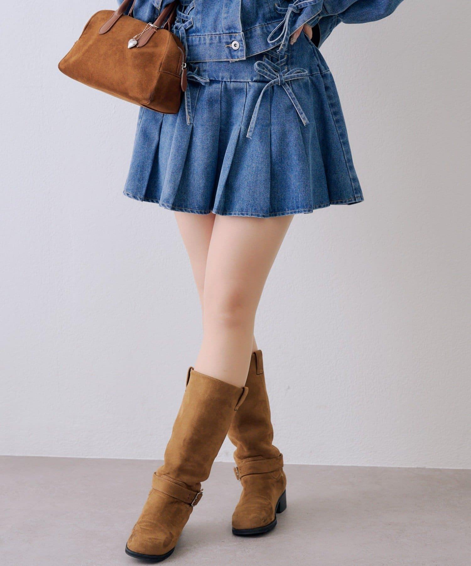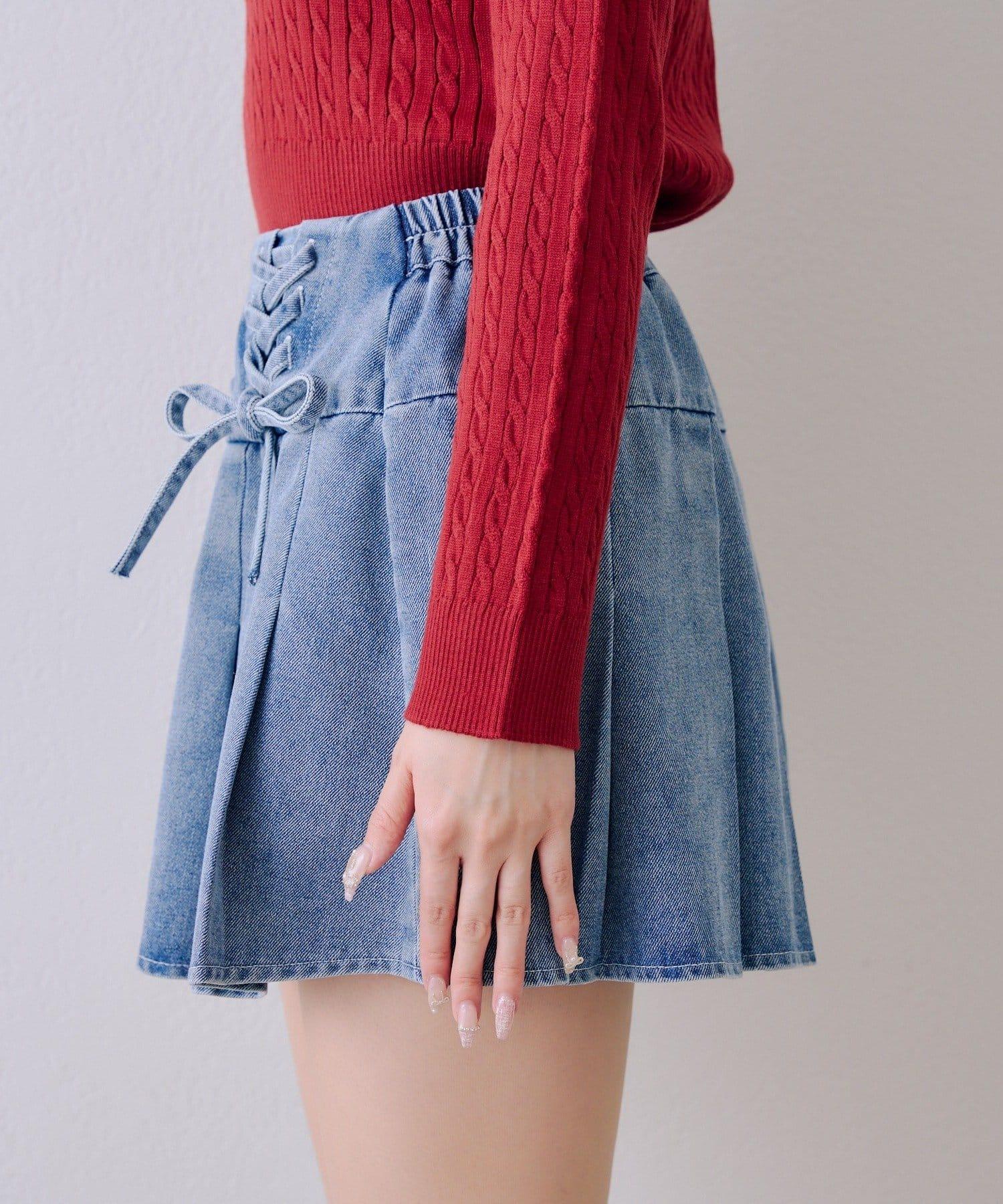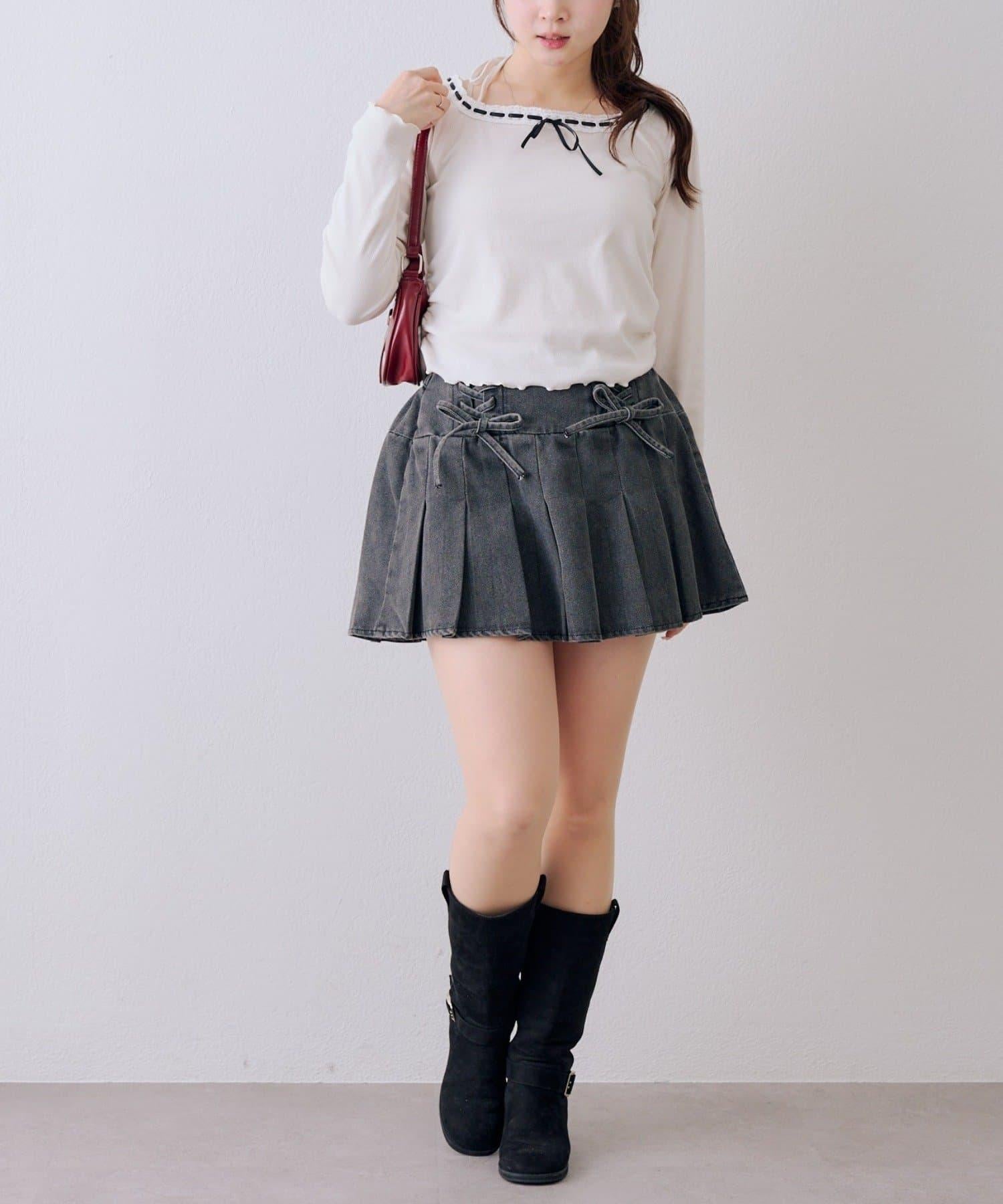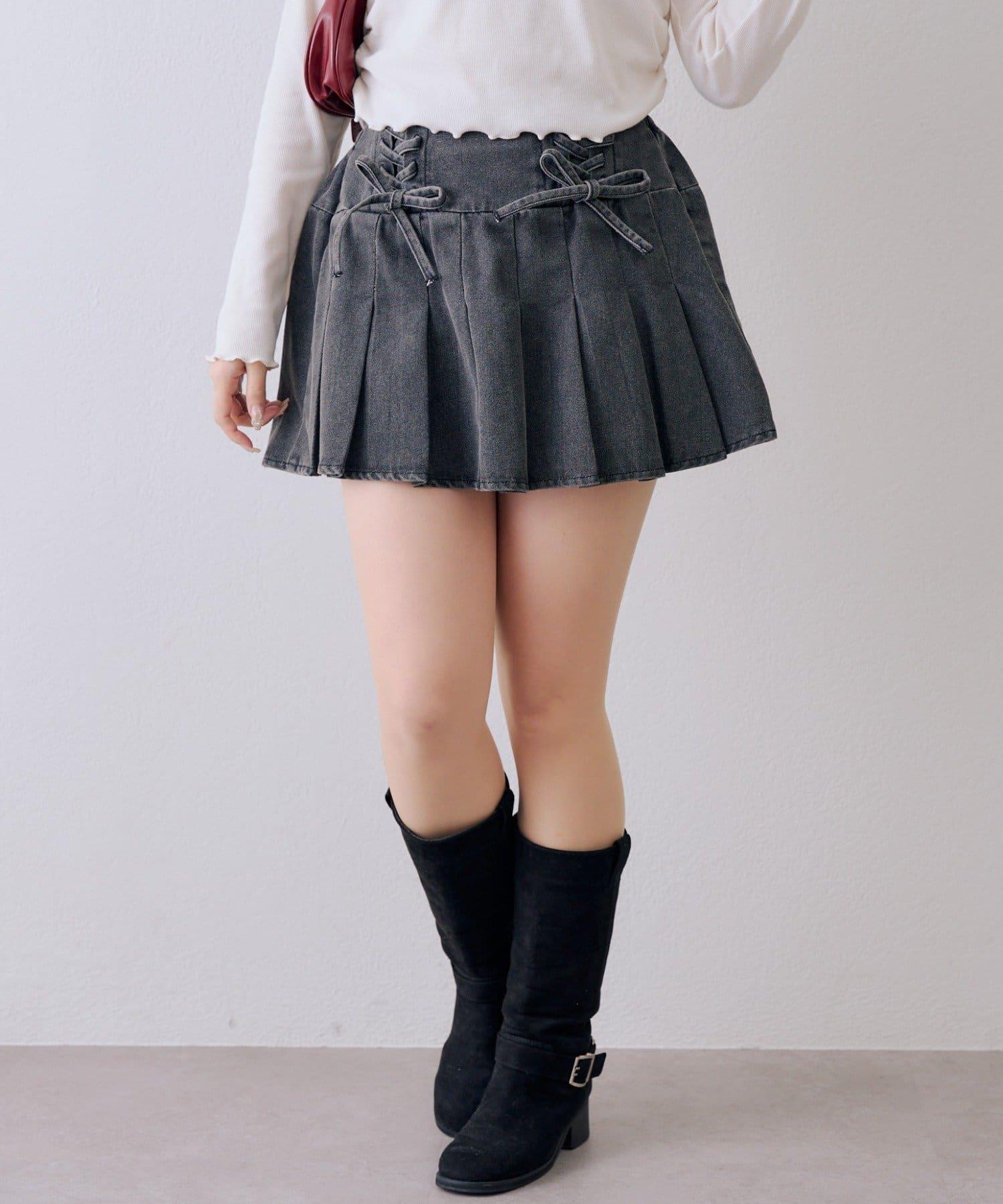 繫帶迷你百褶半身裙