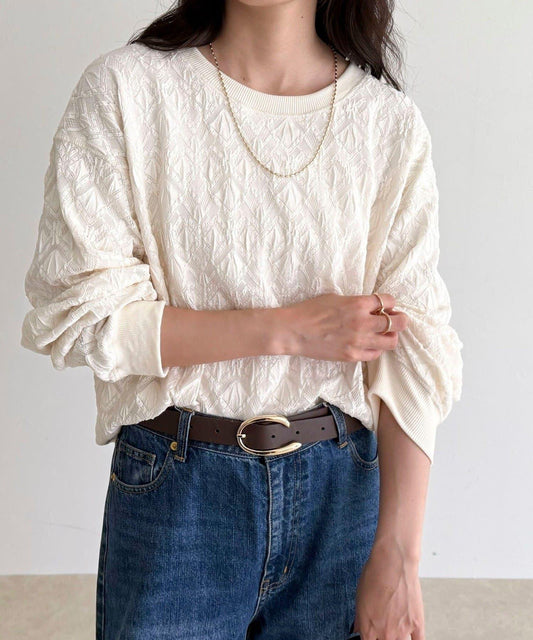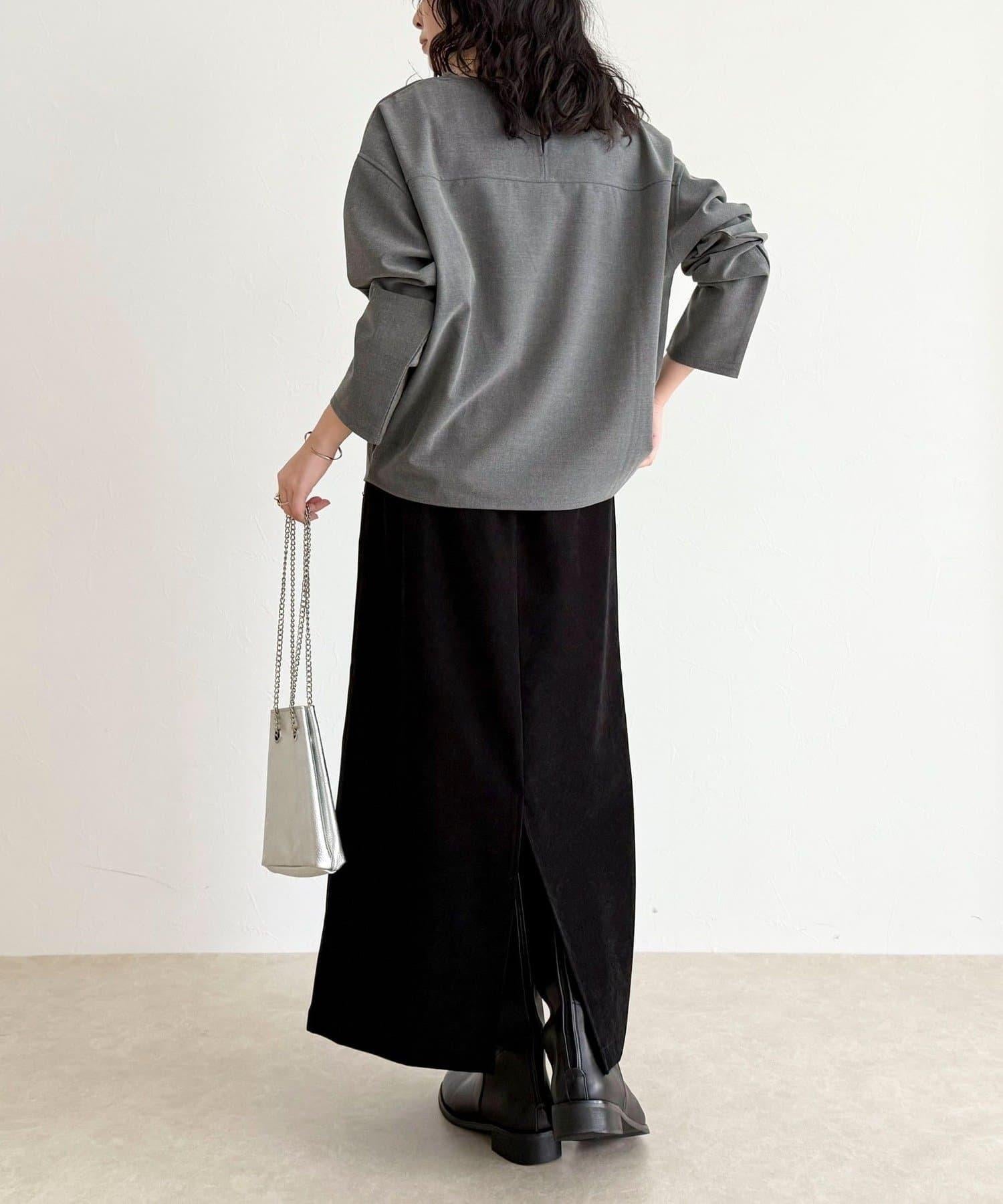 身高 156cm 的員工(穿 38 號):長度與臀部差不多,即使外出也顯得很整齊。寬鬆舒適,活動自如,即使穿內搭也不會傾斜!是一件辦公室和日常都能穿的百搭上衣。