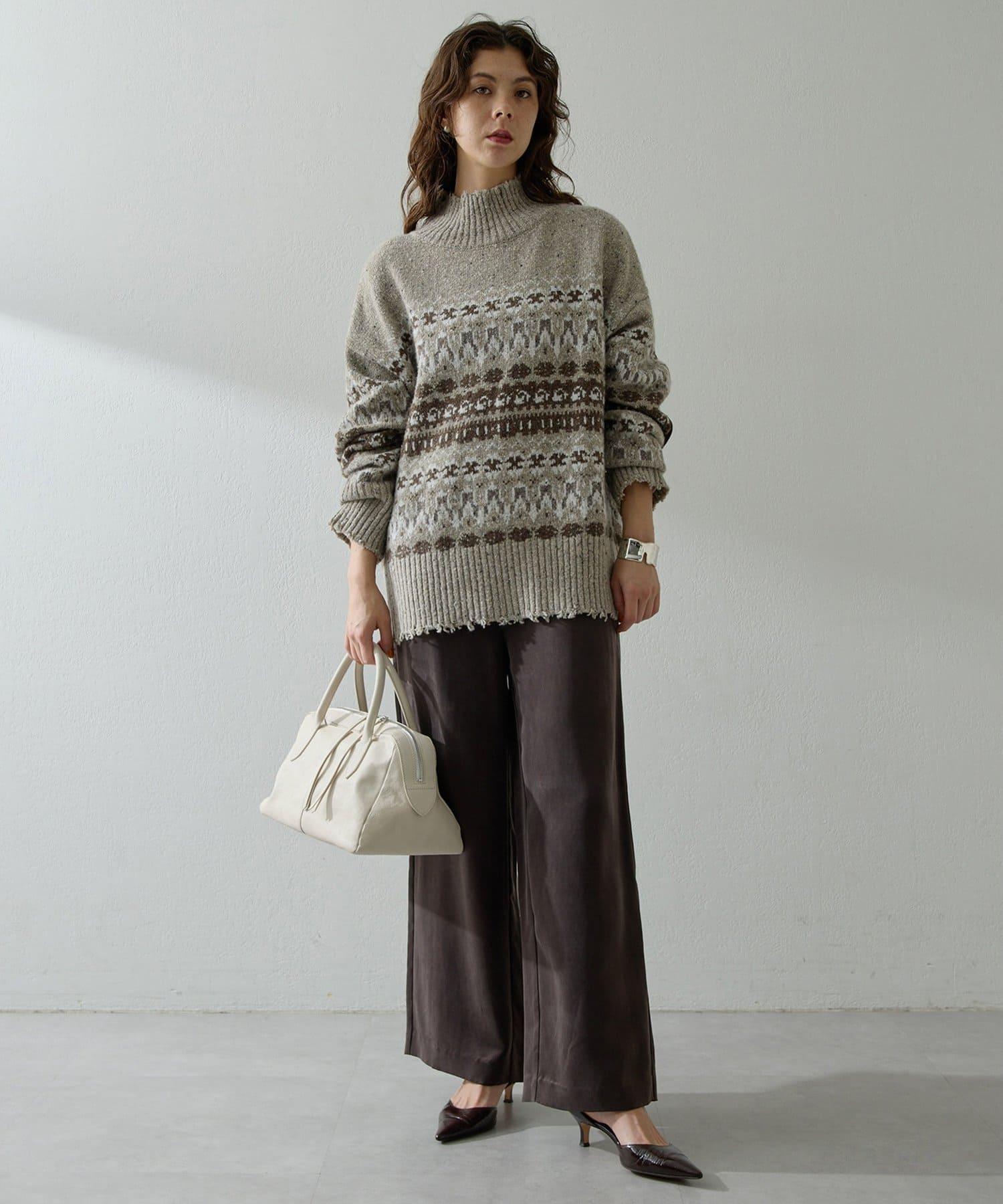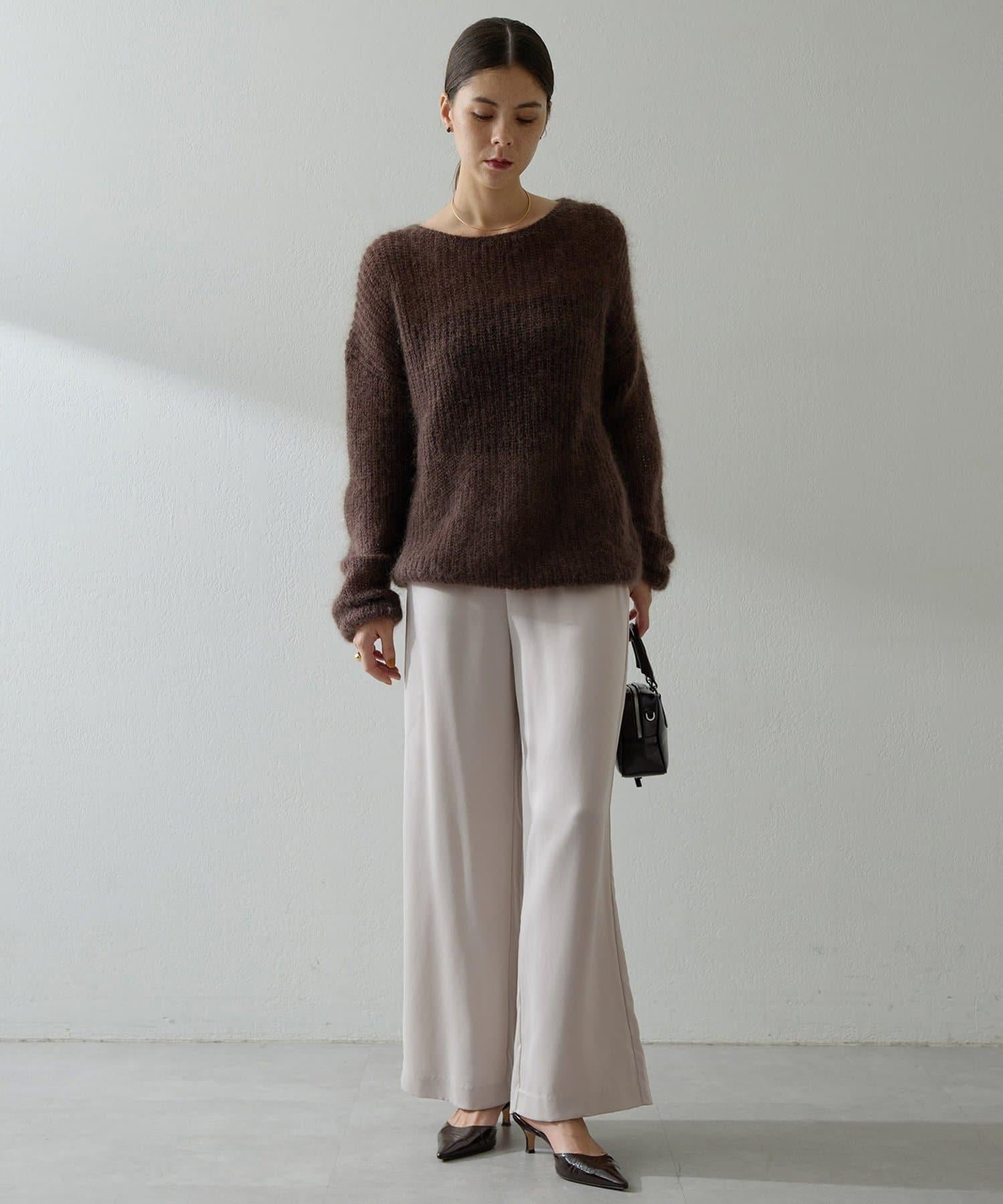 面料良好的垂墜感讓褲子線條優美挺括,是毛茸茸針織衫的完美搭配。
