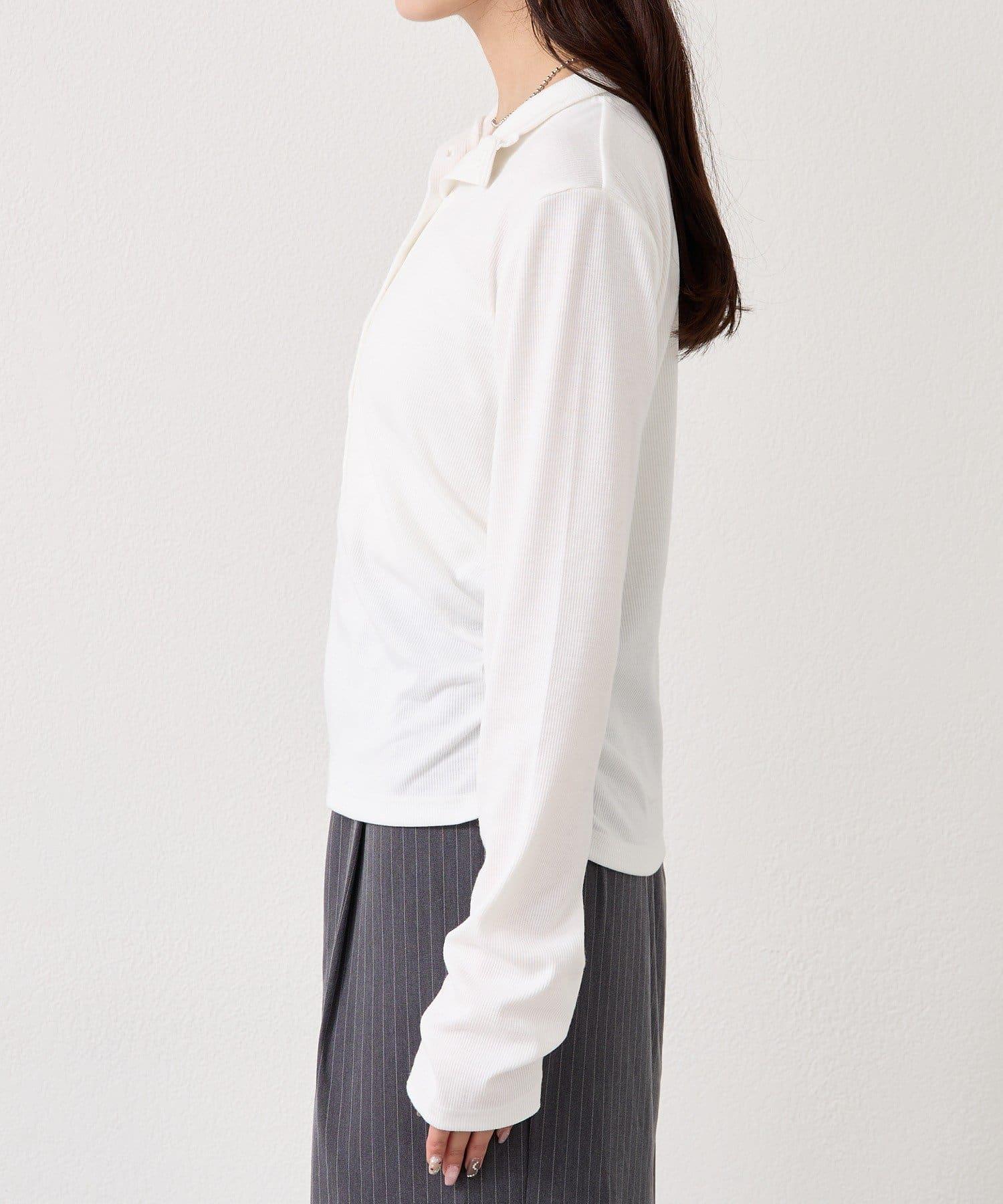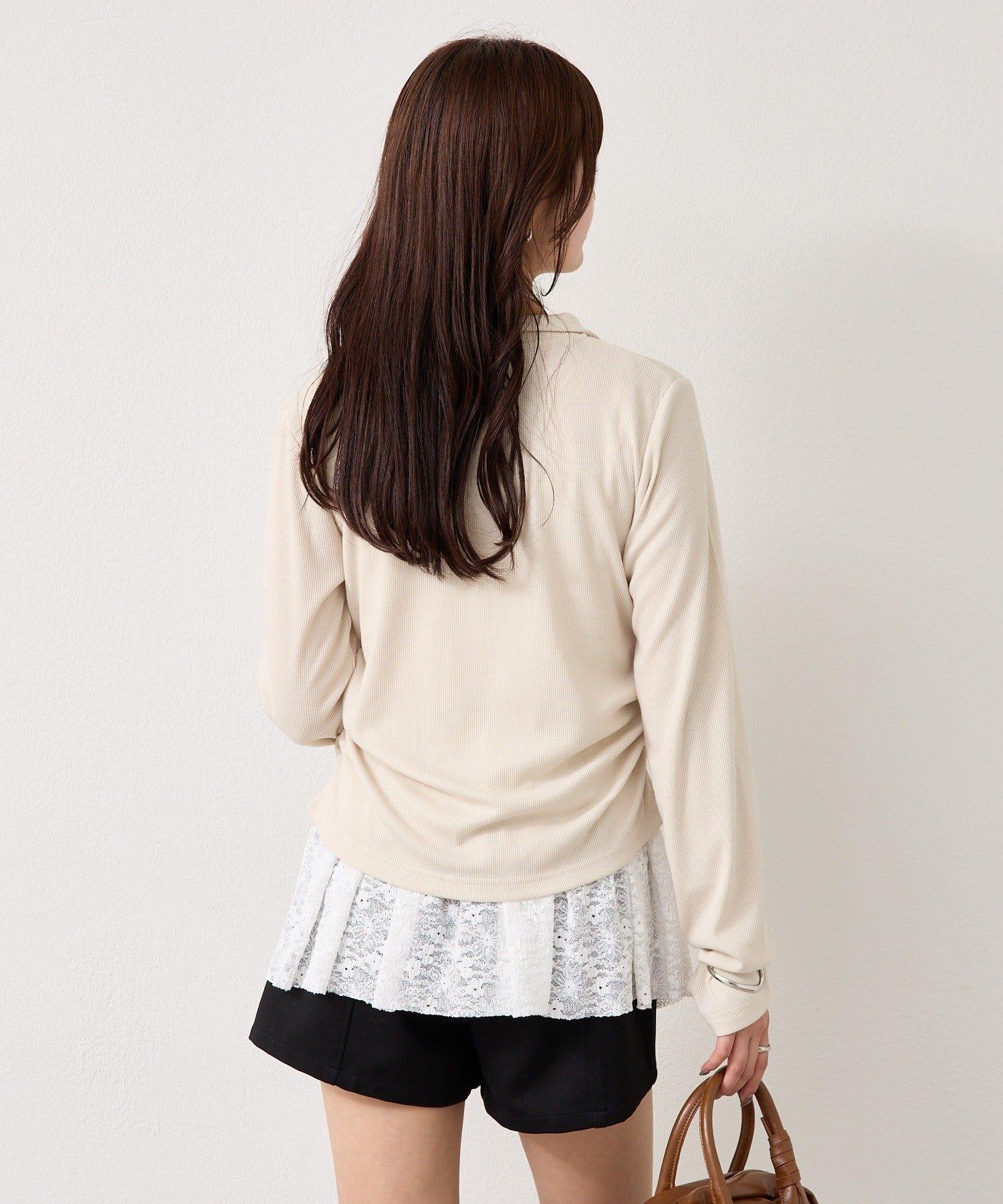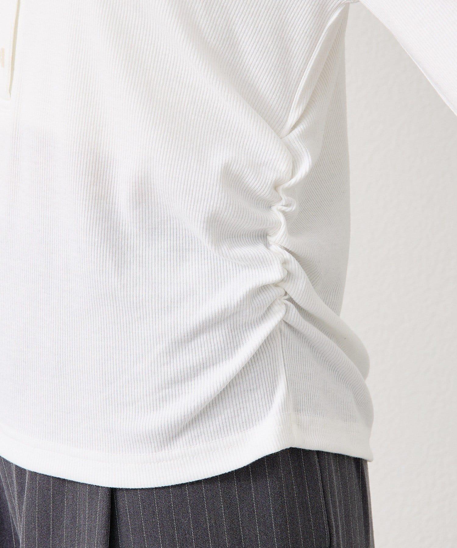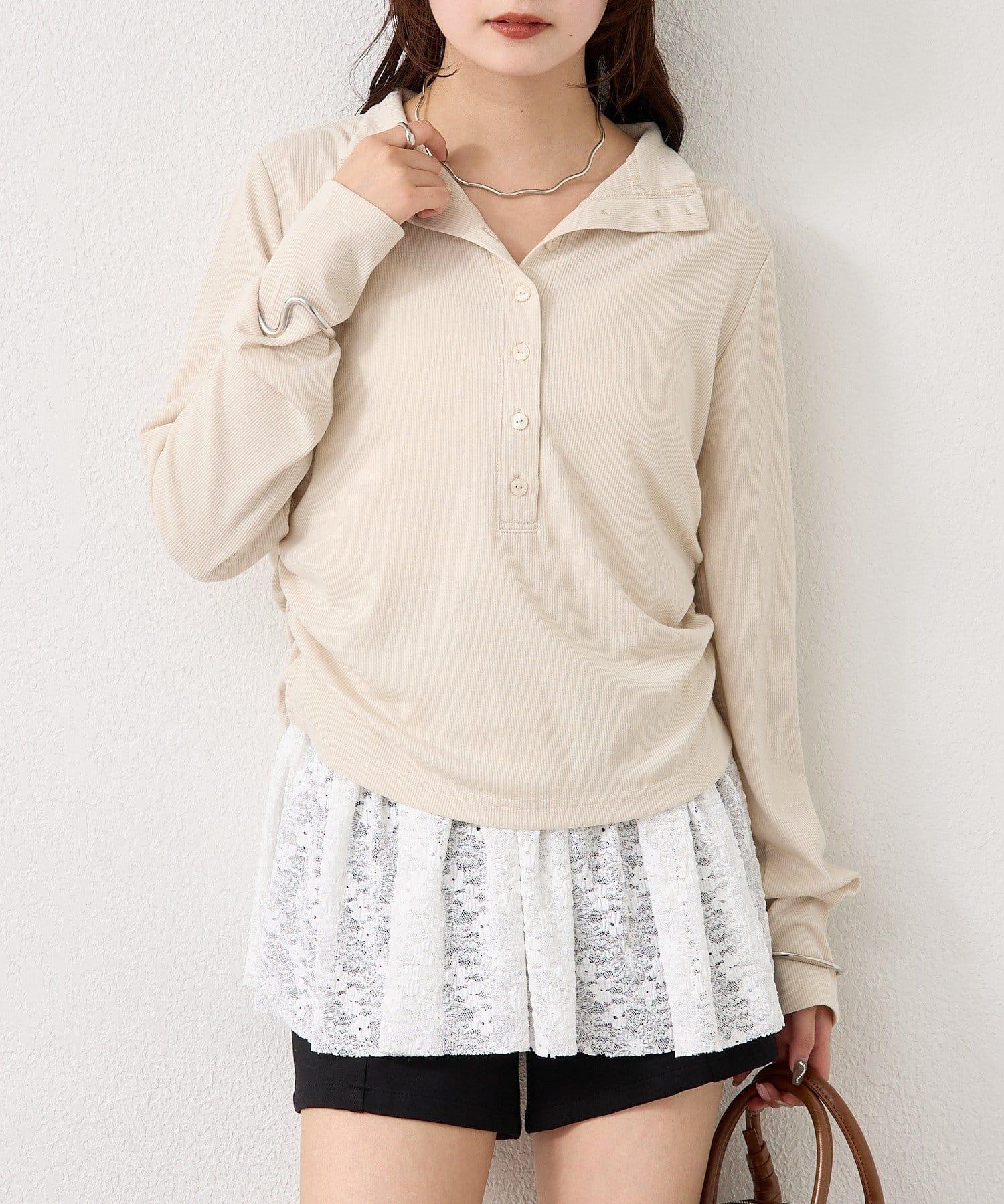 肩部開口的設計更顯隨意 ◎女性化的雞心領上衣,側面褶皺設計!