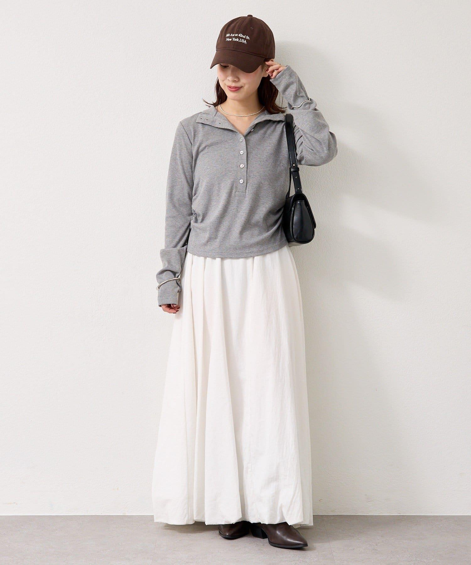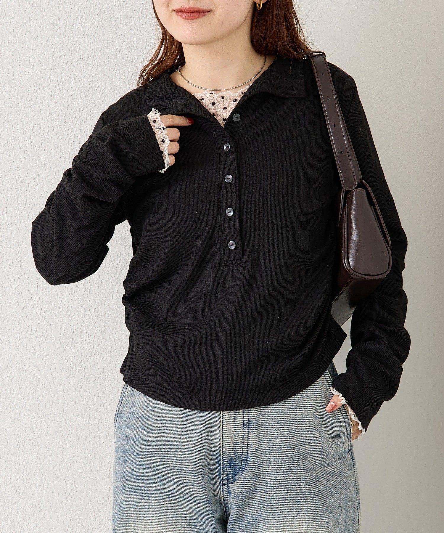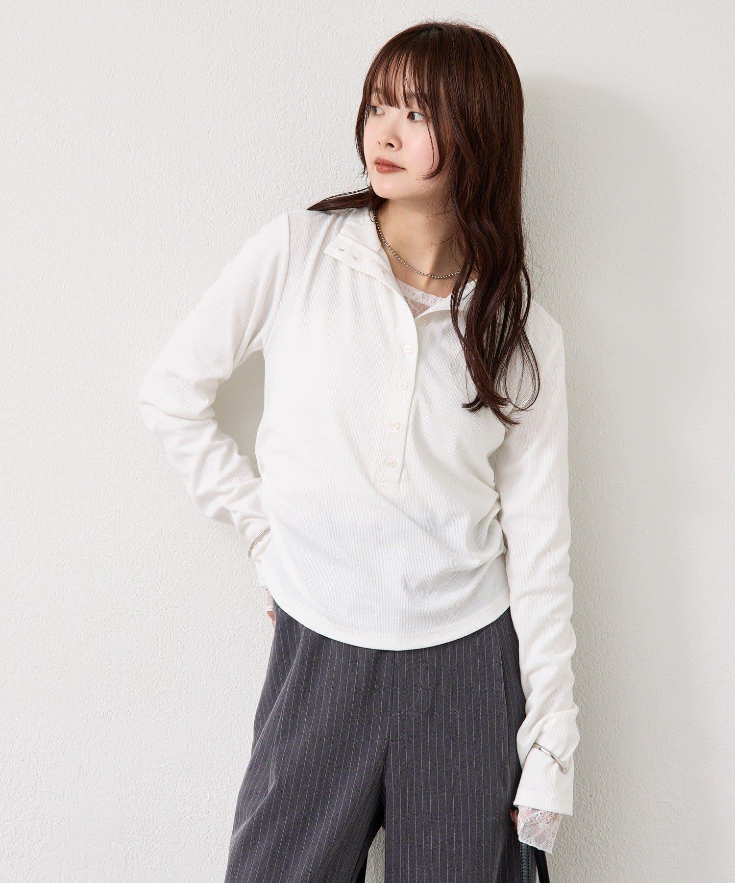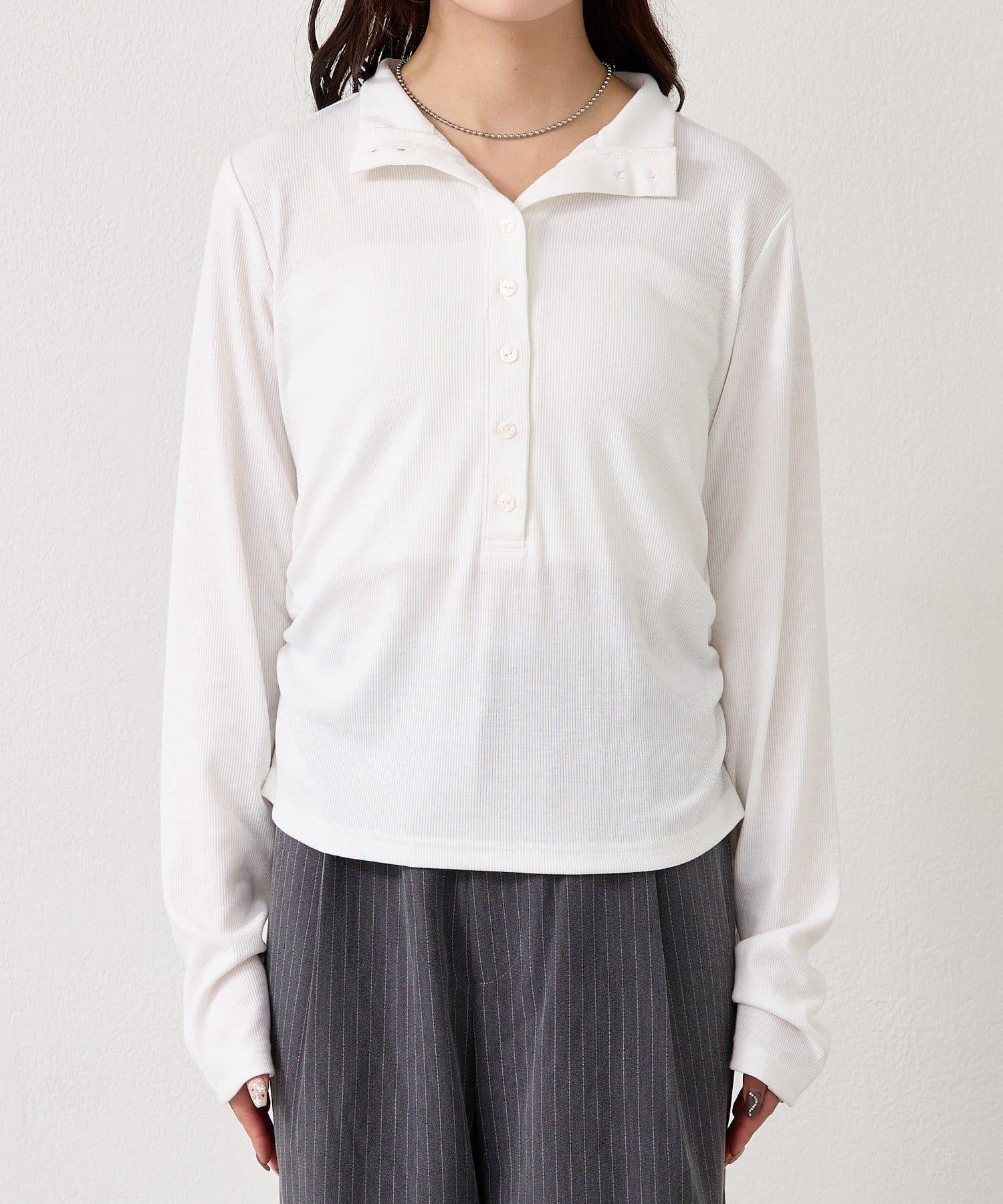 肩部開口的設計更顯隨意 ◎女性化的雞心領上衣,側面褶皺設計!