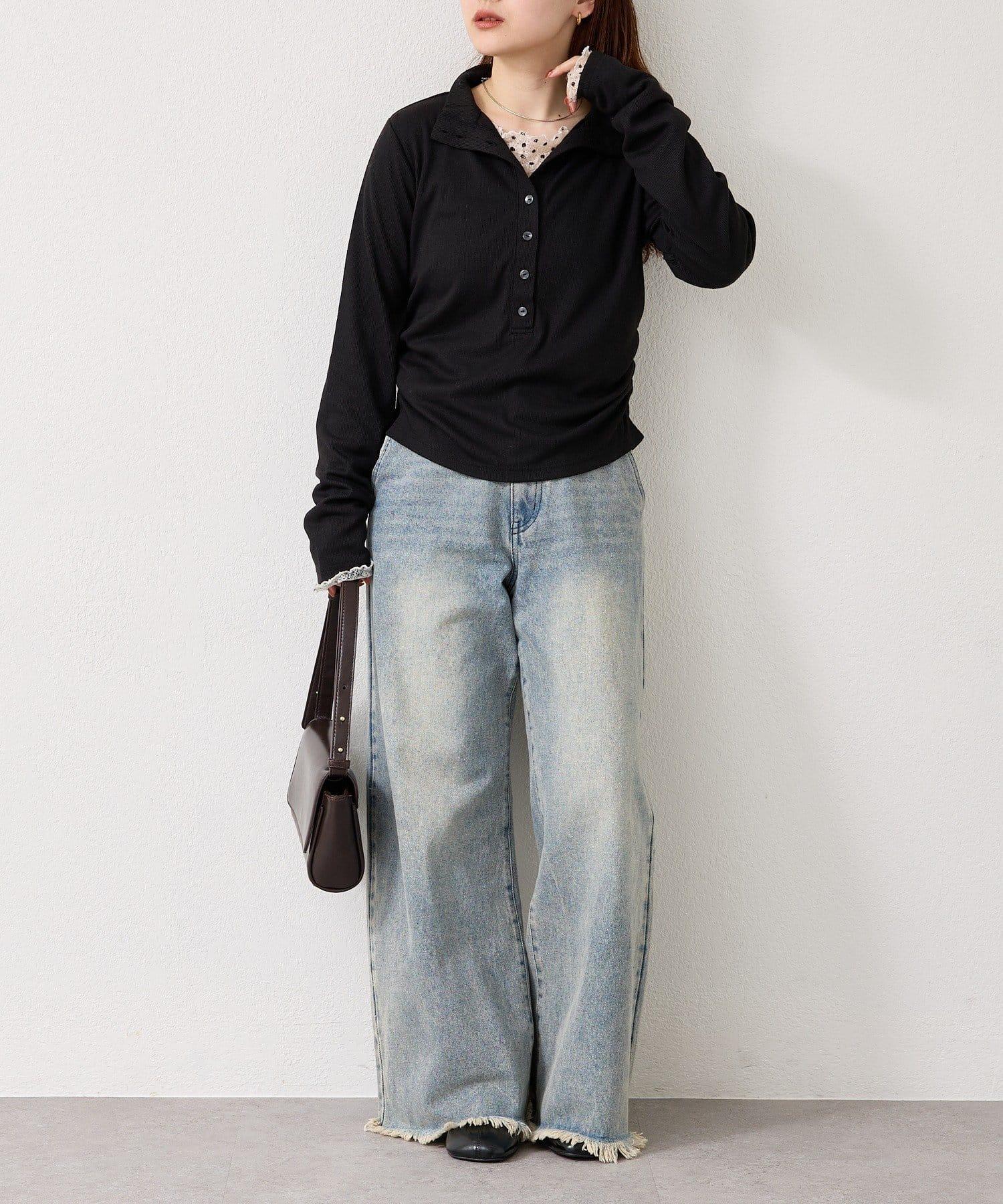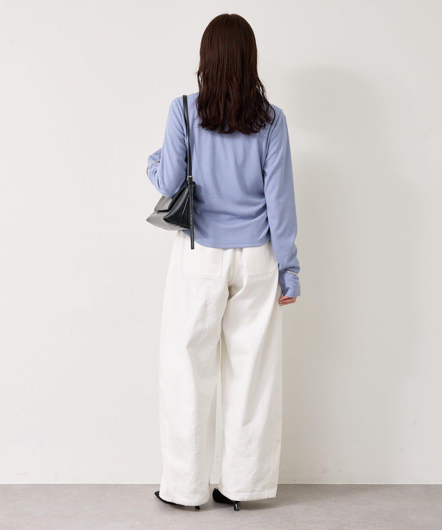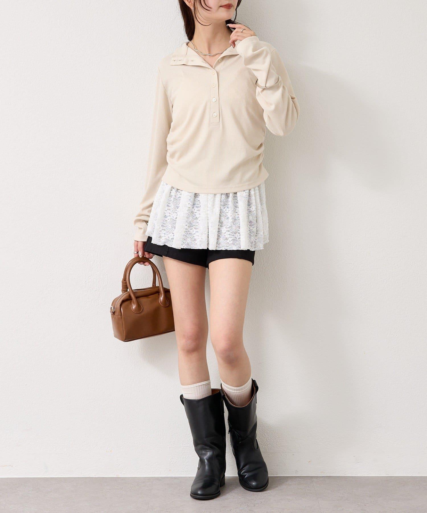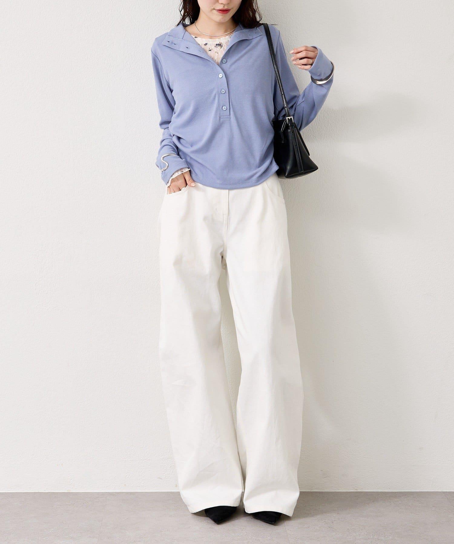 肩部開口的設計更顯隨意 ◎女性化的雞心領上衣,側面褶皺設計!