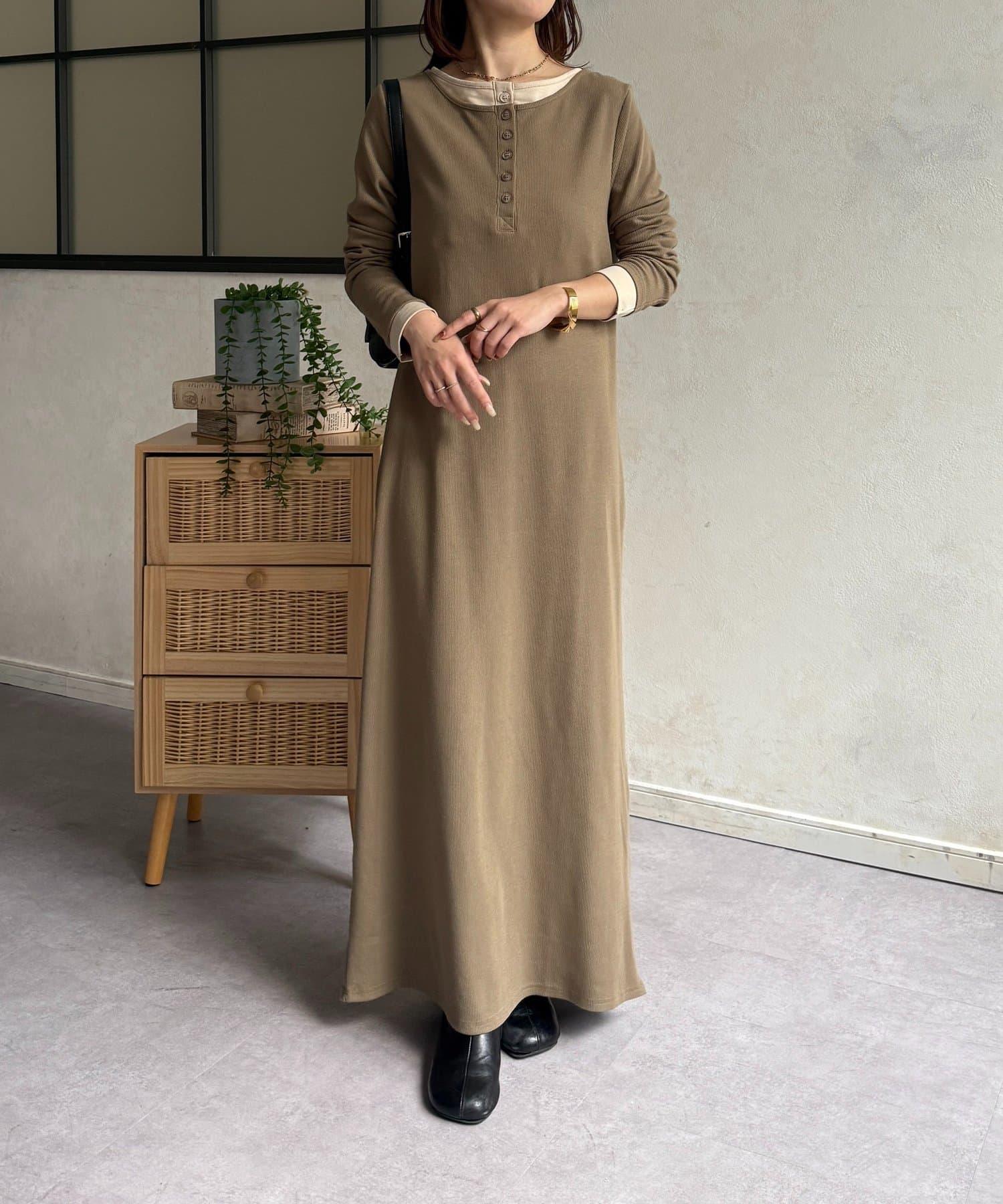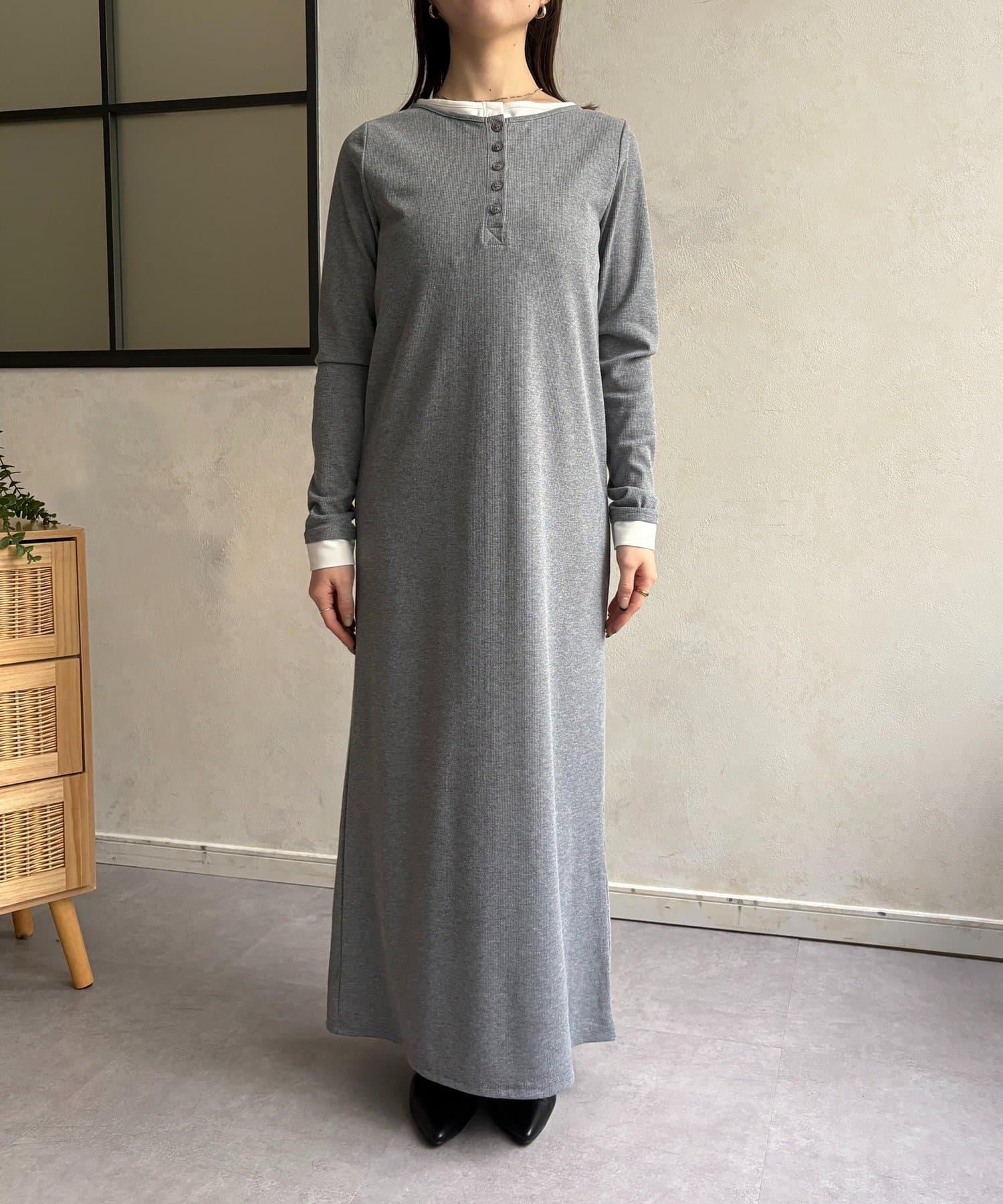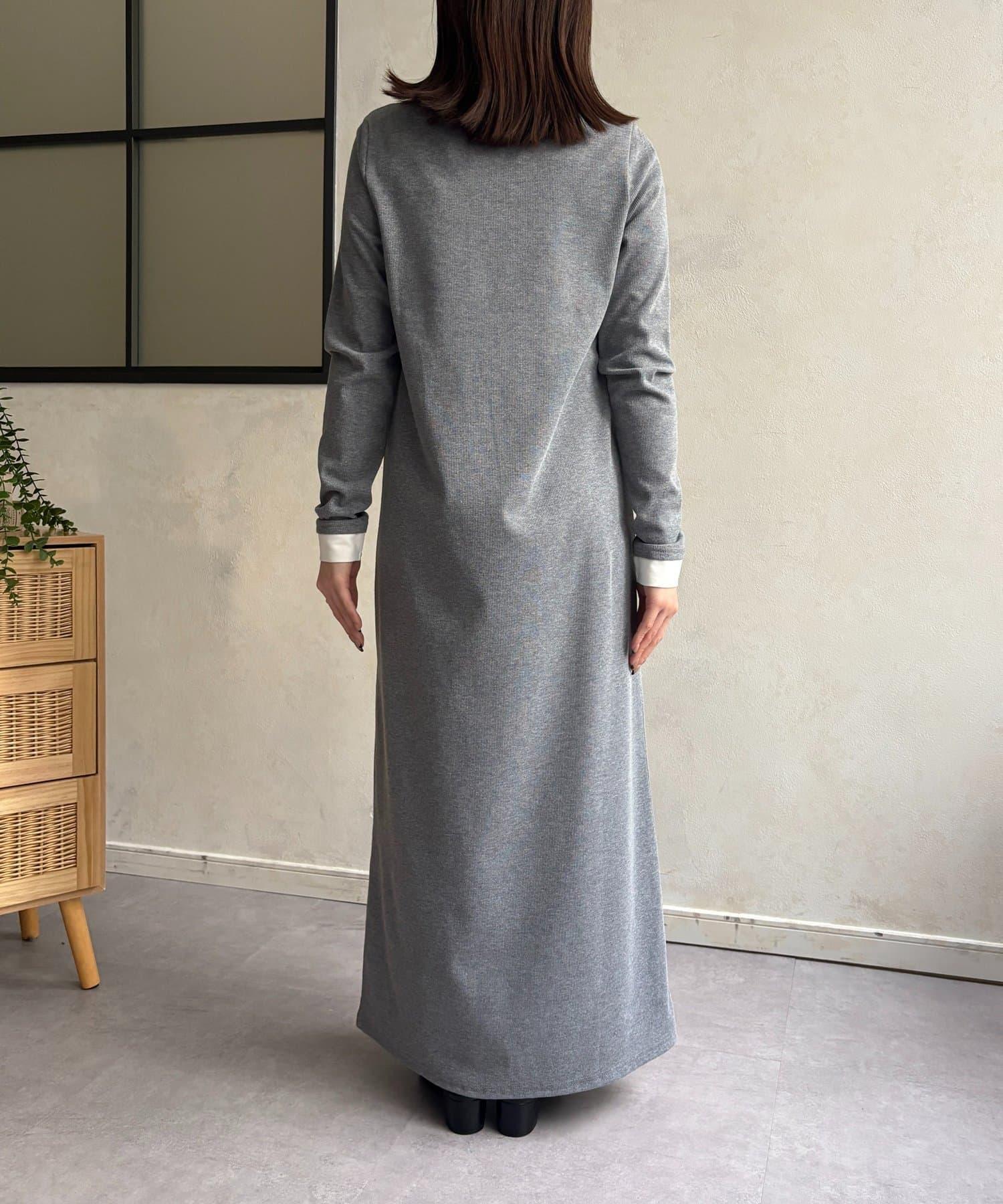羅紋假兩件亨利領連衣裙