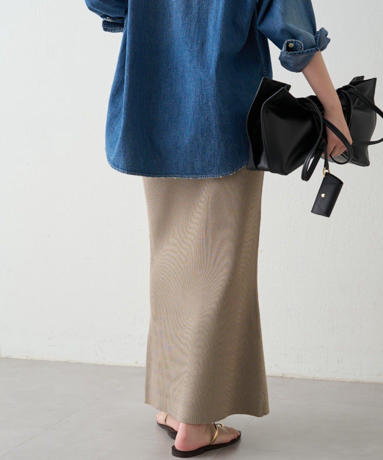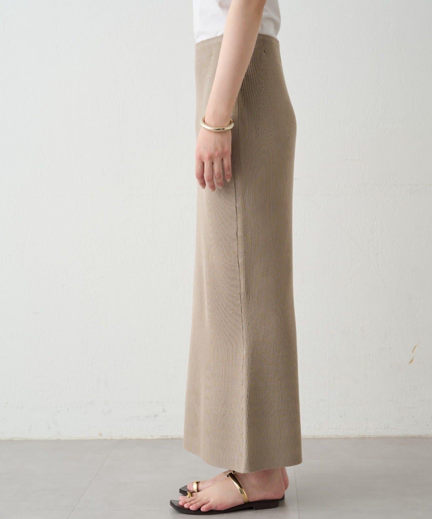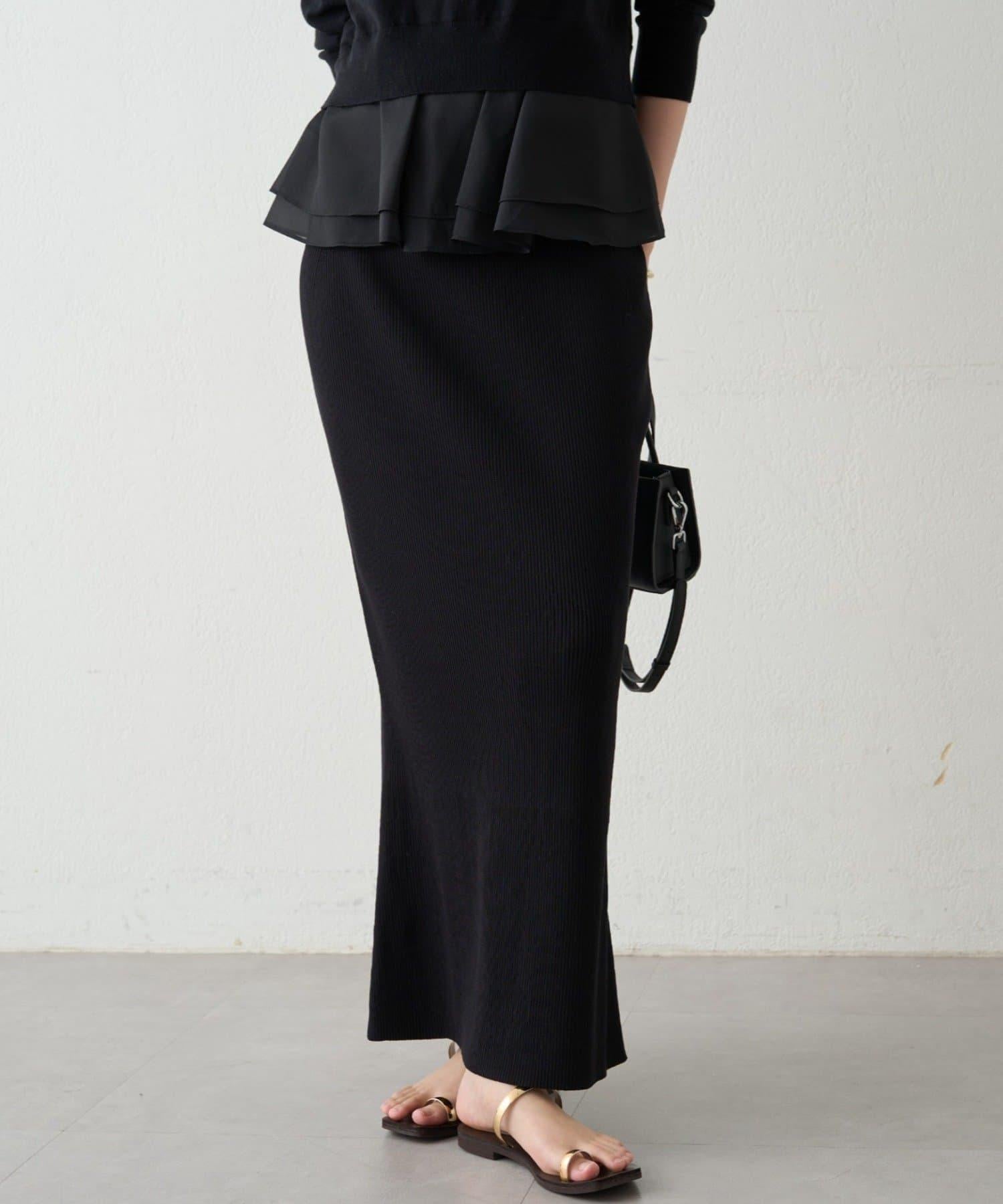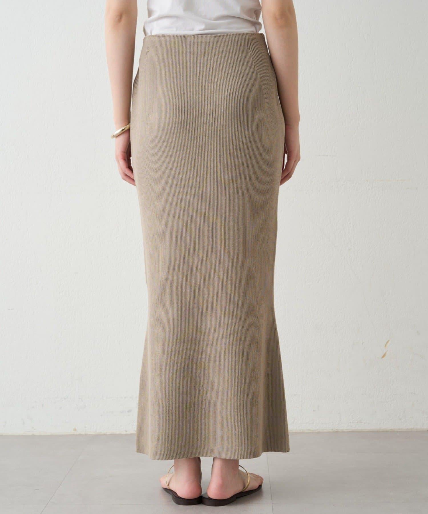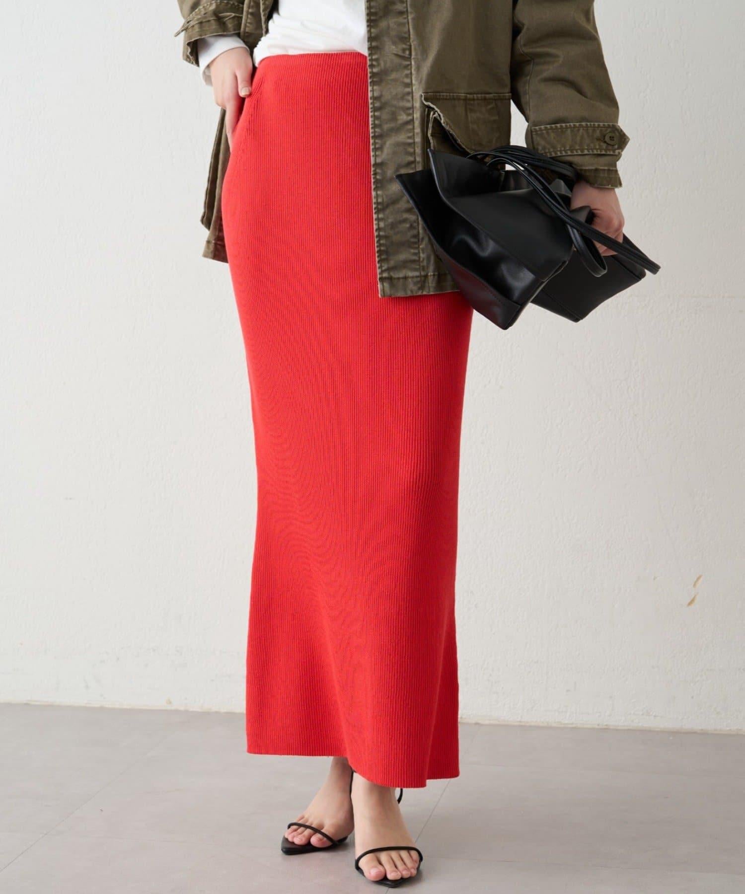 這款羅紋針織裙採用半喇叭廓形,從簡潔的 I 字形線條向下擺緩緩延伸,增強了女性魅力。
