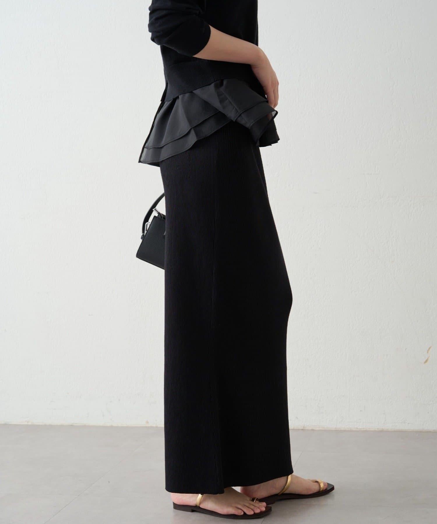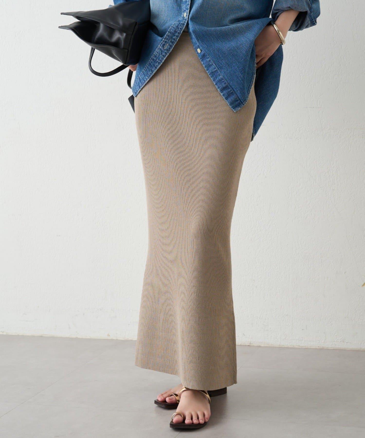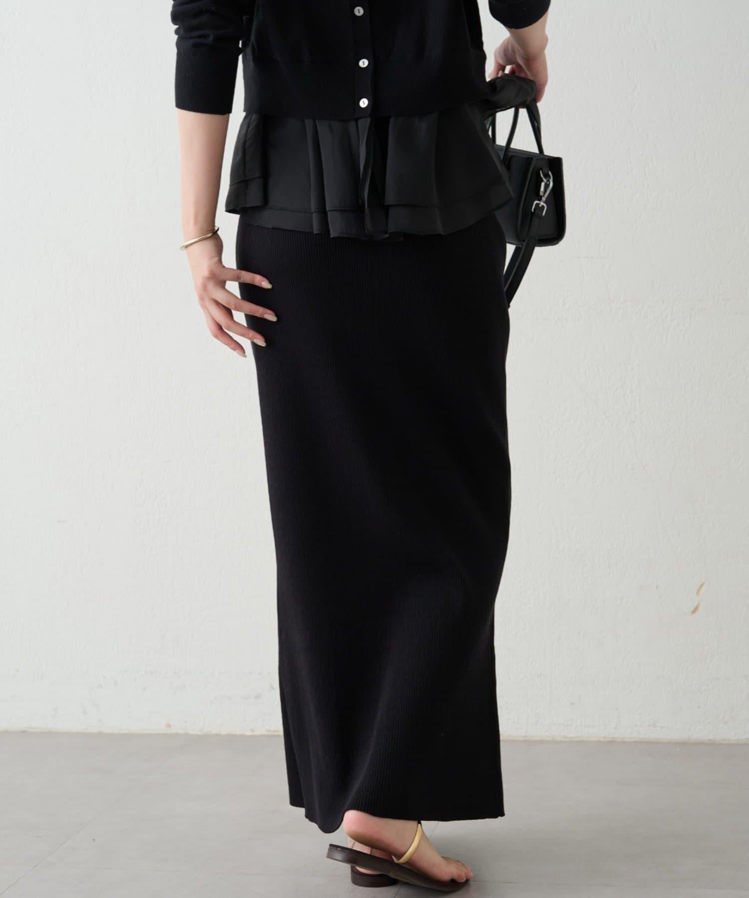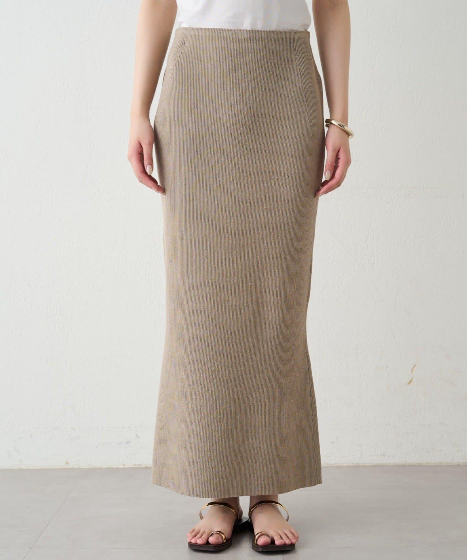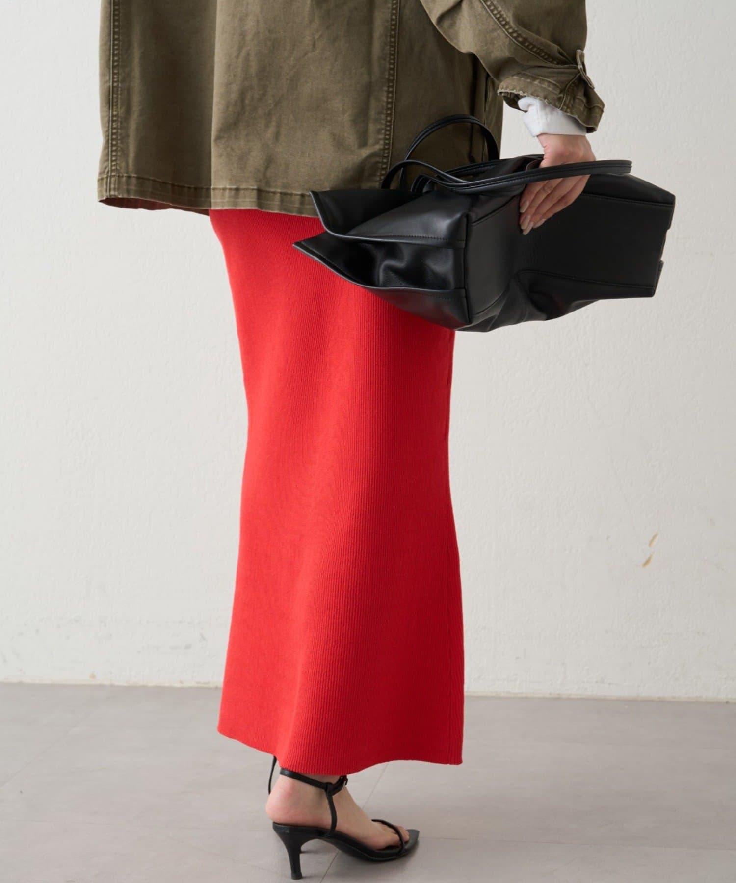 這款羅紋針織裙採用半喇叭廓形,從簡潔的 I 字形線條向下擺緩緩延伸,增強了女性魅力。