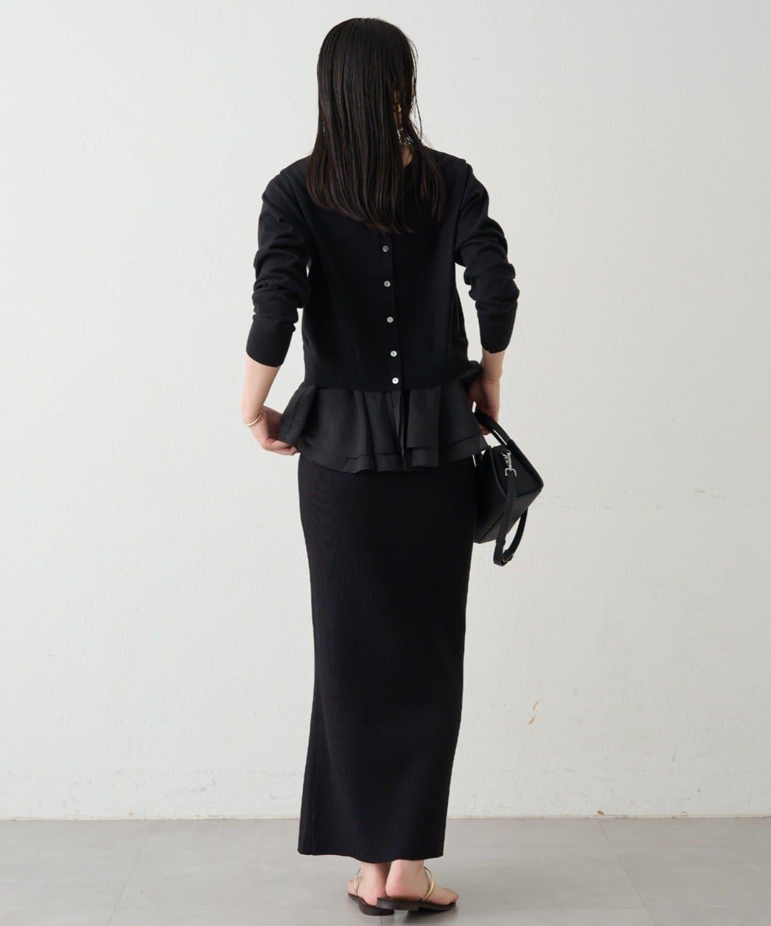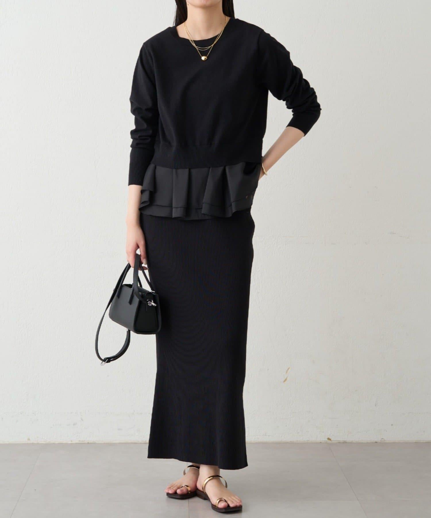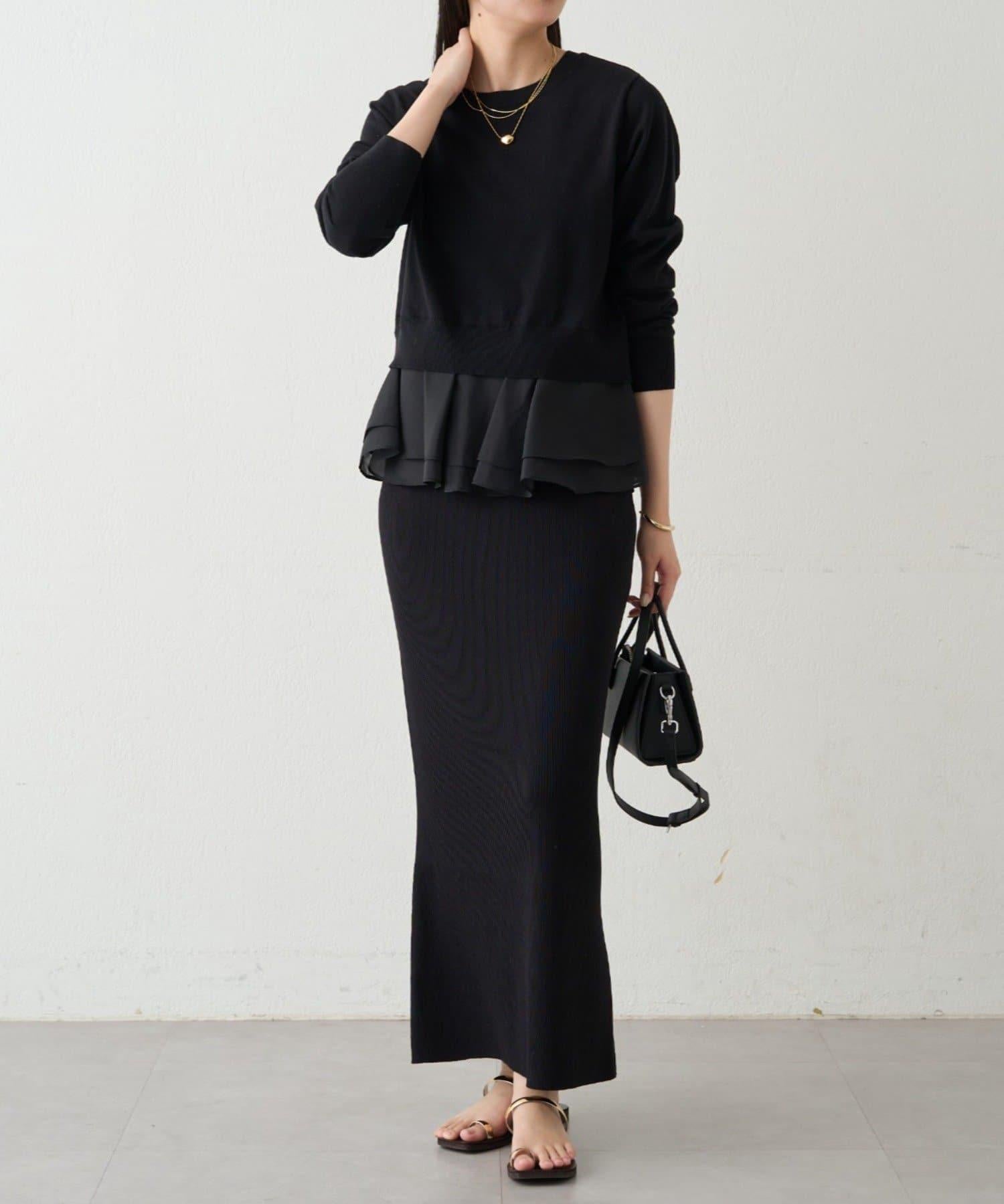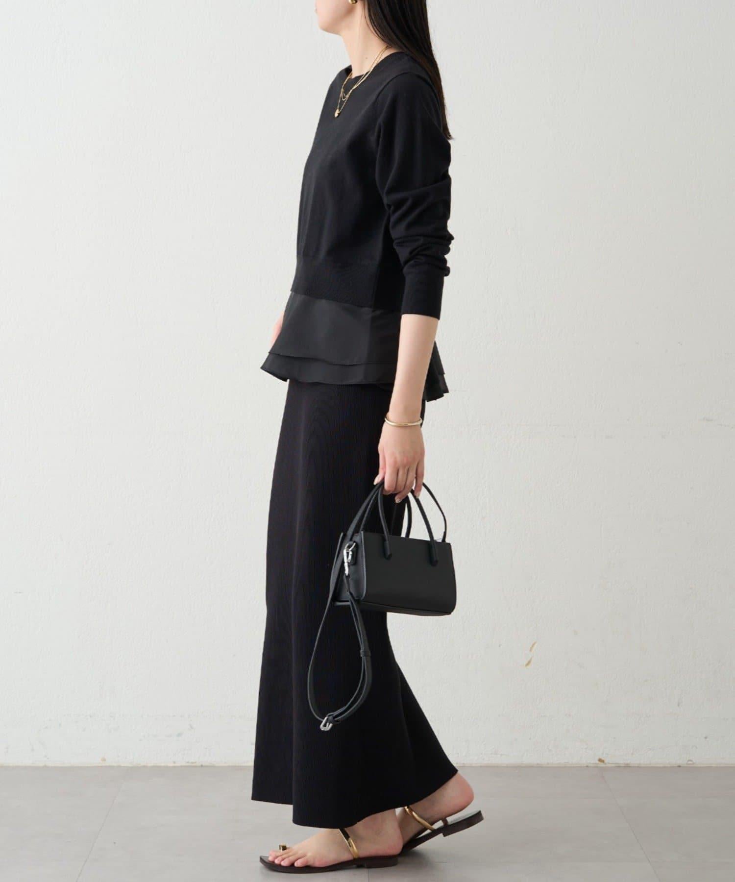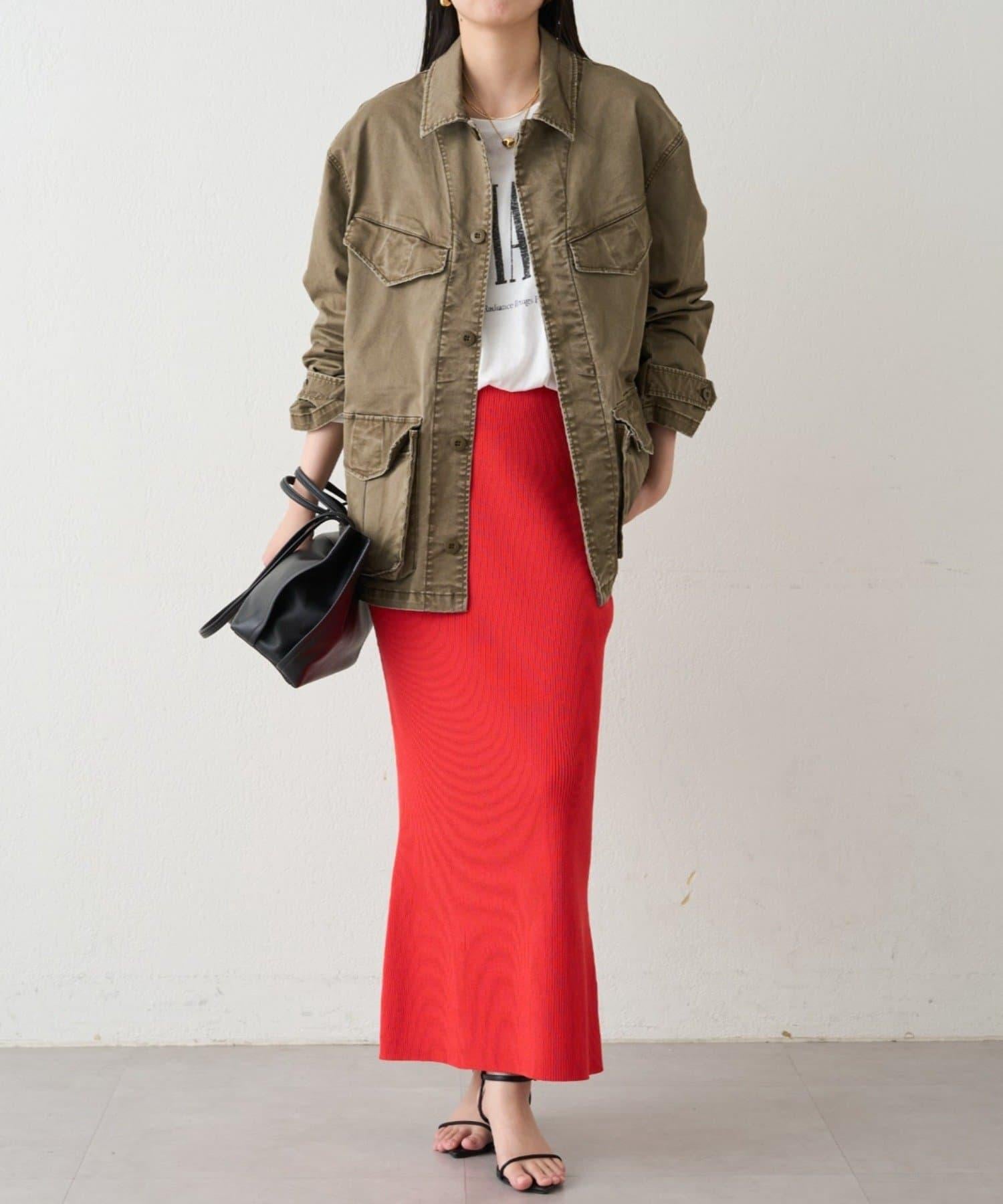 這款羅紋針織裙採用半喇叭廓形,從簡潔的 I 字形線條向下擺緩緩延伸,增強了女性魅力。