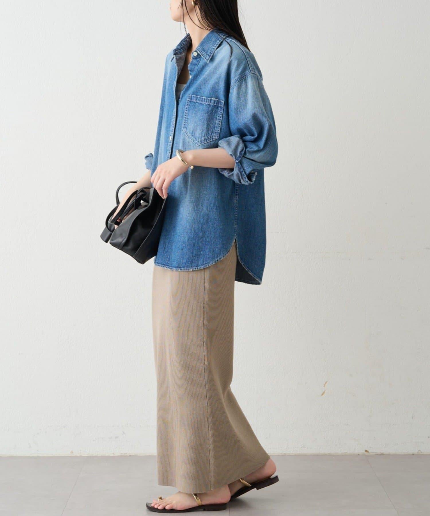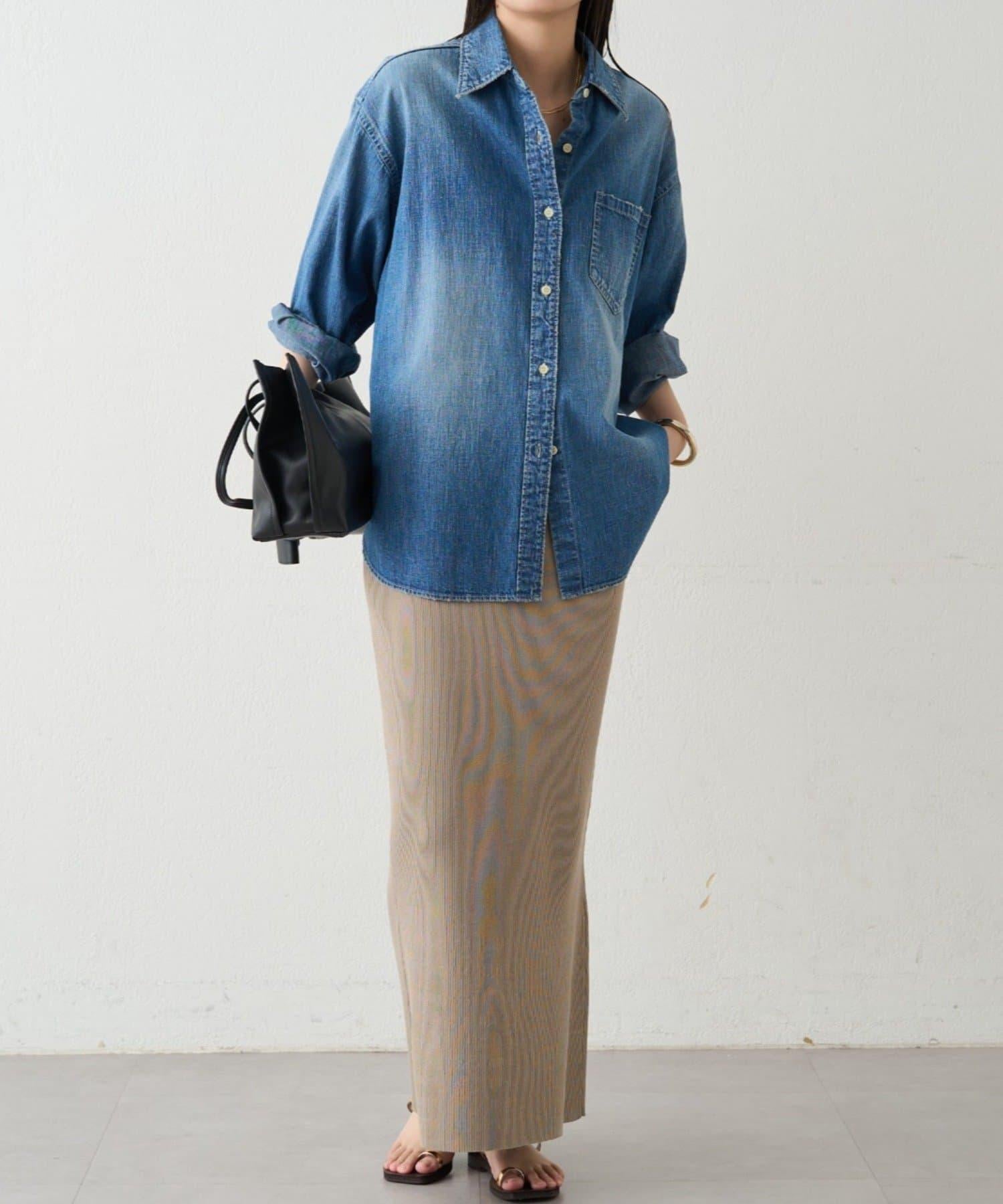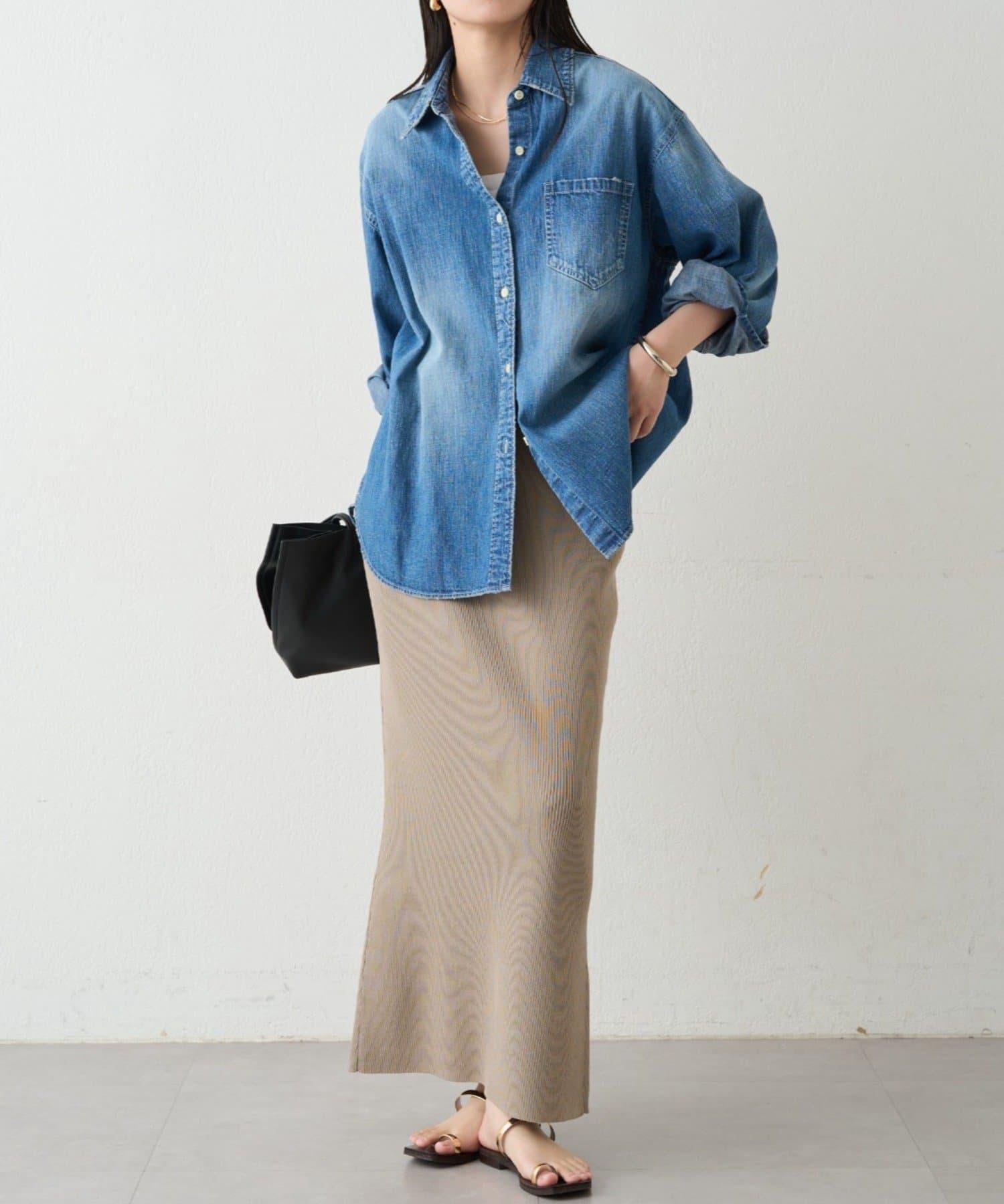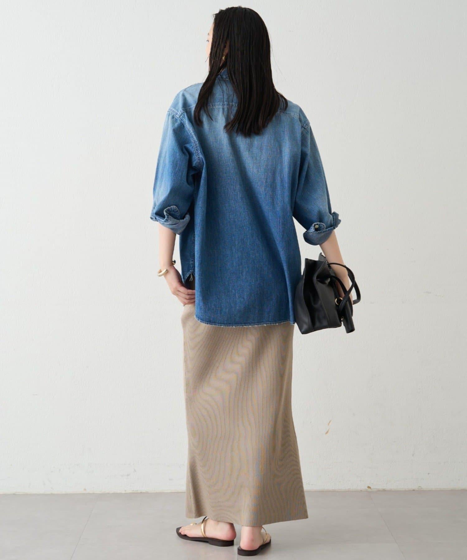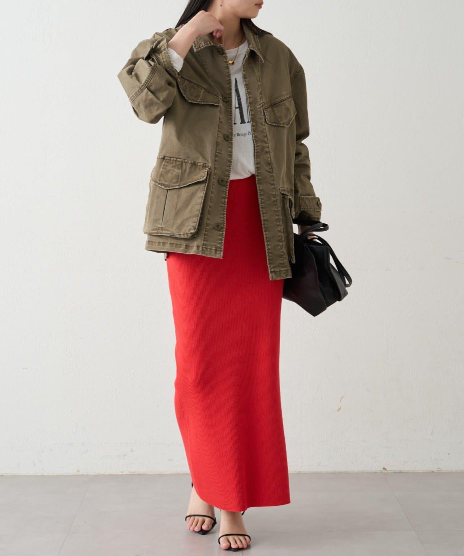 這款羅紋針織裙採用半喇叭廓形,從簡潔的 I 字形線條向下擺緩緩延伸,增強了女性魅力。