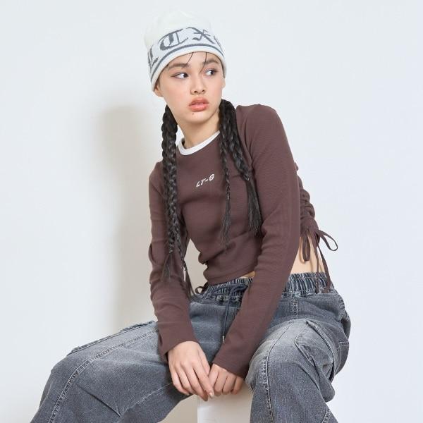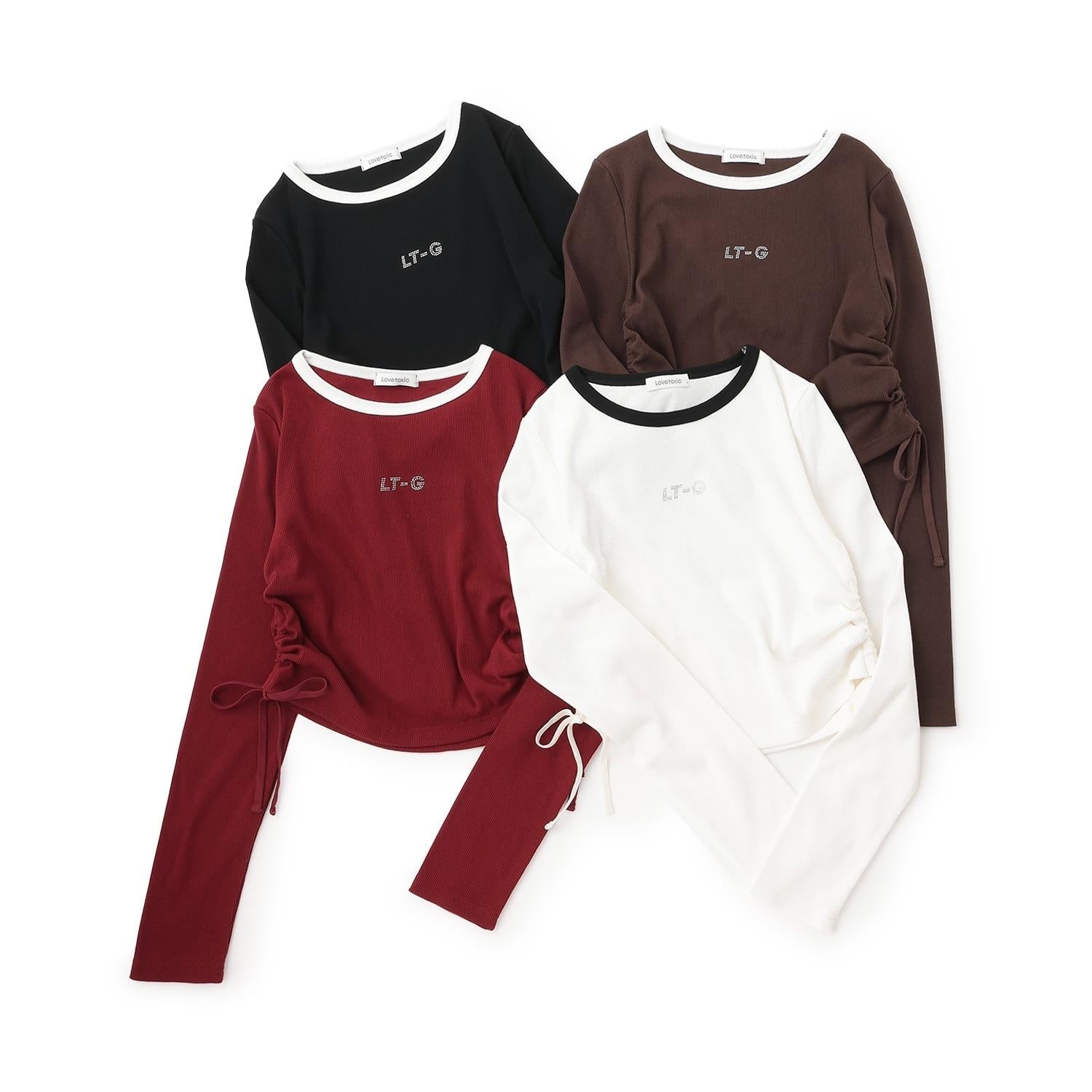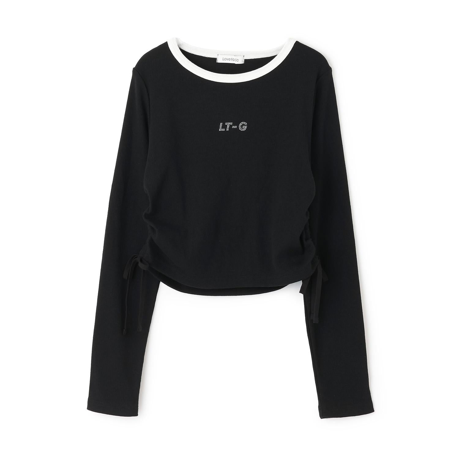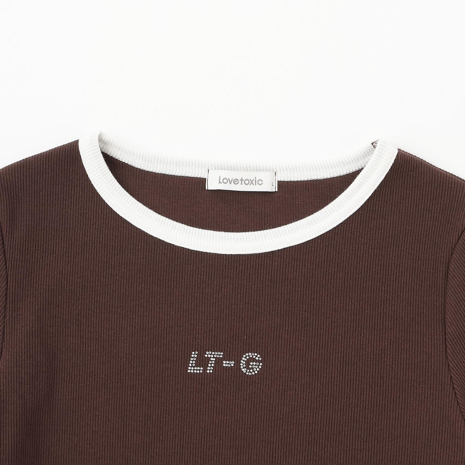 時尚長袖 T 恤,領口顏色可調,印有石頭徽標。