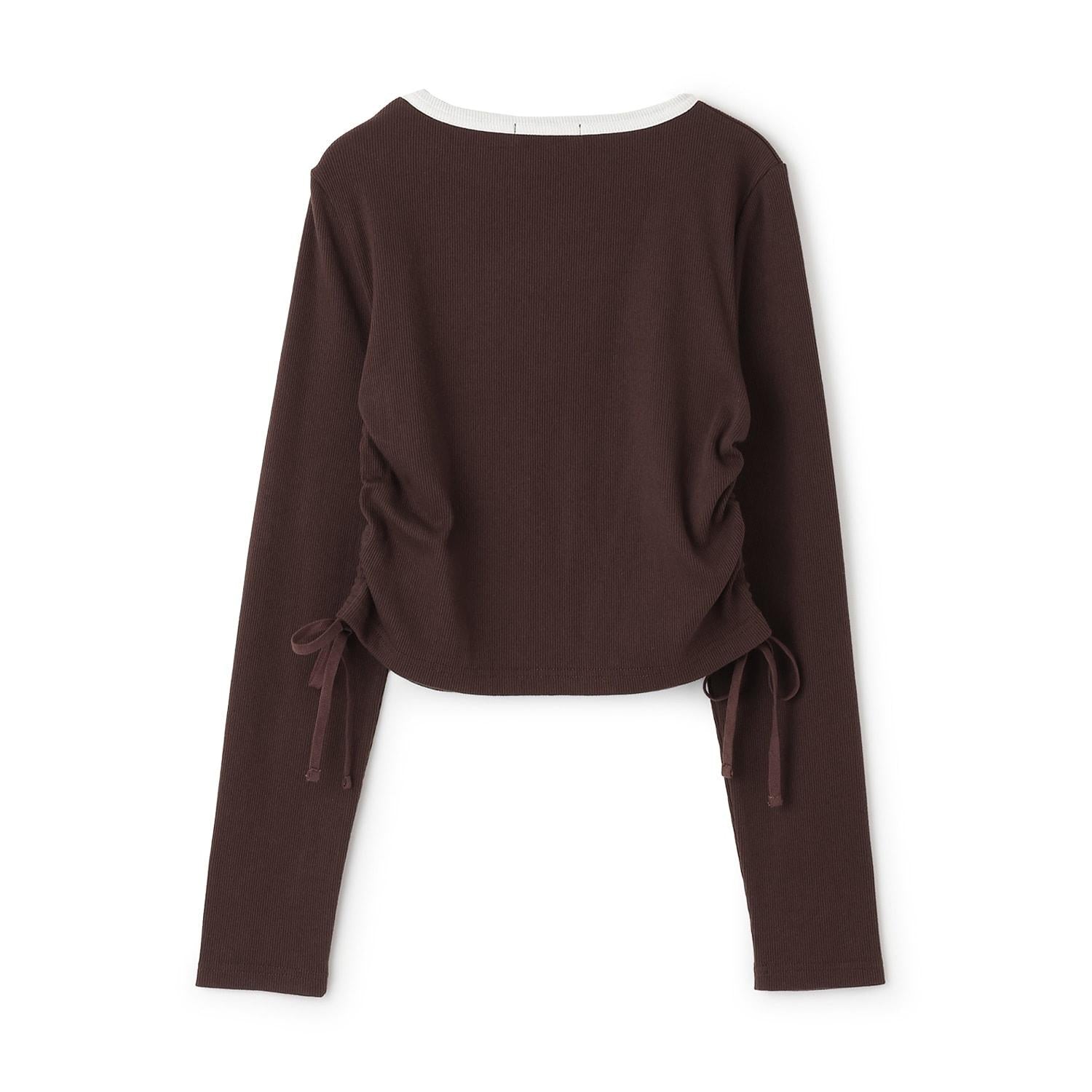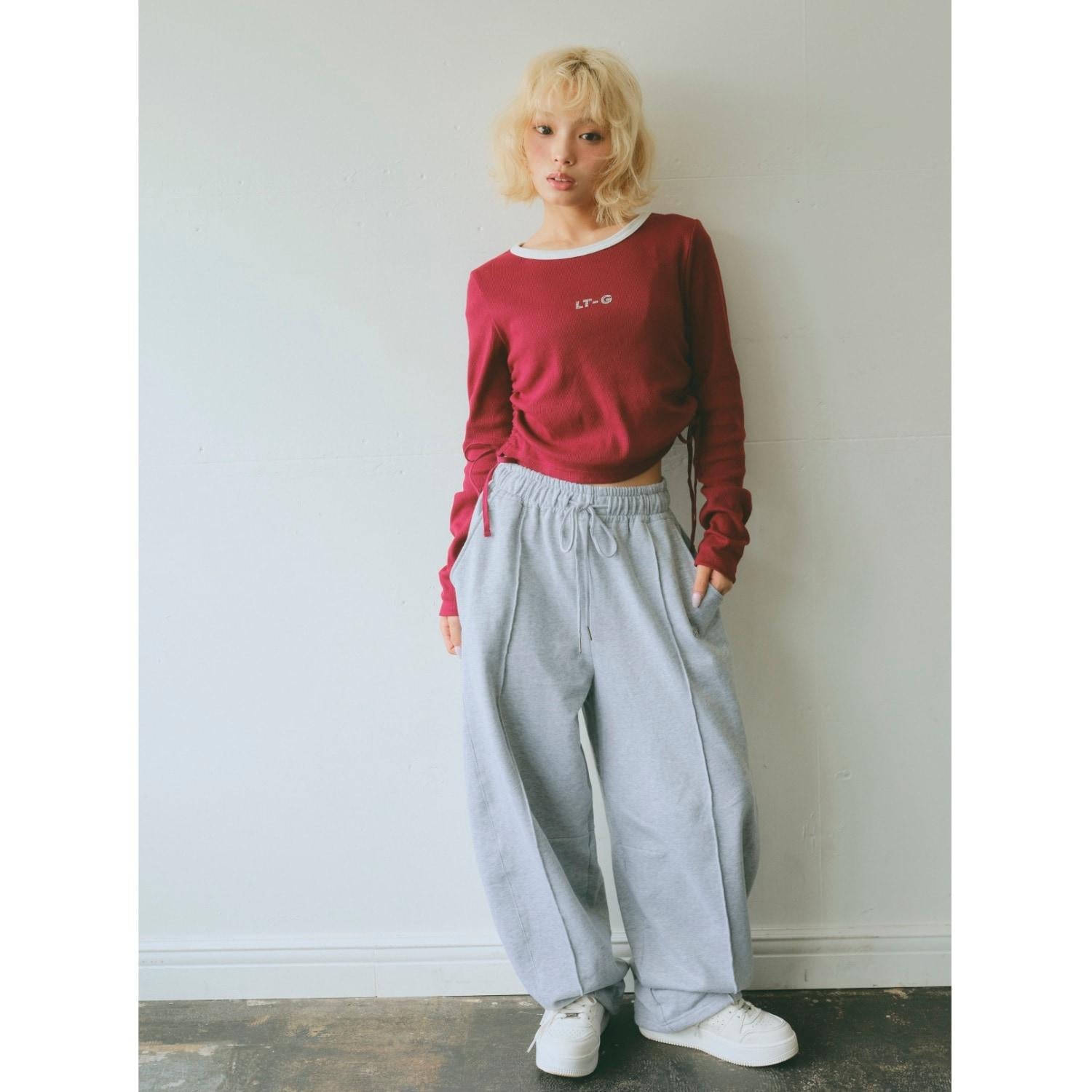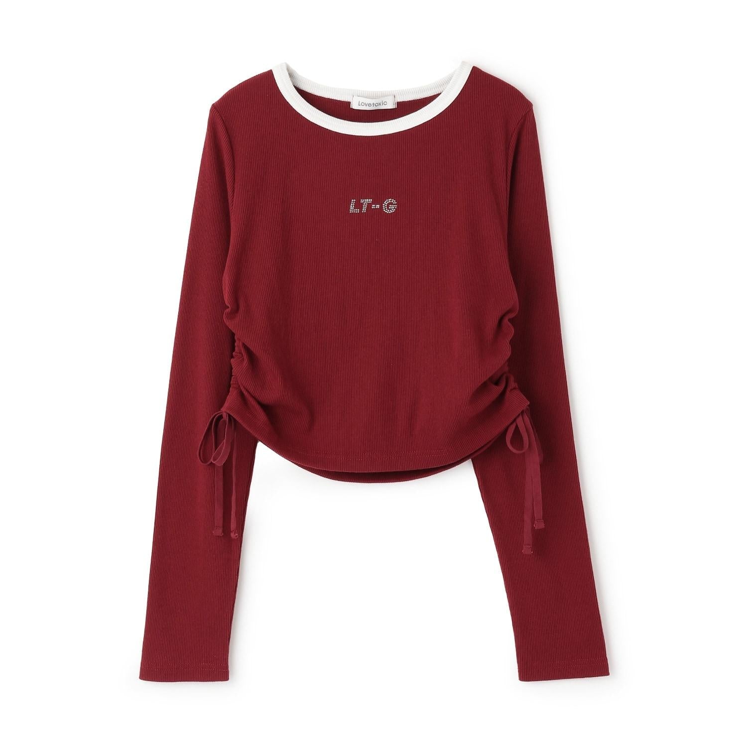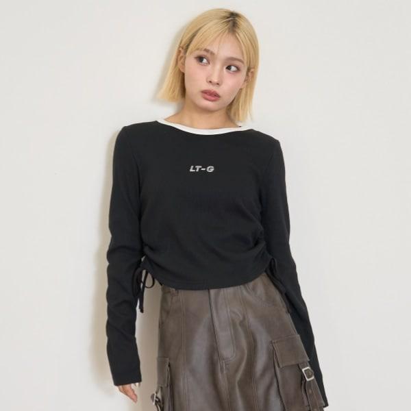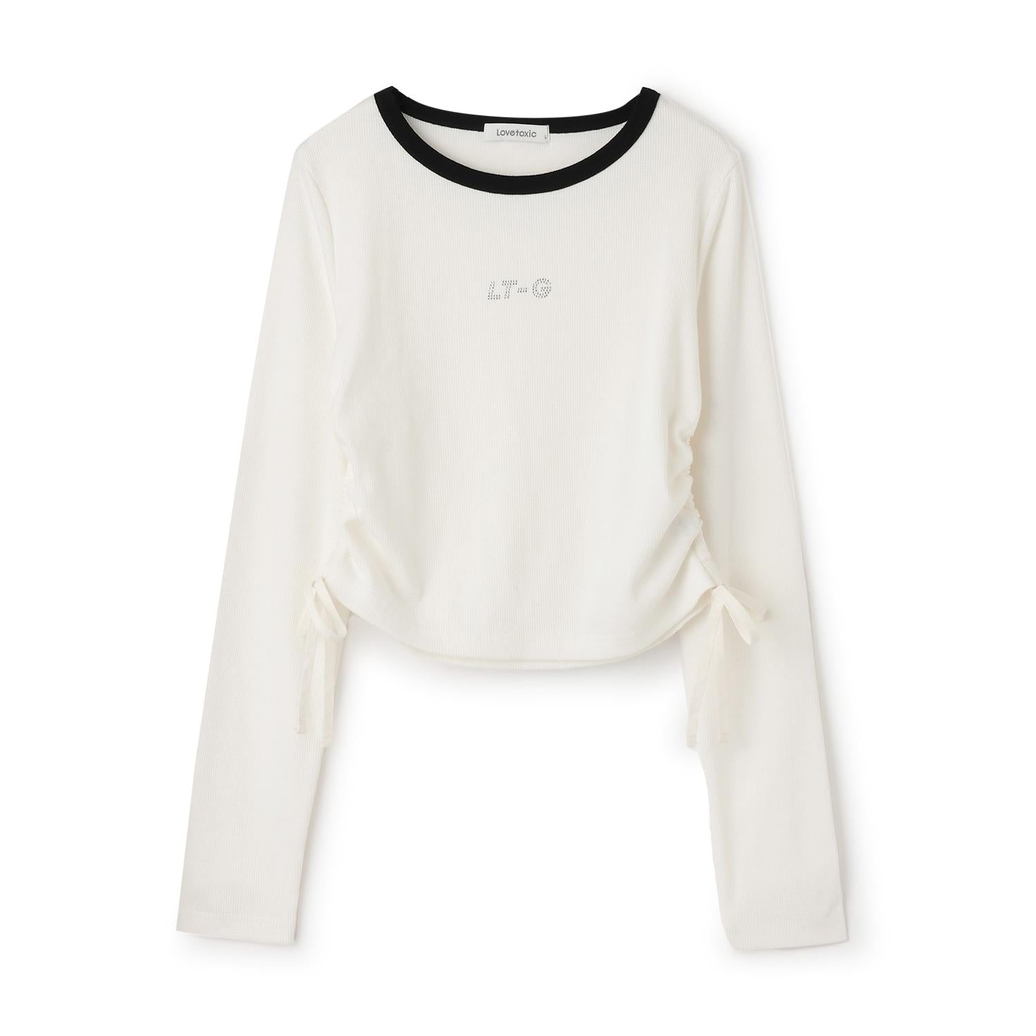 時尚長袖 T 恤,領口顏色可調,印有石頭徽標。